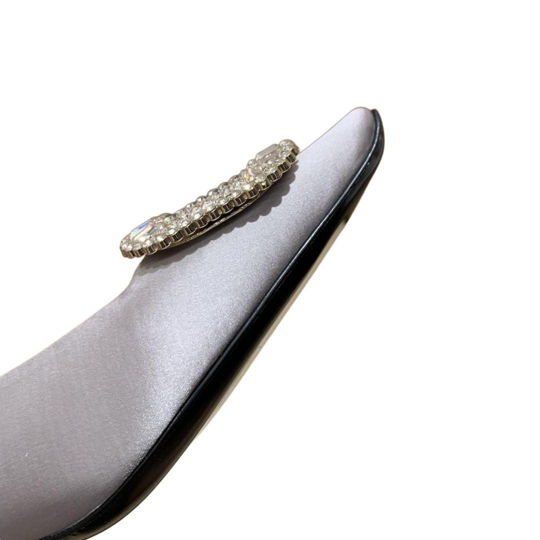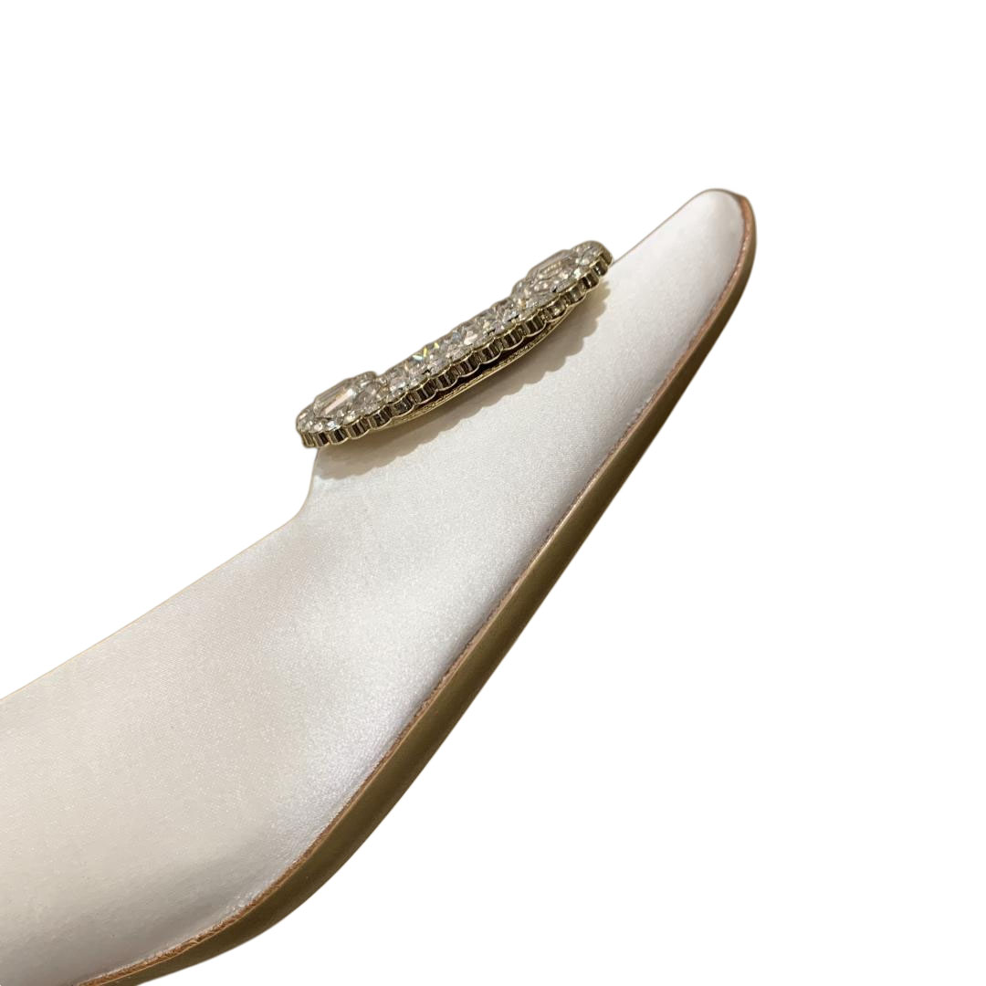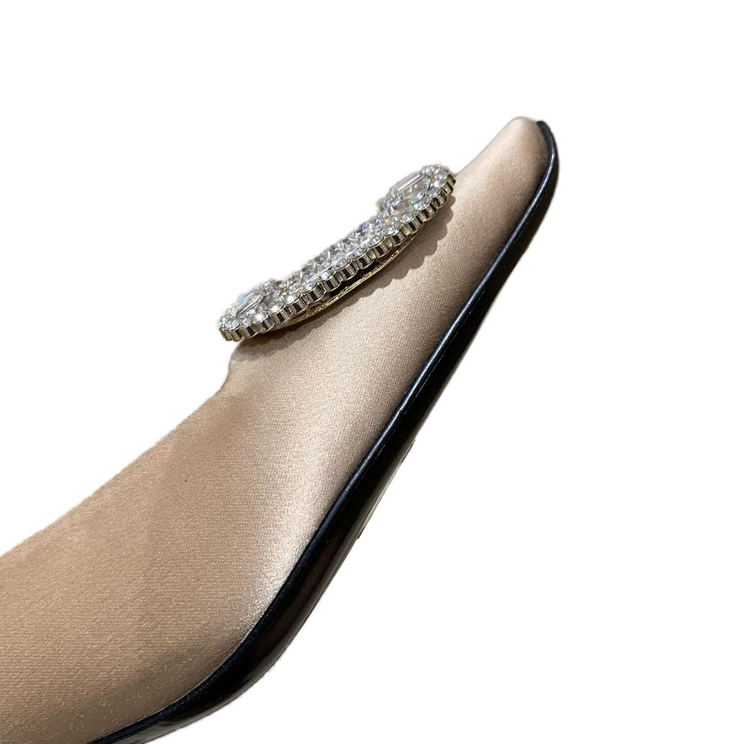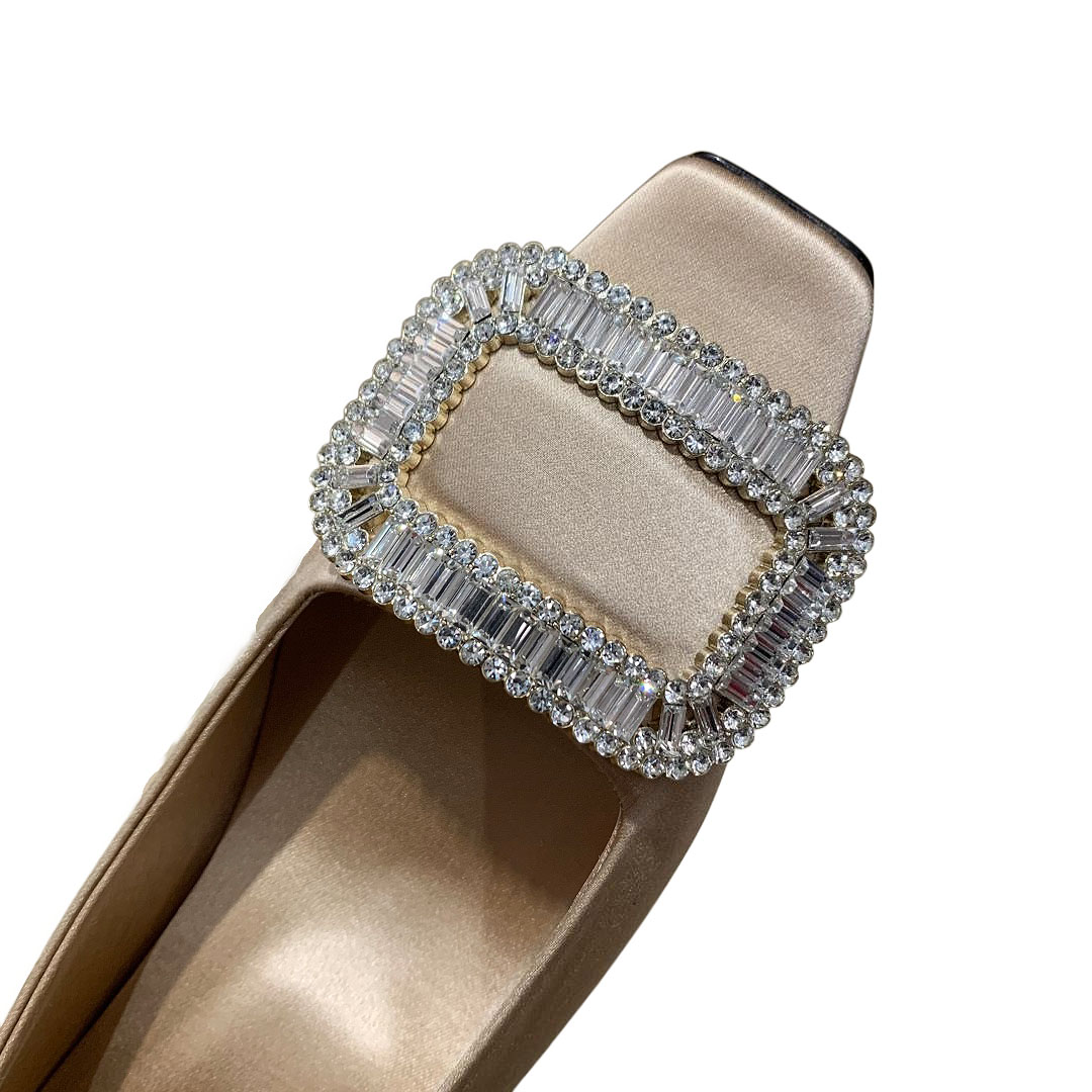 Roger Vivier Belle Vivier Pumps High Heels In Silver/White/Red/Beige Satin With Crystal Buckle (Heel Height 4.5cm)
