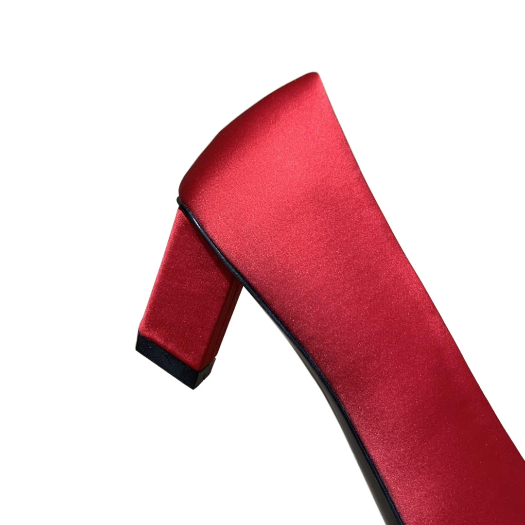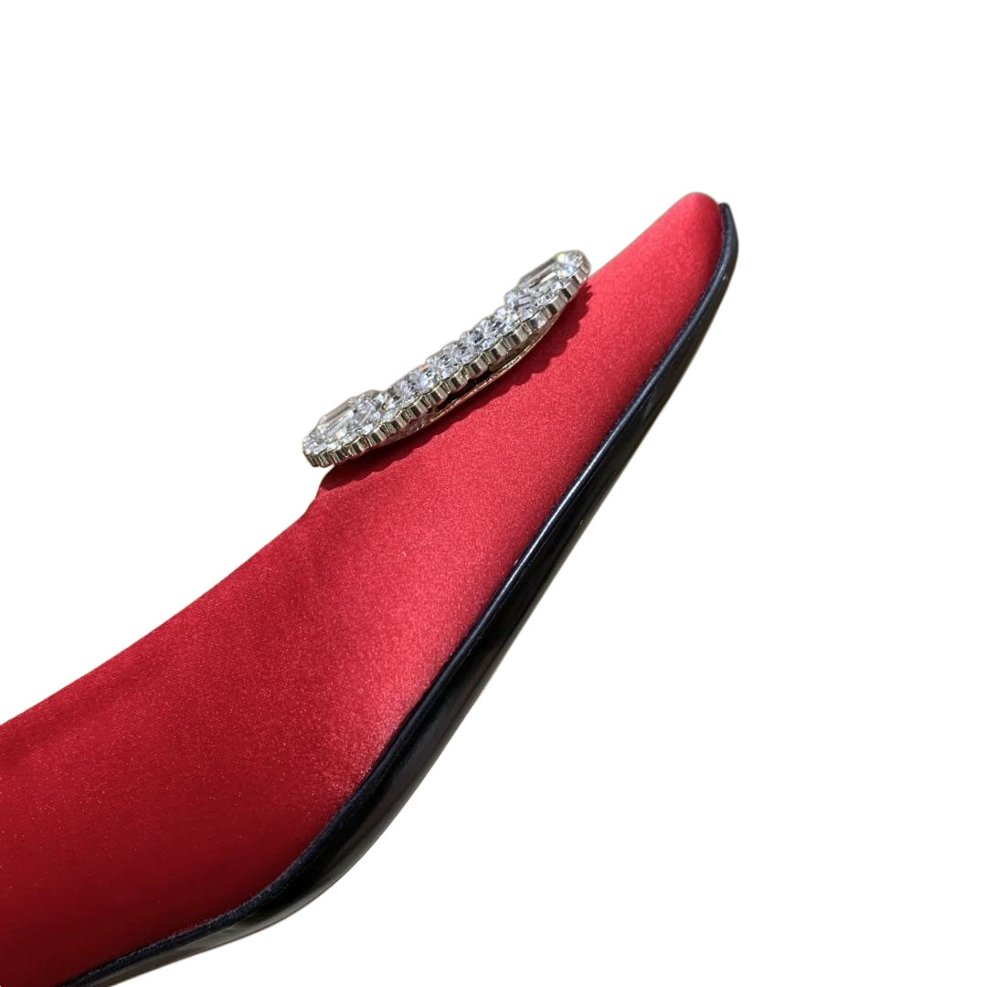 Roger Vivier Efflorescence Pumps High Heels In Red/Silver Satin With Crystal Flowers Buckle (Heel Height 6.5cm)