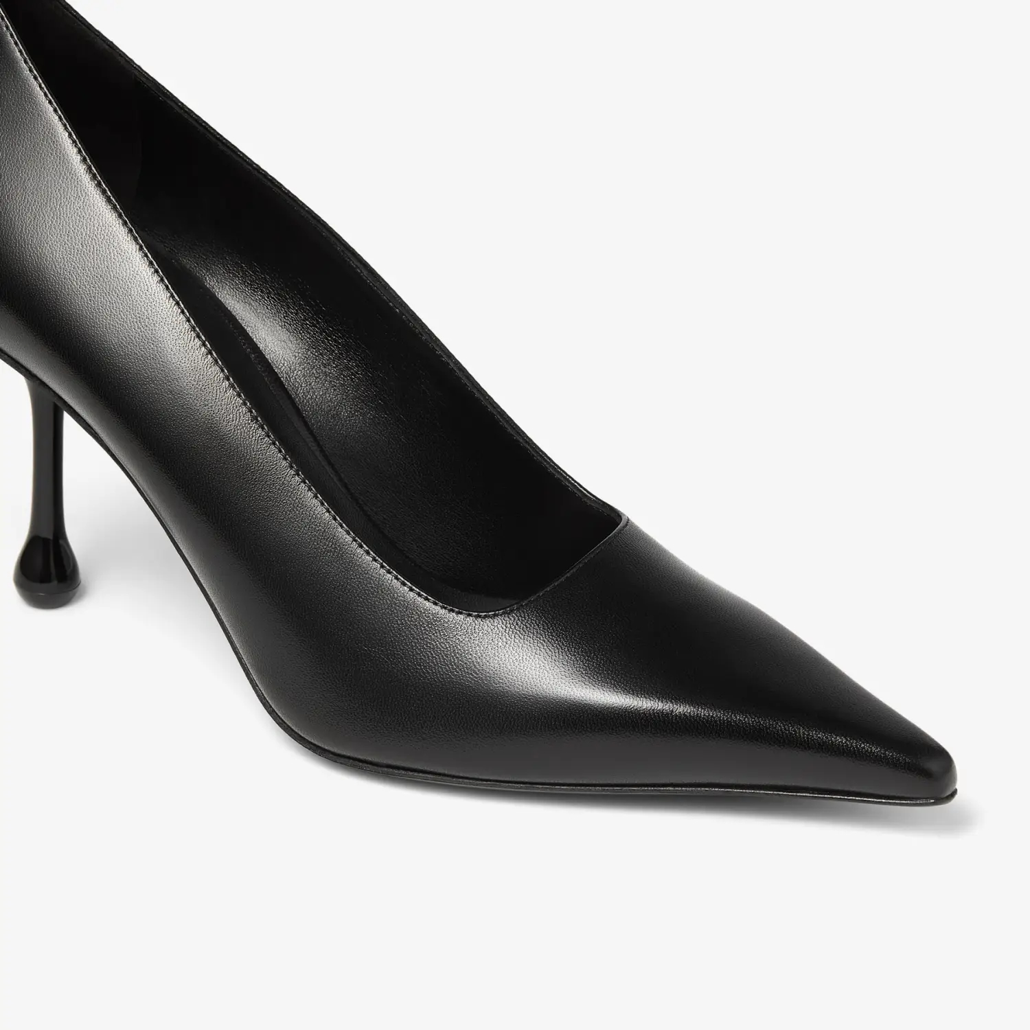 JIMMY CHOO Black leather and Patent paint leather heels Square head and thick heel shoes