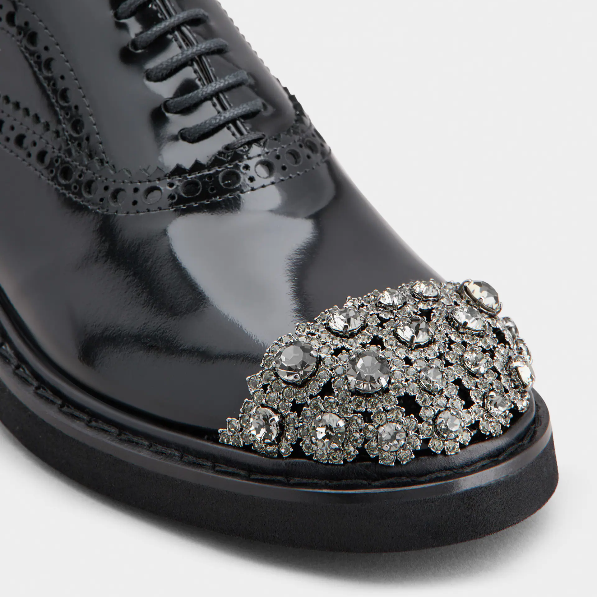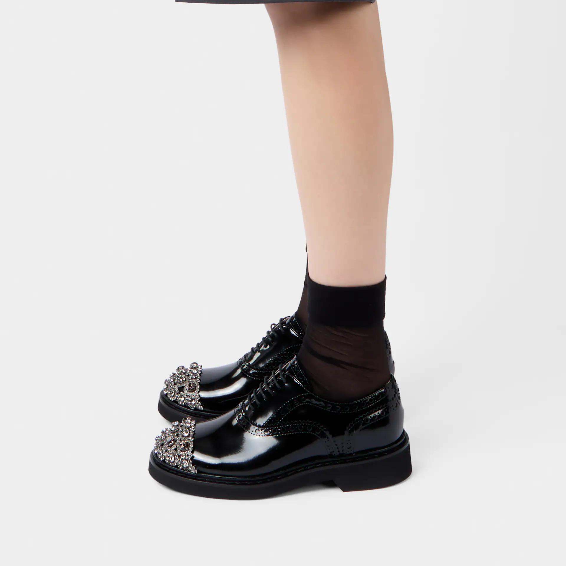 Roger Vivier Viv' Rangers Lace-Ups Loafers In Black Leather With Crystal Flowers