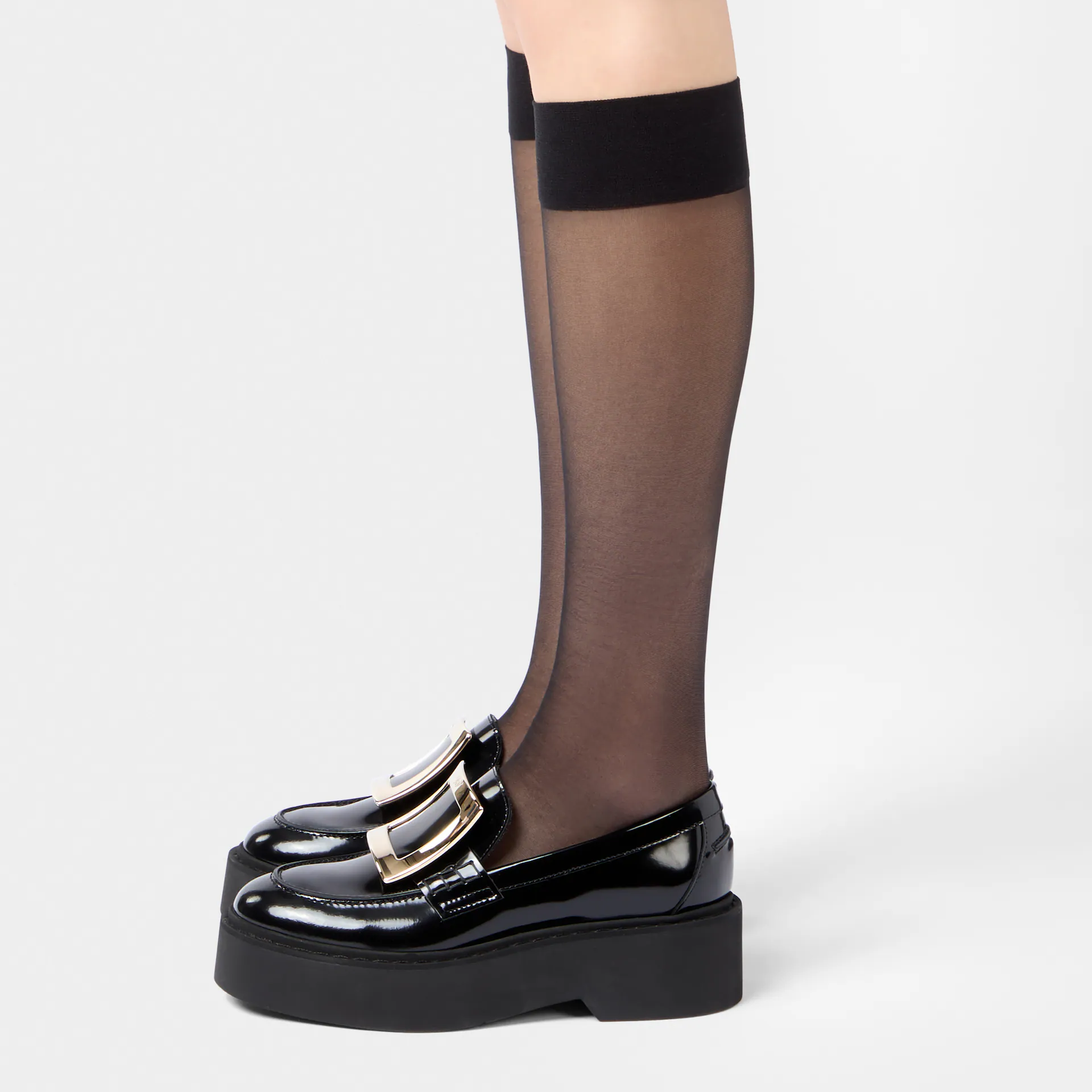 Roger Vivier Viv' Rangers Loafers In Black Patent Leather With Metal Buckle (Heel Height 5.5cm)