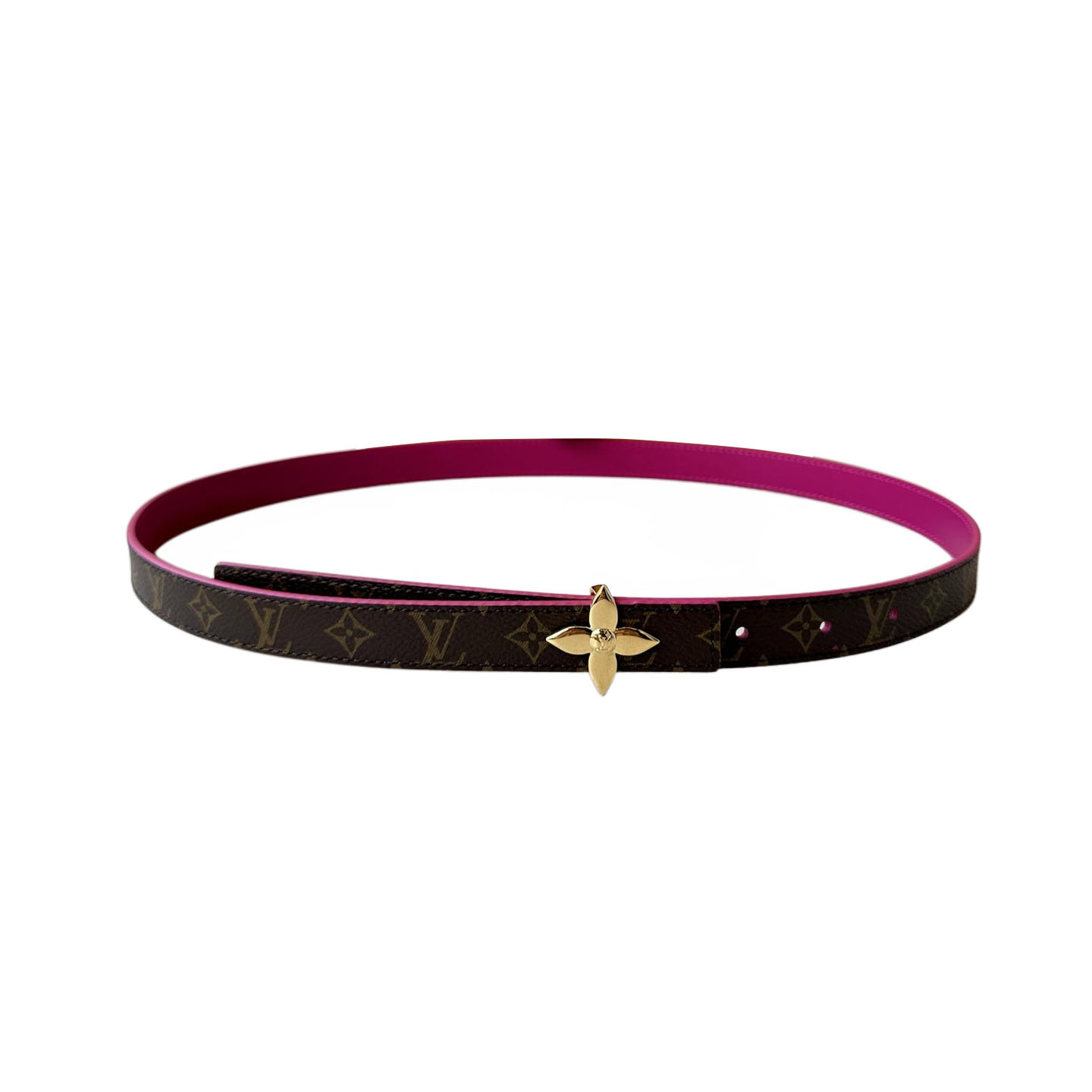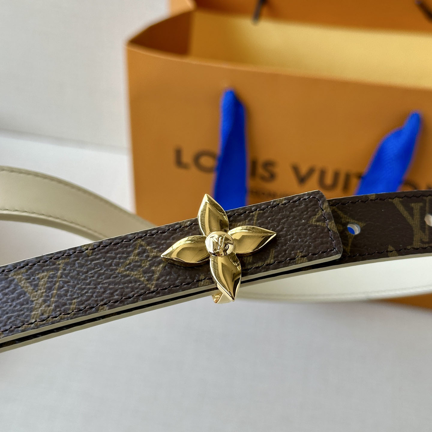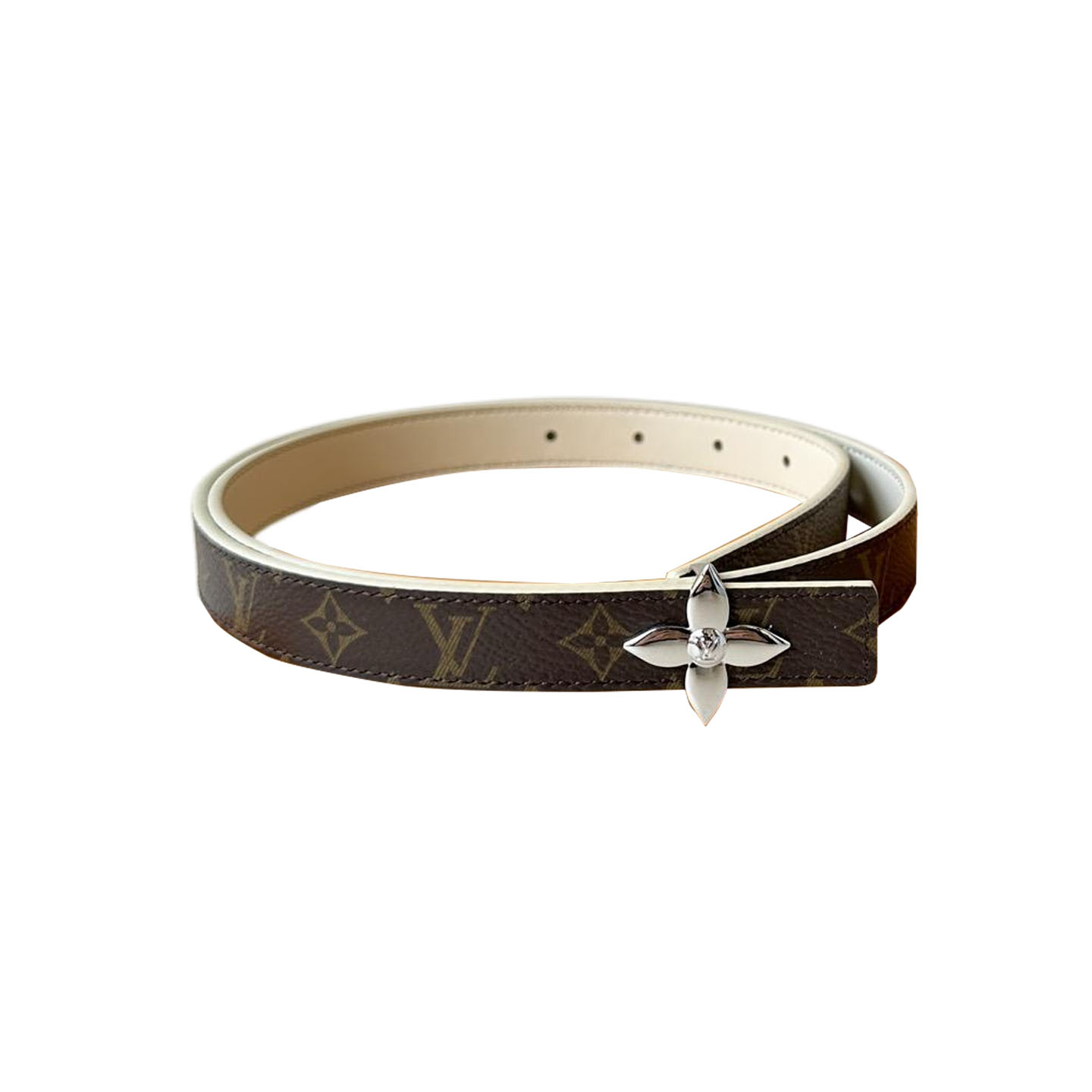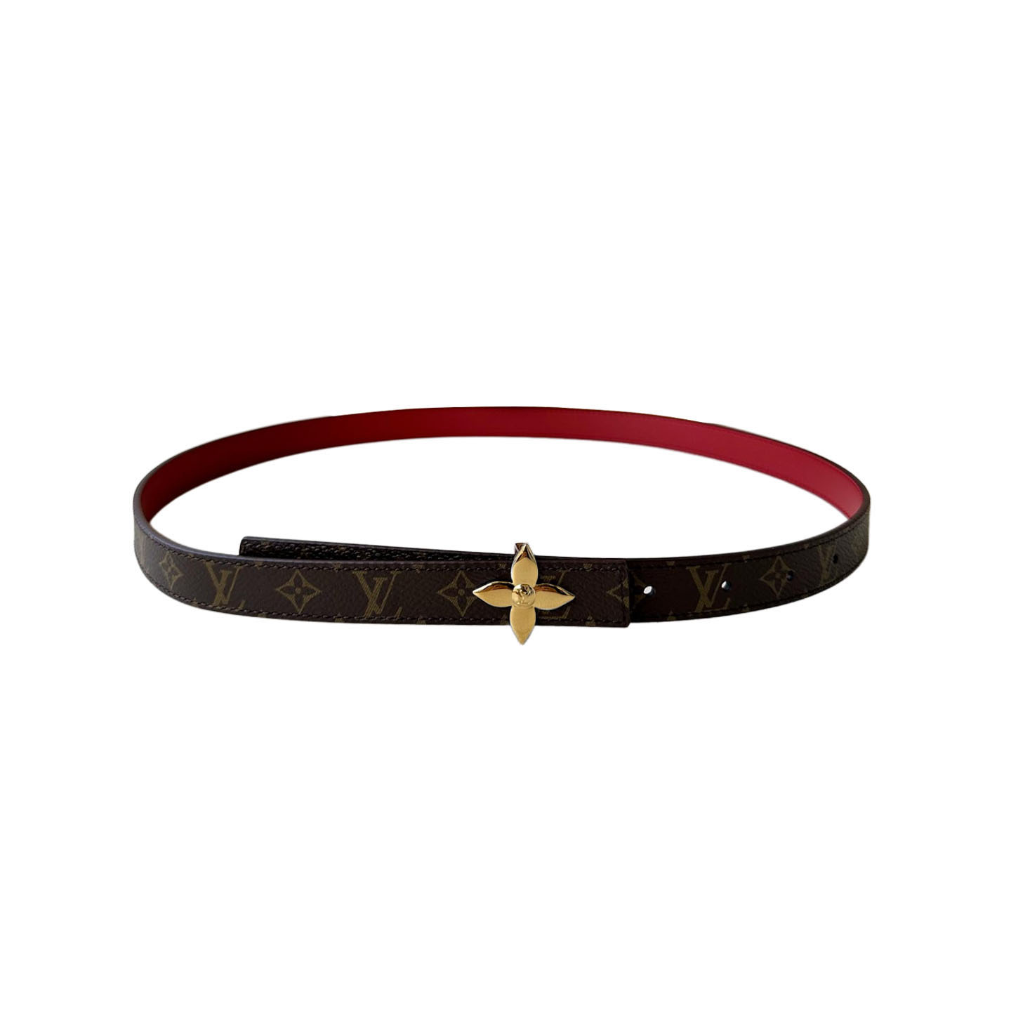 Louis Vuitton Women's Flowergram Reversible Belt In Brown/Cookie Monogram Reverse Canvas And White/Black/Red/Pink/Brown Calfskin With Gold/Silver Hardware 20mm