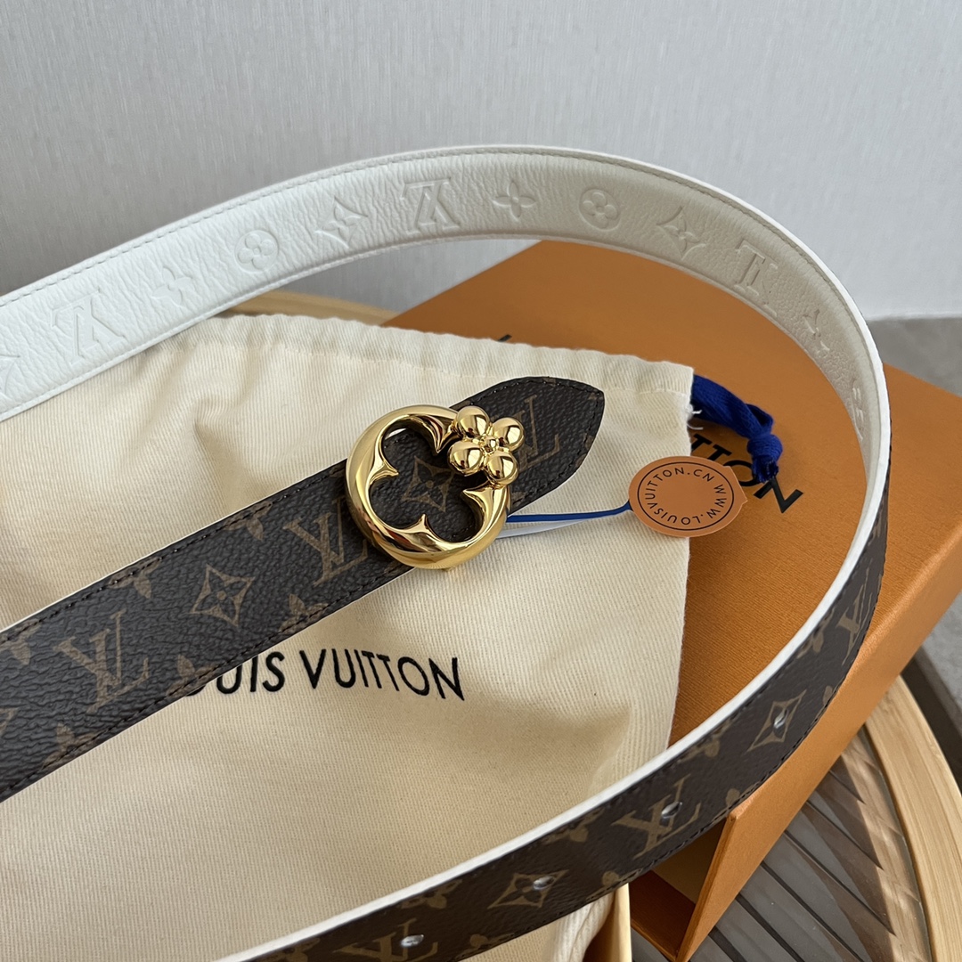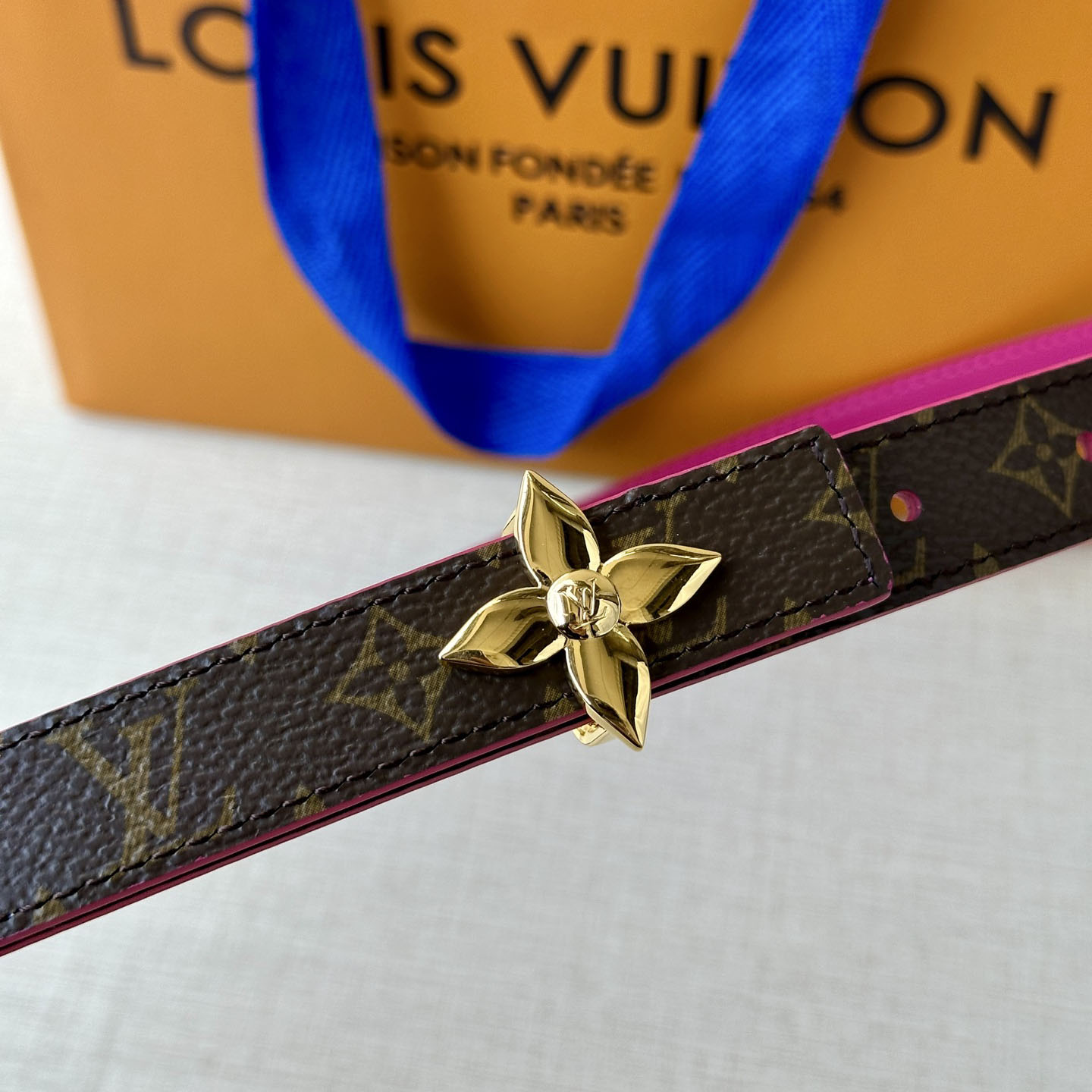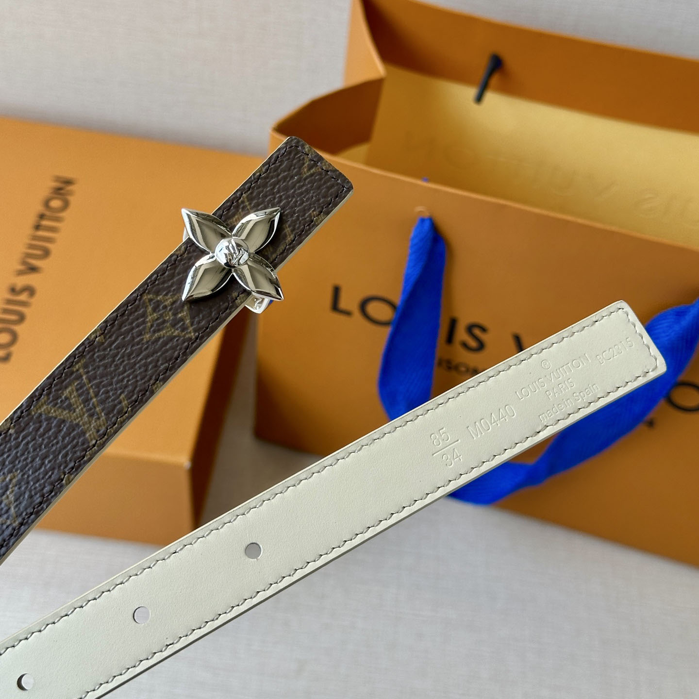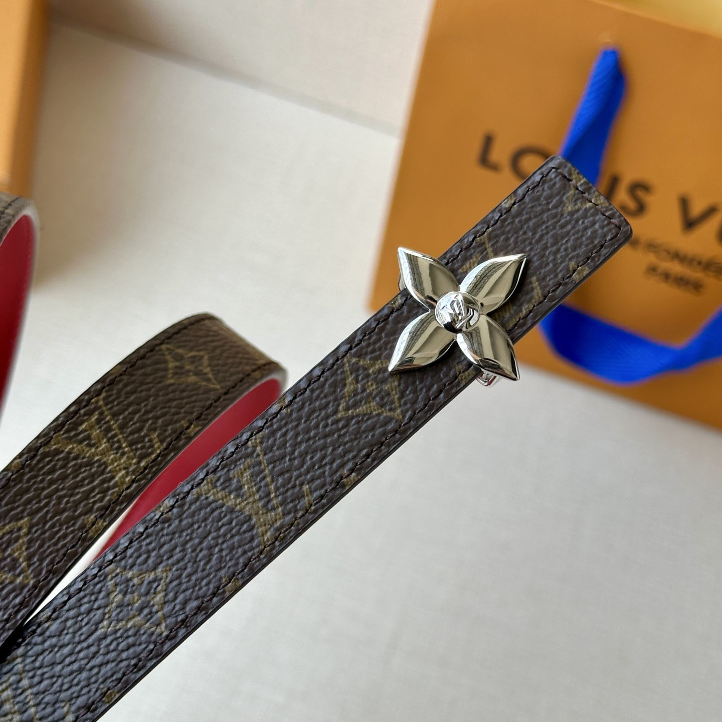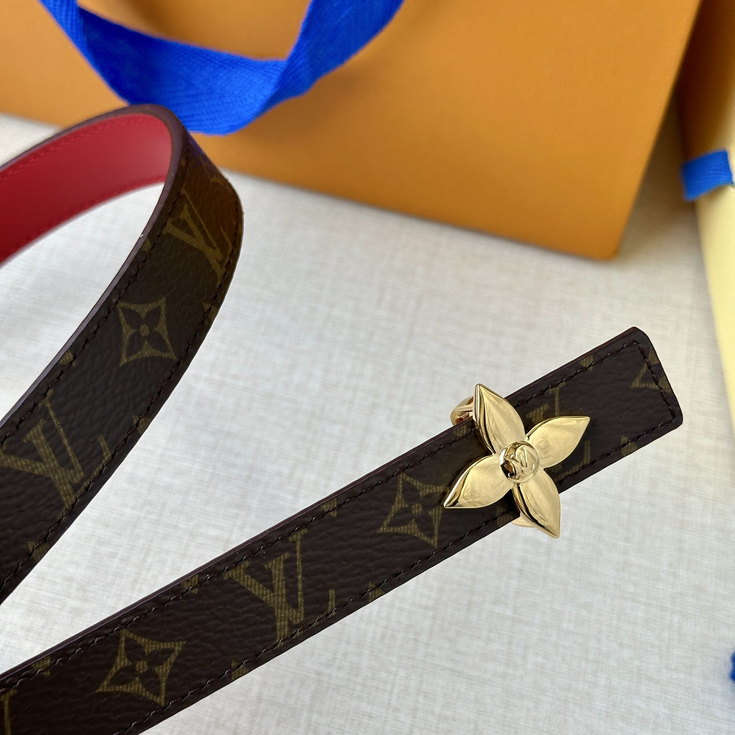 Louis Vuitton Women's Flowergram Reversible Belt In Brown/Cookie Monogram Reverse Canvas And White/Black/Red/Pink/Brown Calfskin With Gold/Silver Hardware 20mm