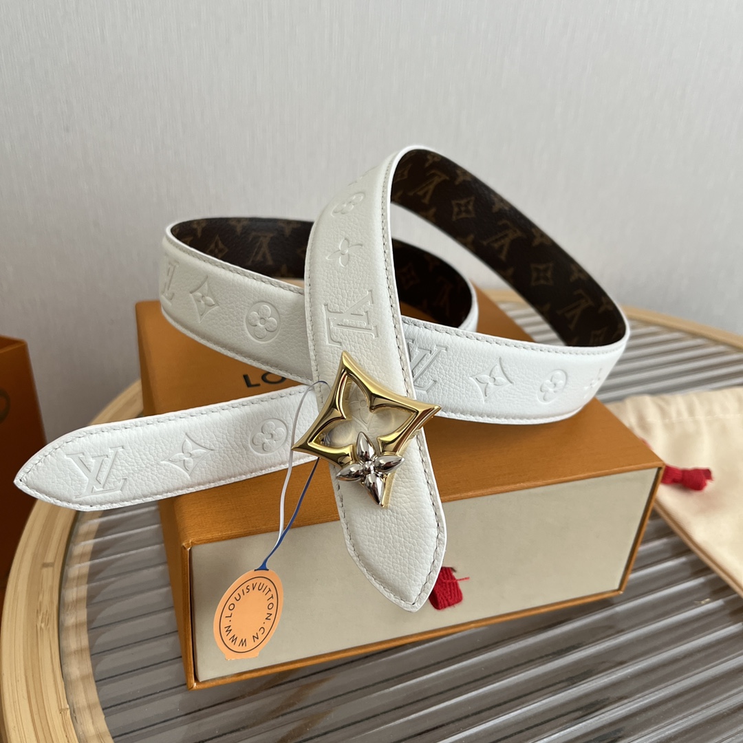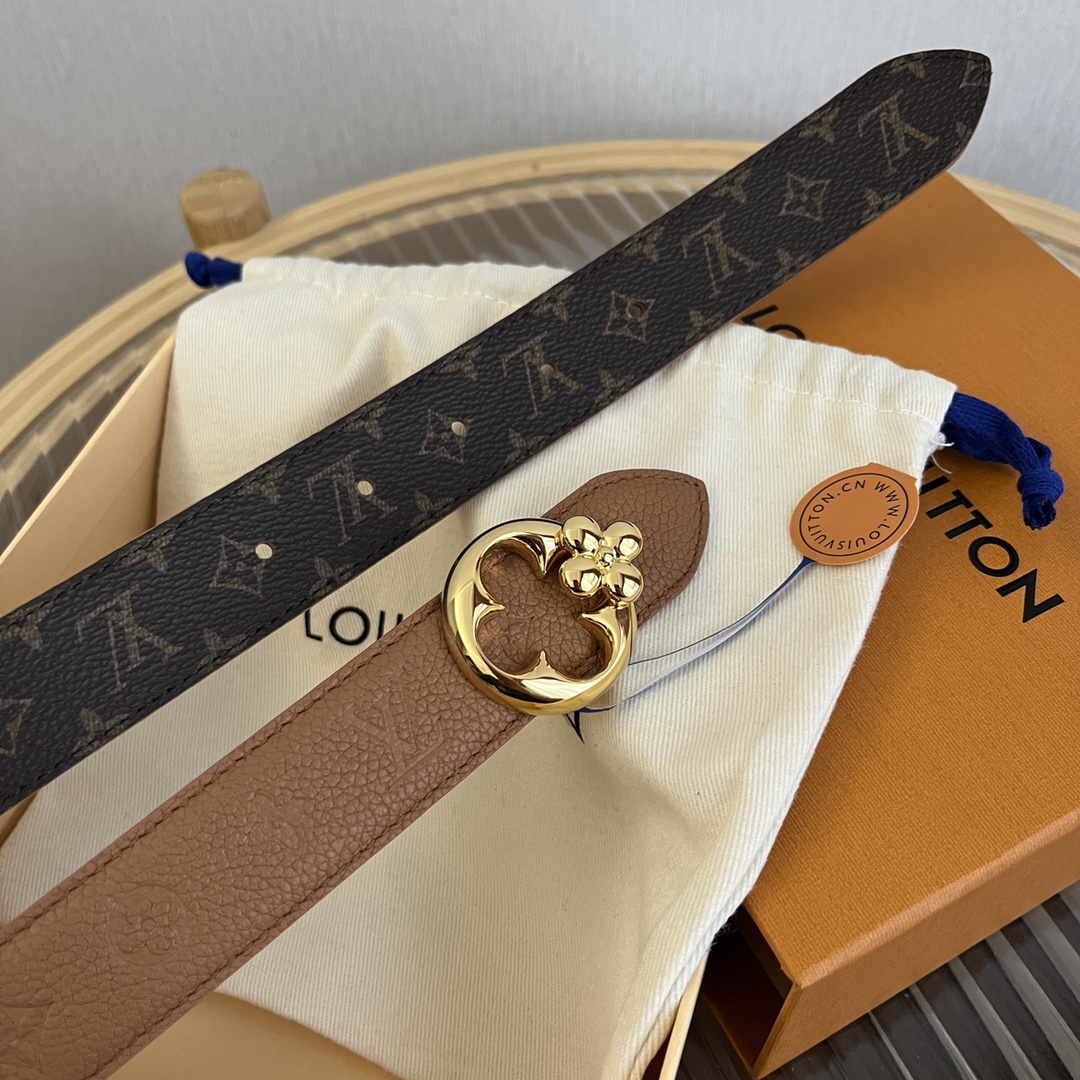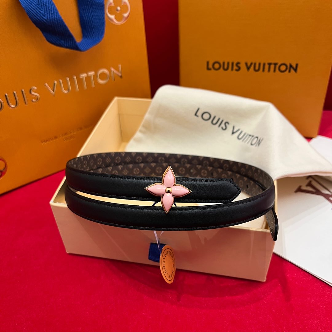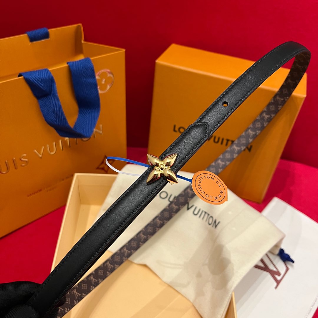 Louis Vuitton Women's Flowergram Reversible Belt In Brown/Cookie Monogram Reverse Canvas And White/Black/Red/Pink/Brown Calfskin With Gold/Silver Hardware 20mm