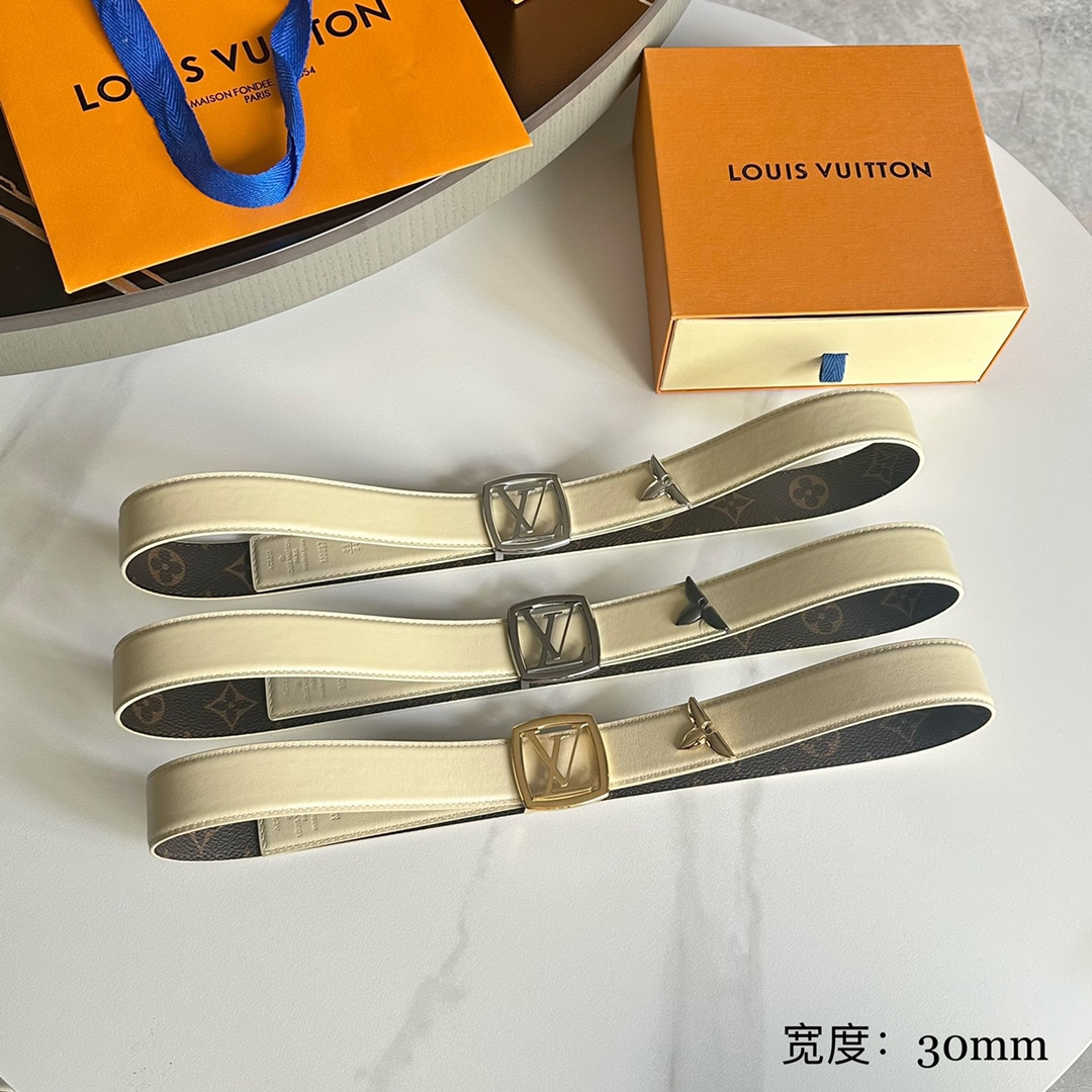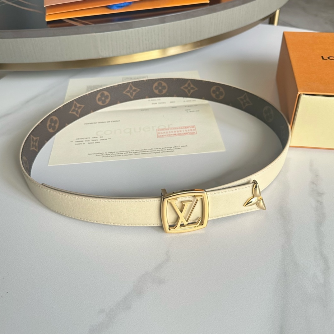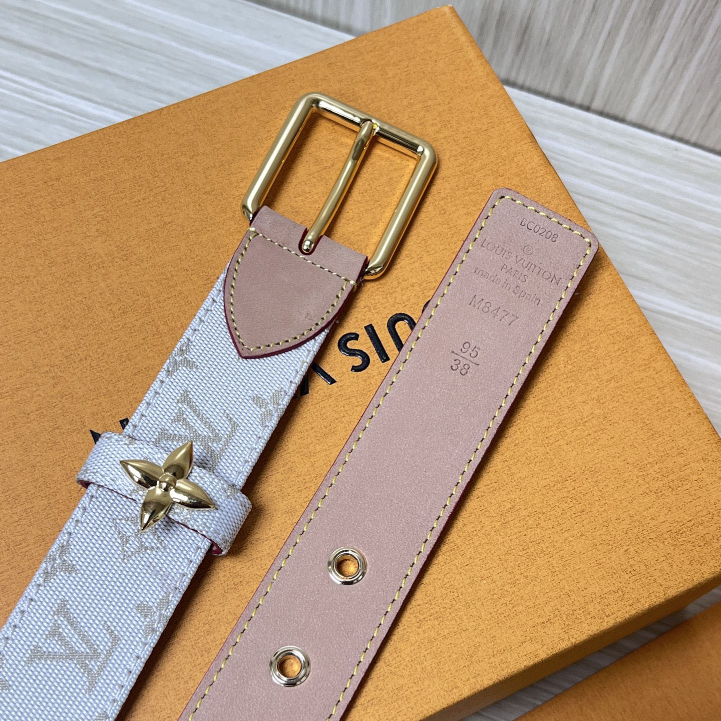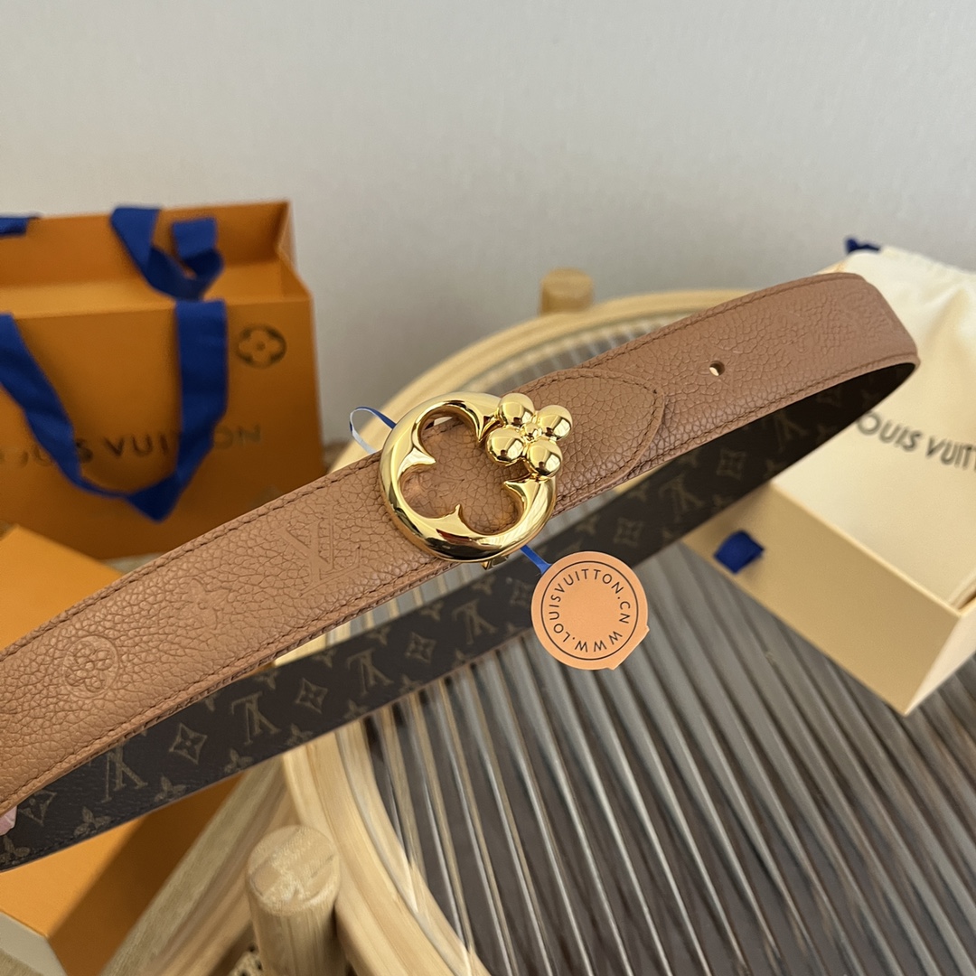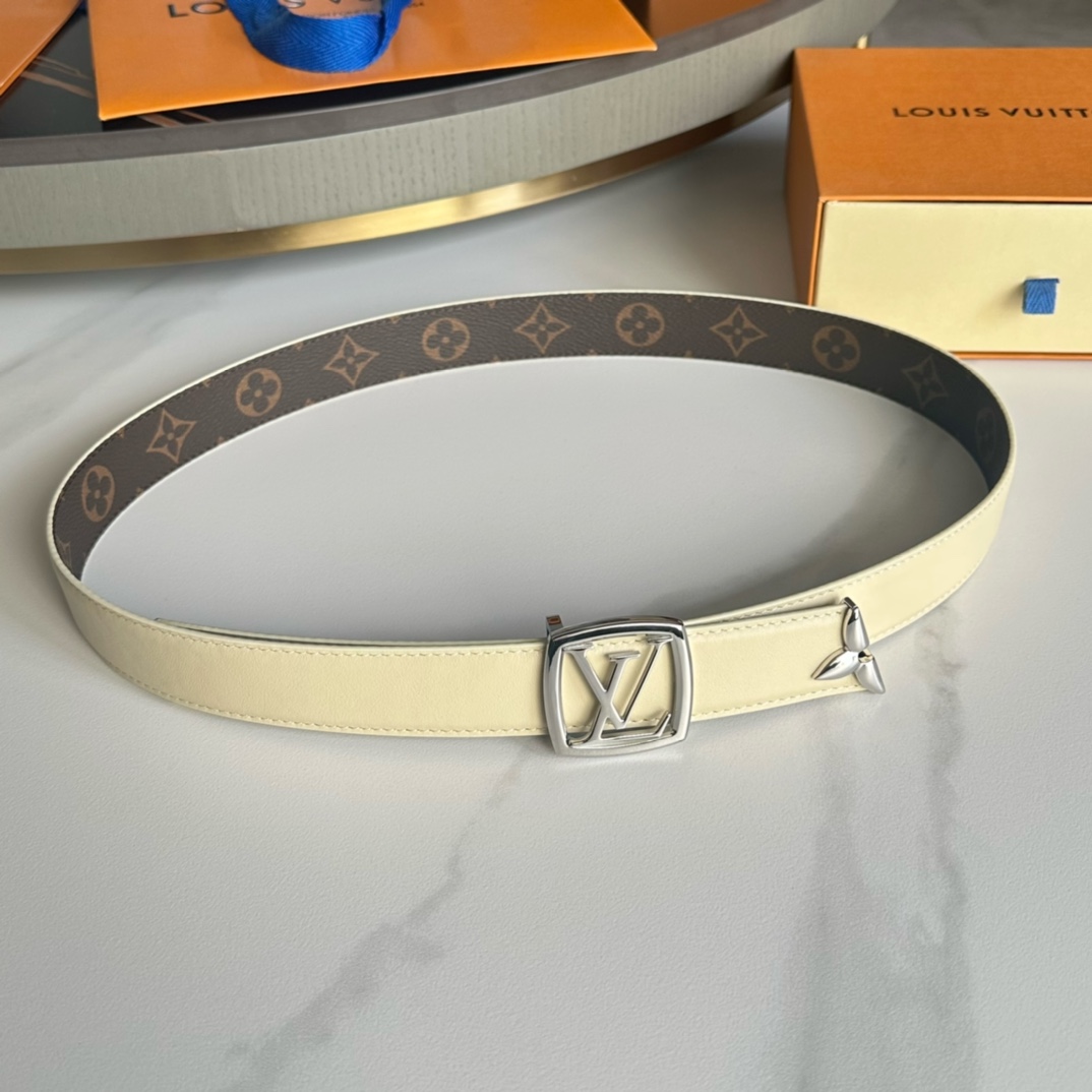 Louis Vuitton Women's Flowergram Reversible Belt In Brown/Cookie Monogram Reverse Canvas And White/Black/Red/Pink/Brown Calfskin With Gold/Silver Hardware 20mm