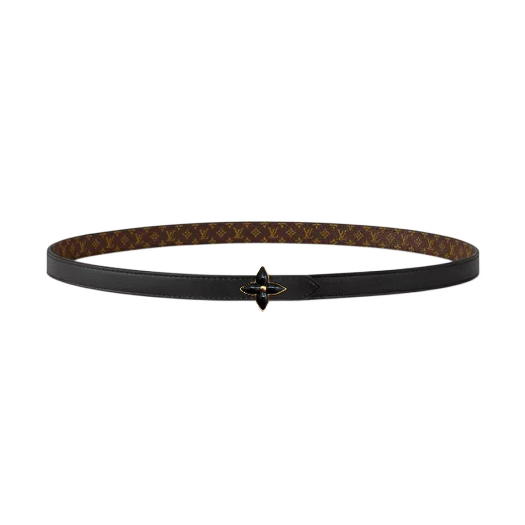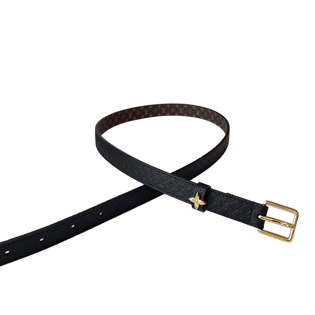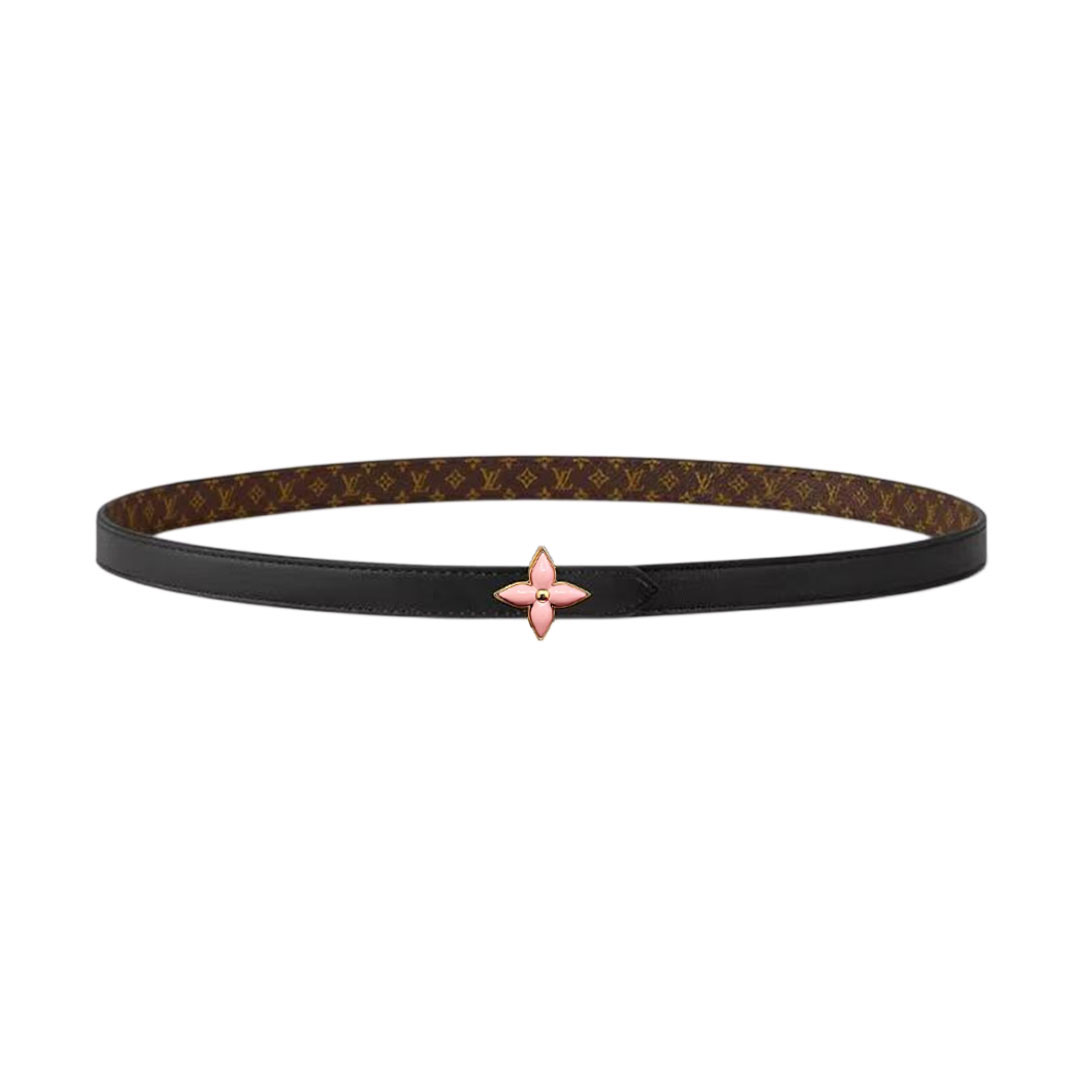 Louis Vuitton Women's Mini Flowergram Reversible Belt In Black Calfskin And Monogram Canvas With Gold/Silver/Pink/Black Hardware 15mm
