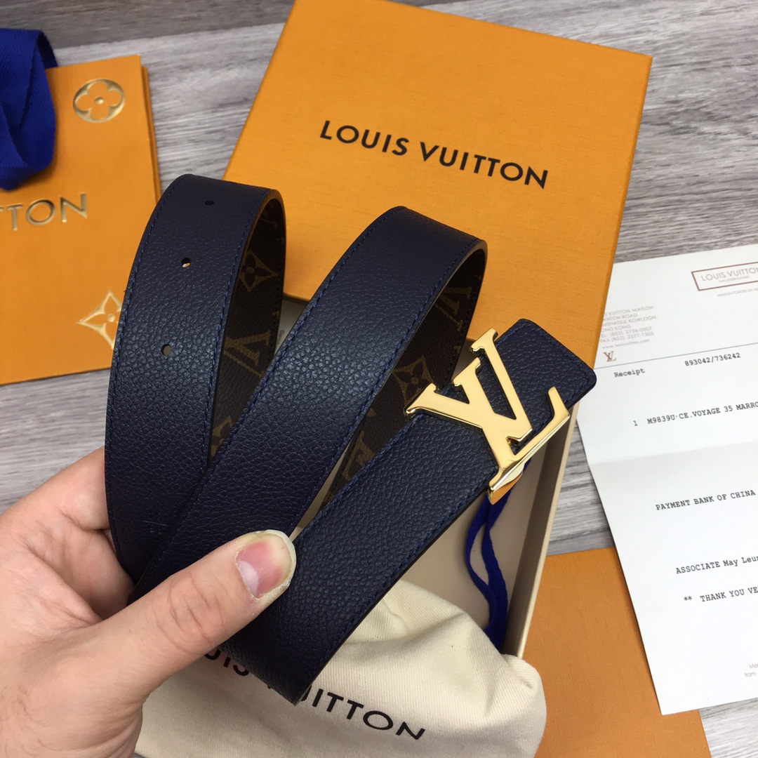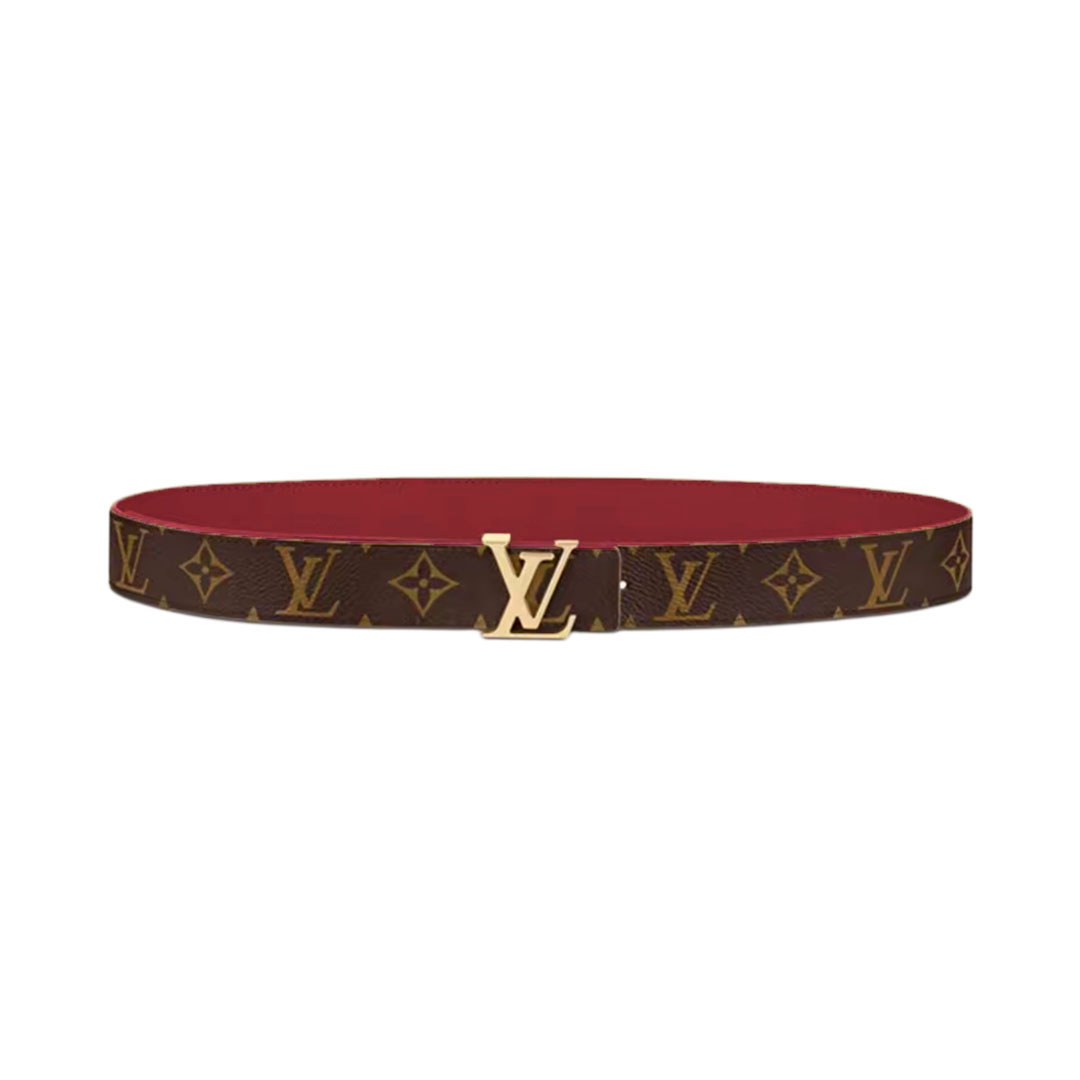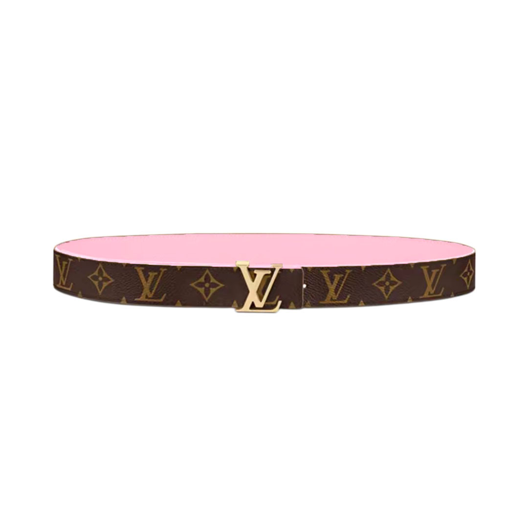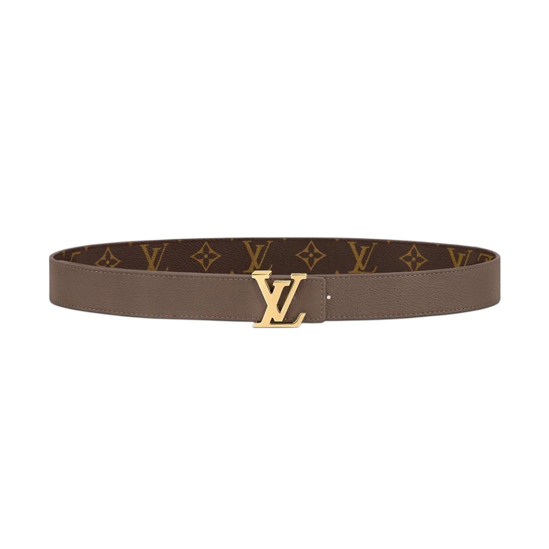 Louis Vuitton Women's Initiales Reversible Belt In Bkue/Black/Grey/Brown/Burgundy/Red/Pink Calfskin And Monogram Canvas With Gold Hardware 30mm