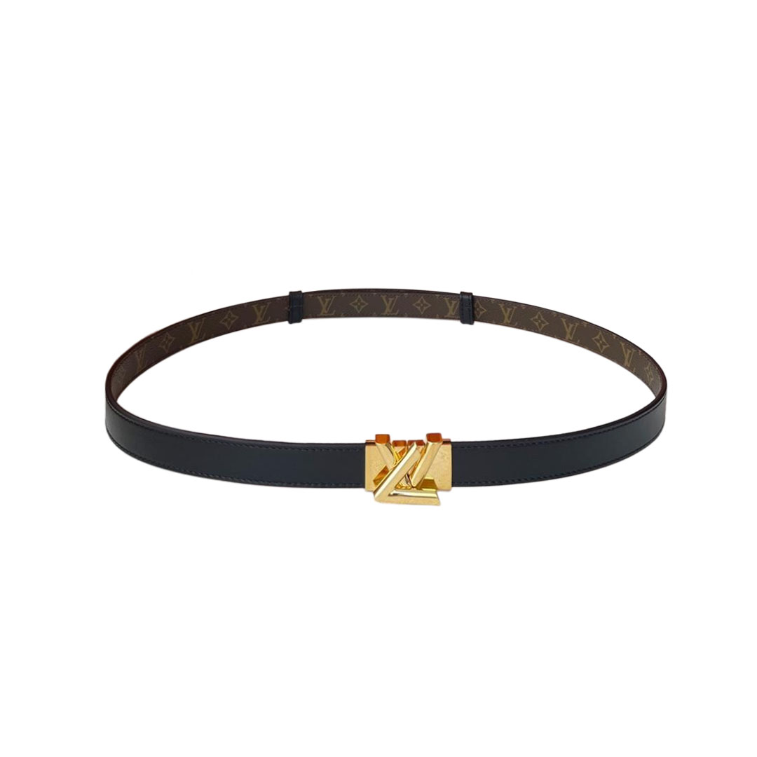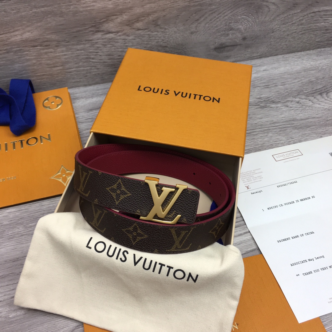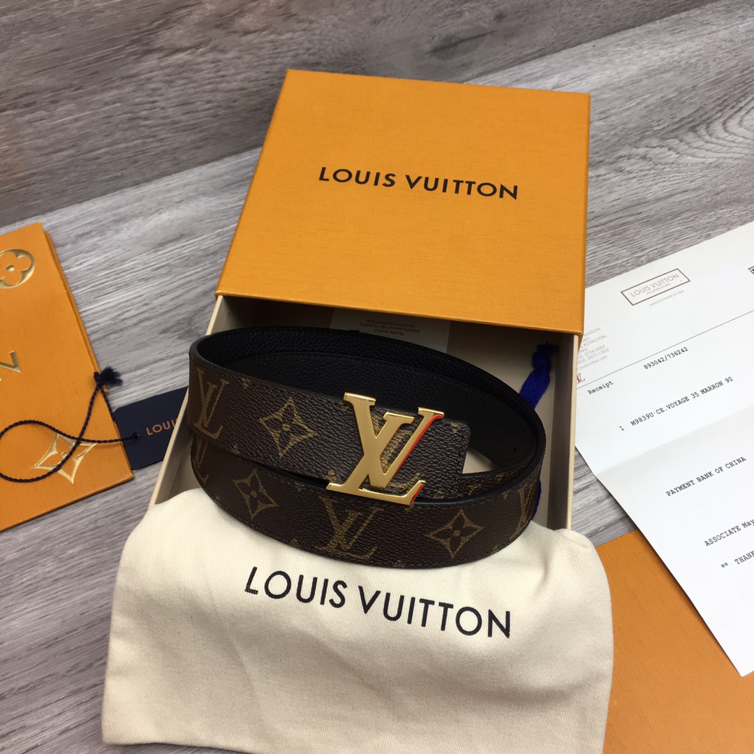 Louis Vuitton Women's Initiales Reversible Belt In Bkue/Black/Grey/Brown/Burgundy/Red/Pink Calfskin And Monogram Canvas With Gold Hardware 30mm