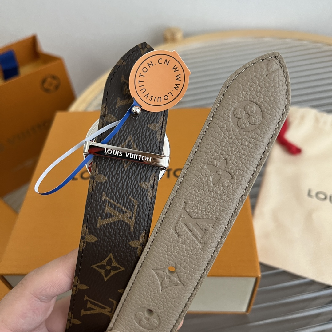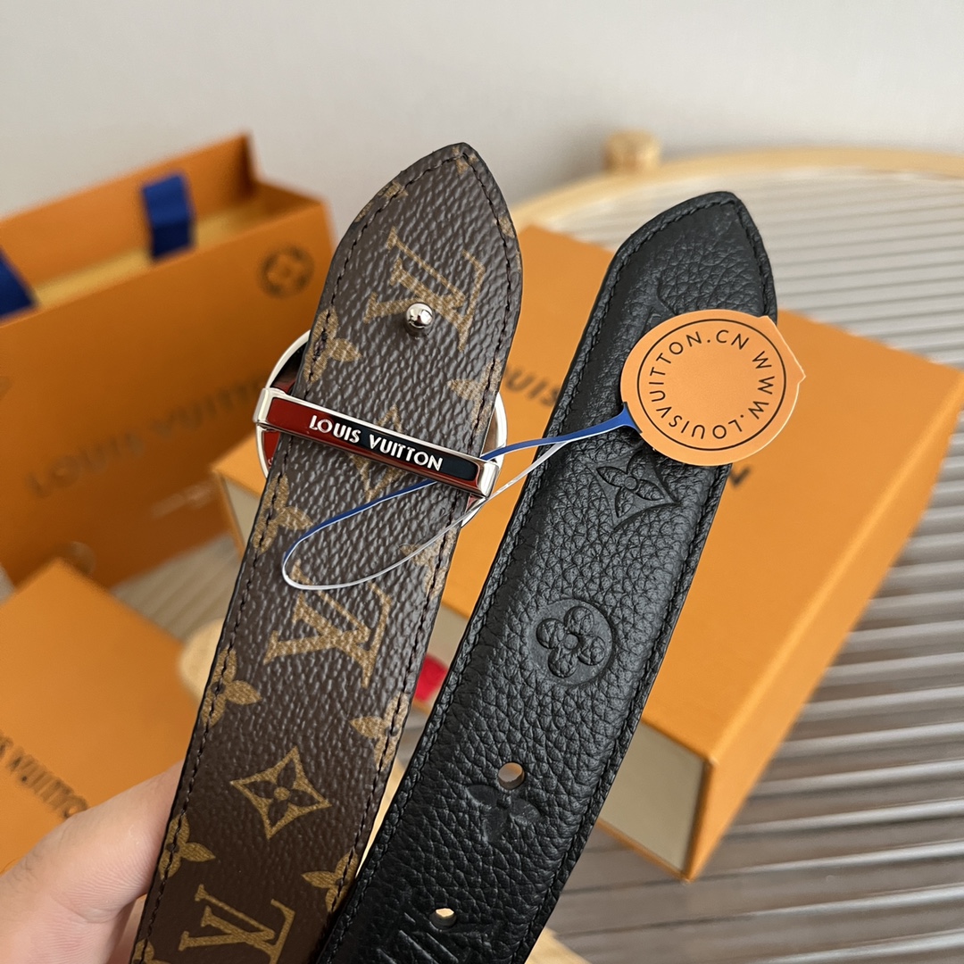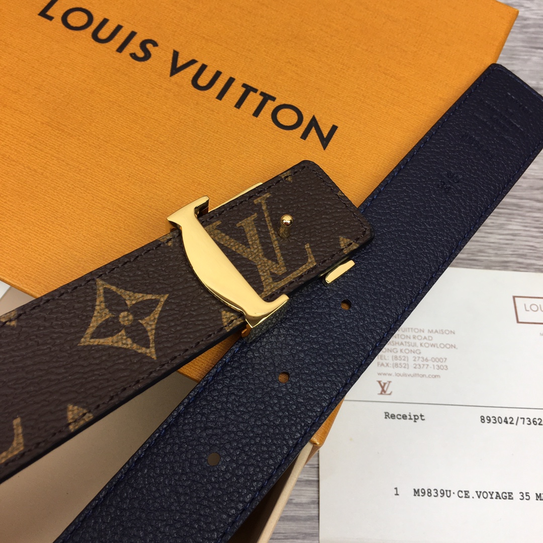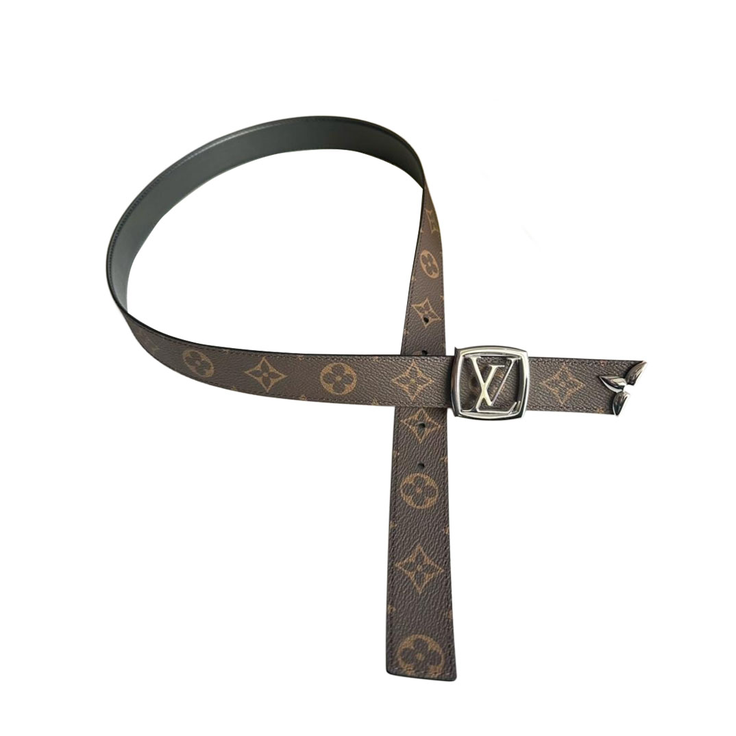 Louis Vuitton Women's Initiales Reversible Belt In Bkue/Black/Grey/Brown/Burgundy/Red/Pink Calfskin And Monogram Canvas With Gold Hardware 30mm