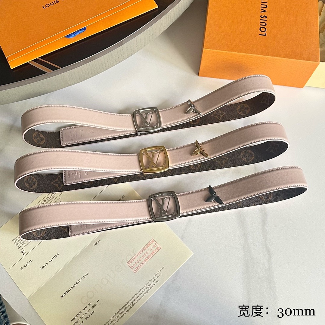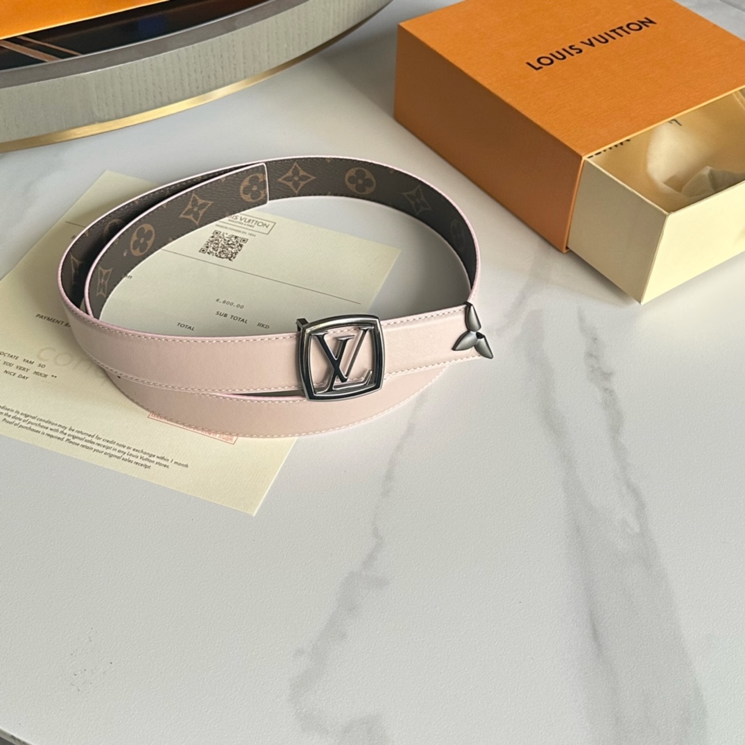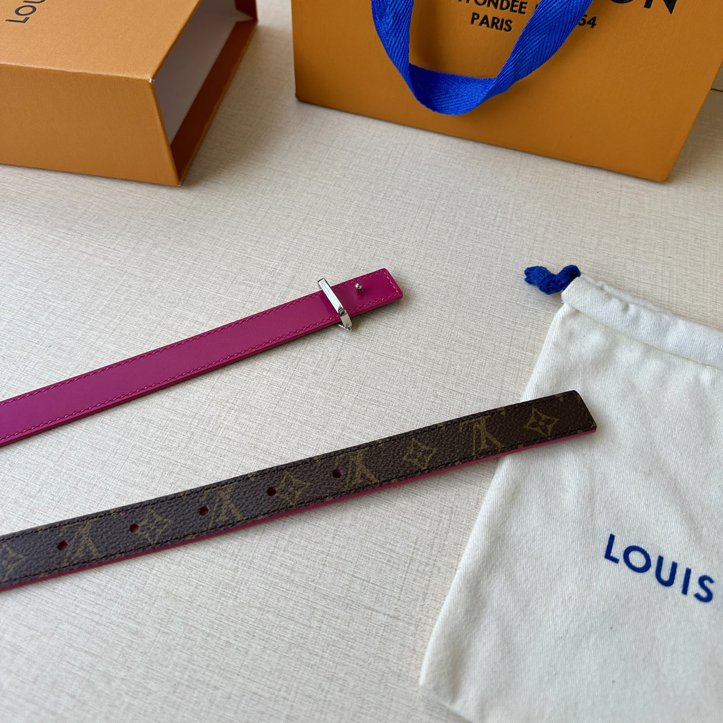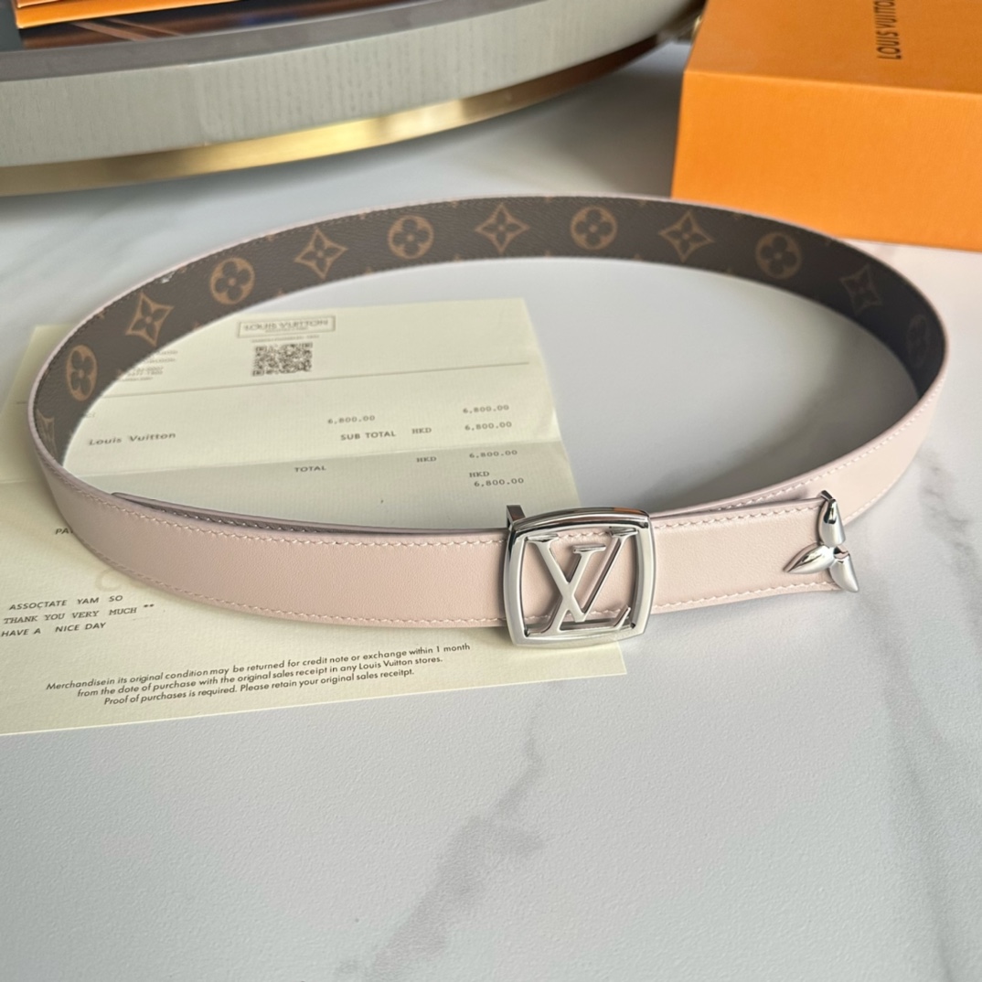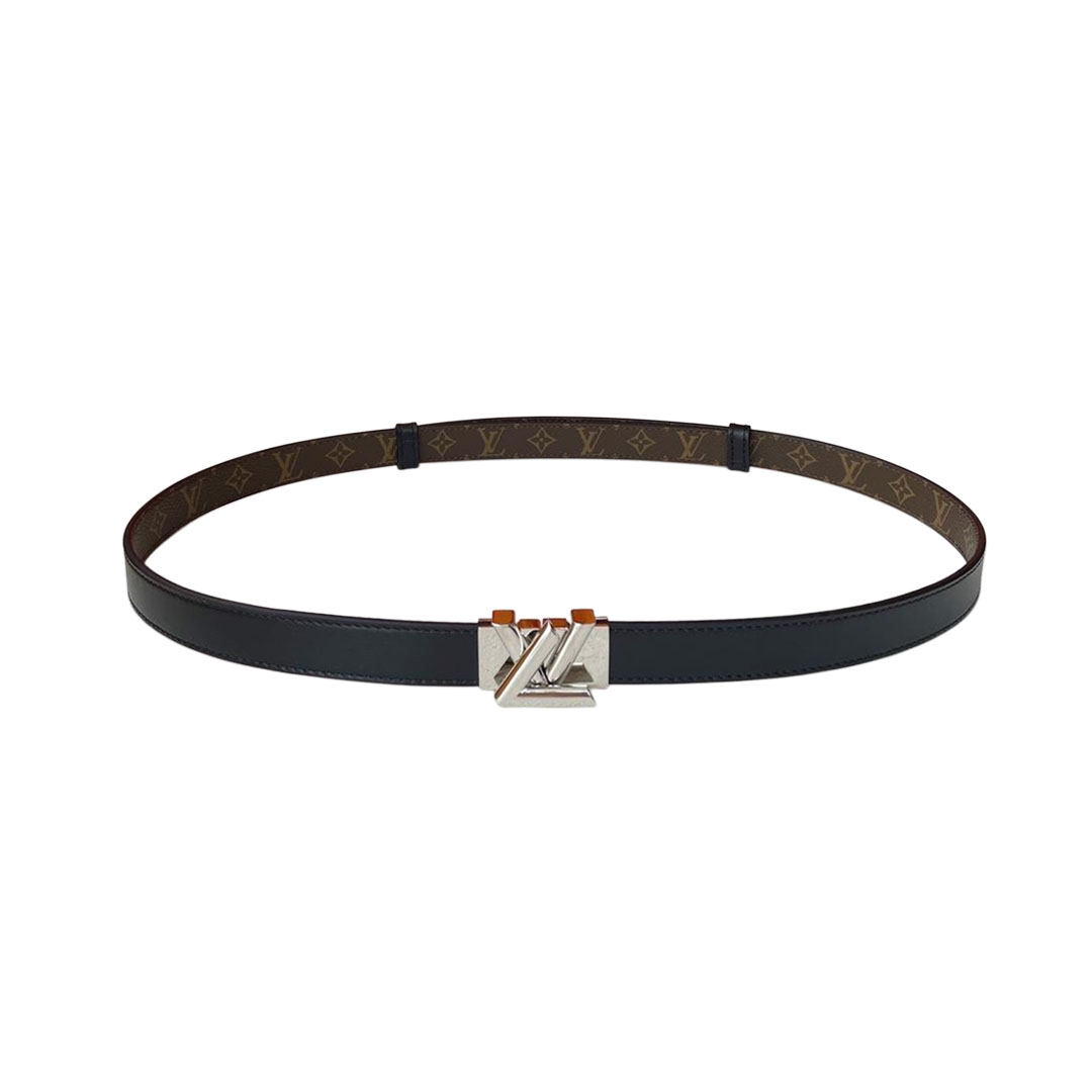 Louis Vuitton Women's Line Ellipse Reversible Belt In Black/Pink/White Calfskin And Monogram Canvas With Gold/Silver/Gun Black Hardware 30mm