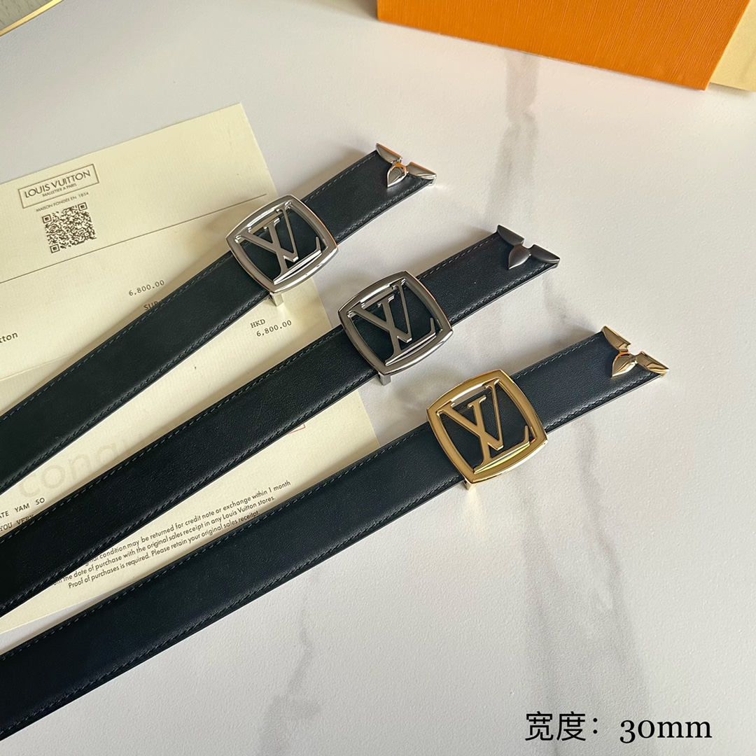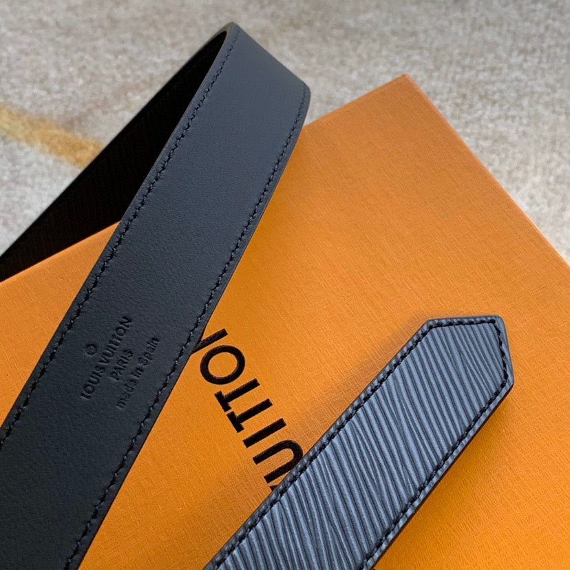 Louis Vuitton Women's Malletier Square Buckle Belt In Black Calfskin With Silver Hardware 25mm