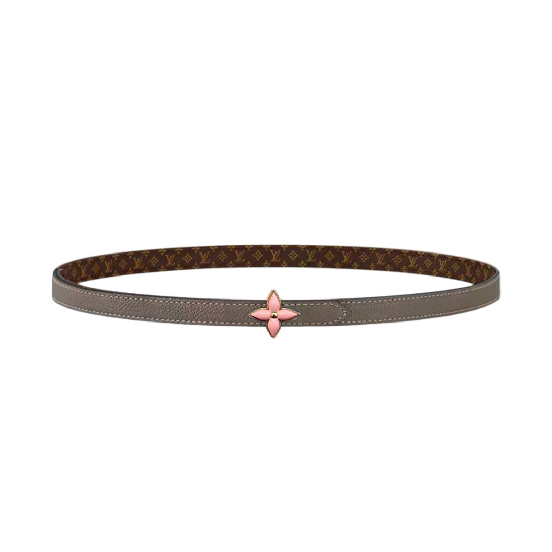 Louis Vuitton Women's Mini Flowergram Reversible Belt In Grey Calfskin And Monogram Canvas With Gold/Silver/Pink/Black Hardware 15mm