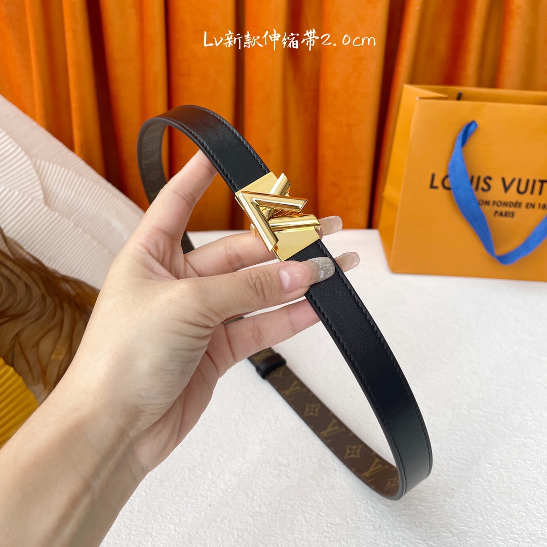 Louis Vuitton Women's GO-14 Adjustable Belt In Black/Brown/White Calfskin And Monogram Canvas With Gold/Silver Hardware 20mm