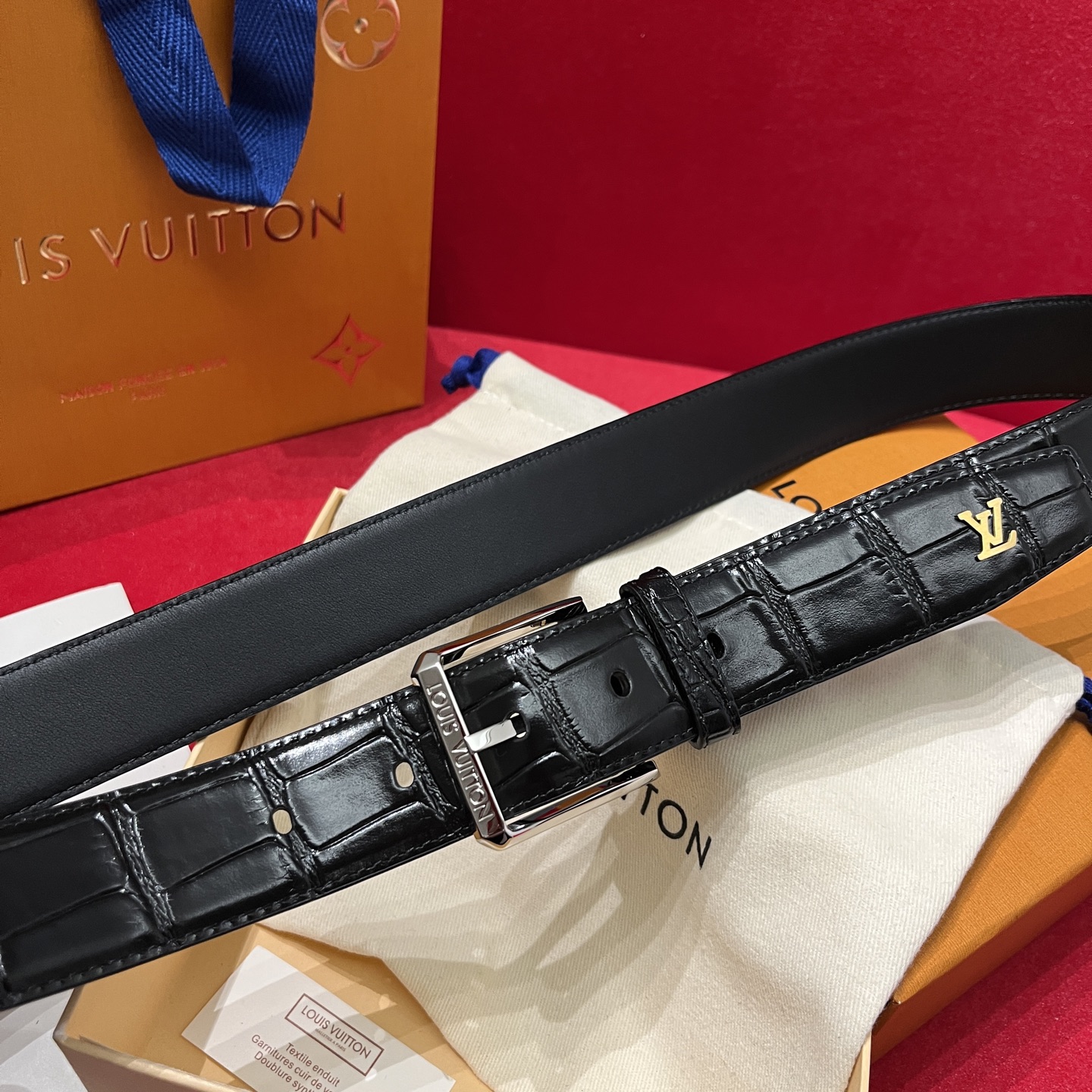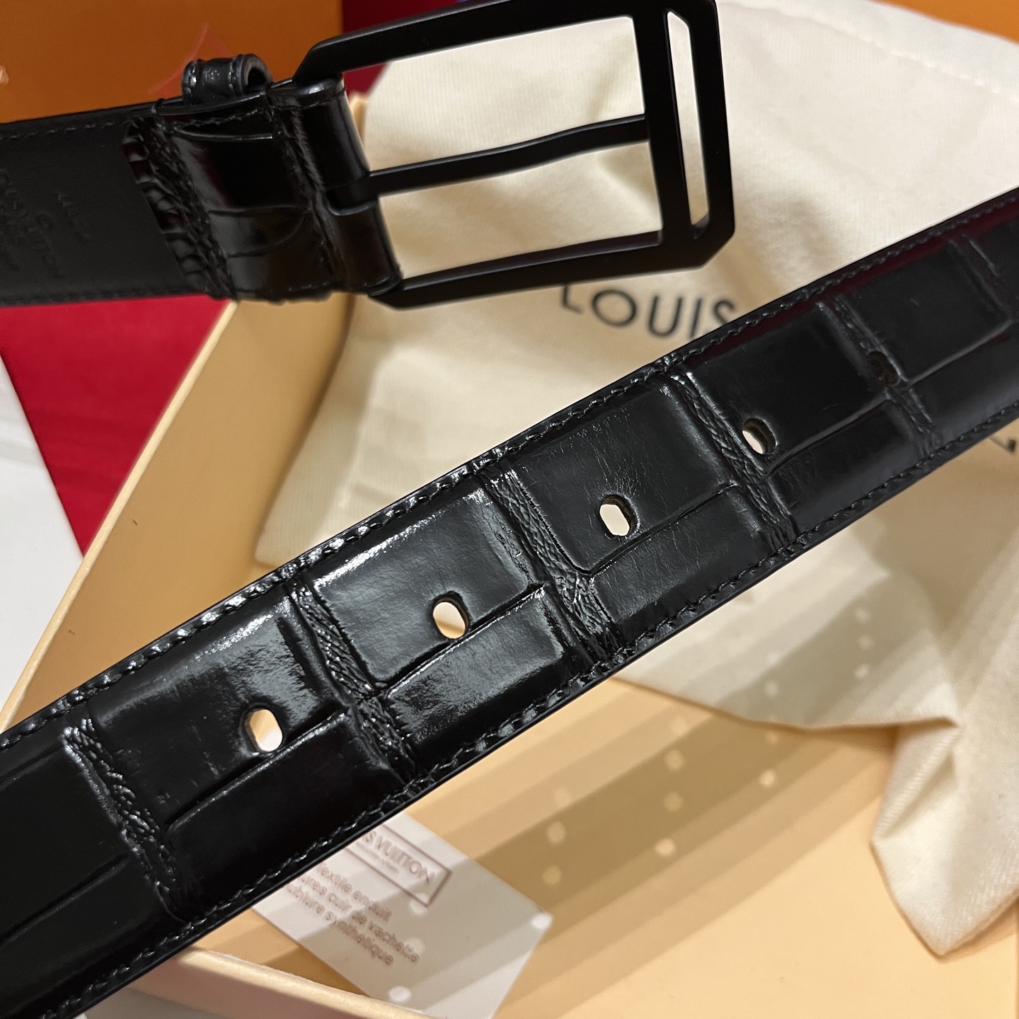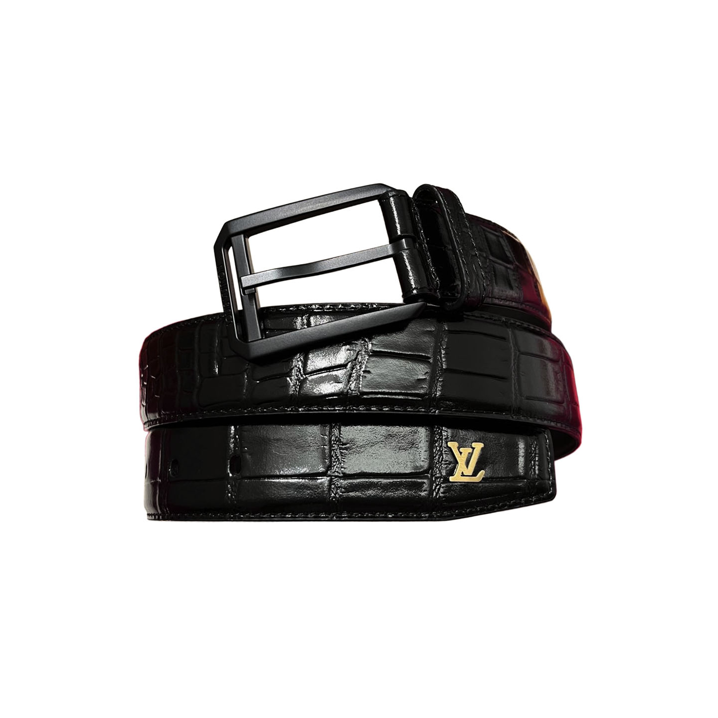 Louis Vuitton Men's Heritage Belt In Black Crocodile-Embossed Calfskin With Gold/Silver/Black Hardware 35mm