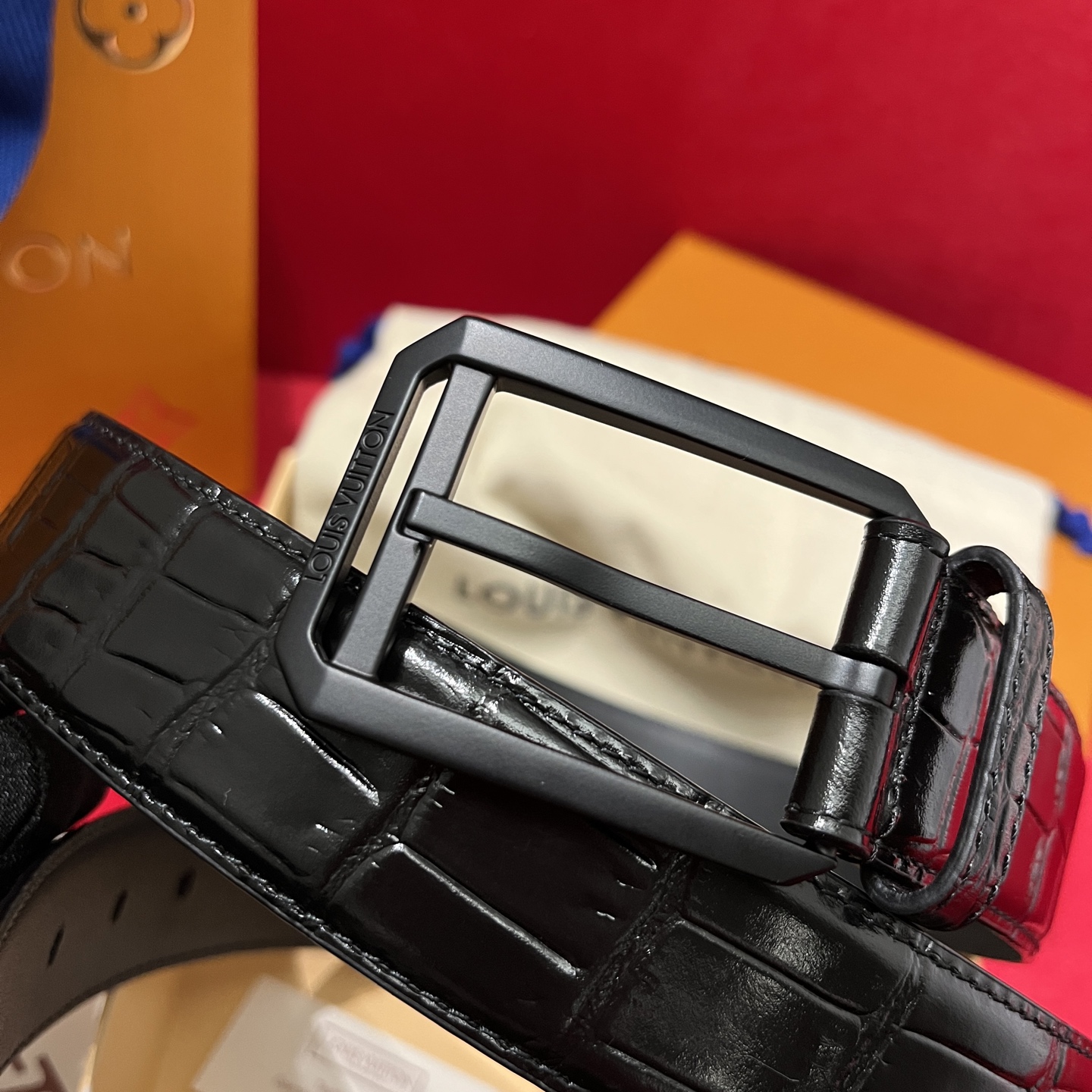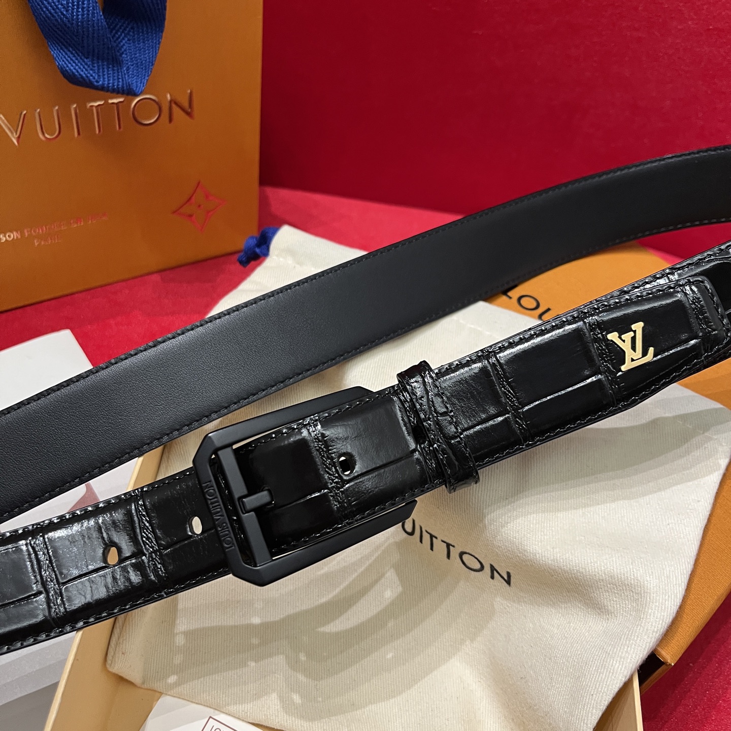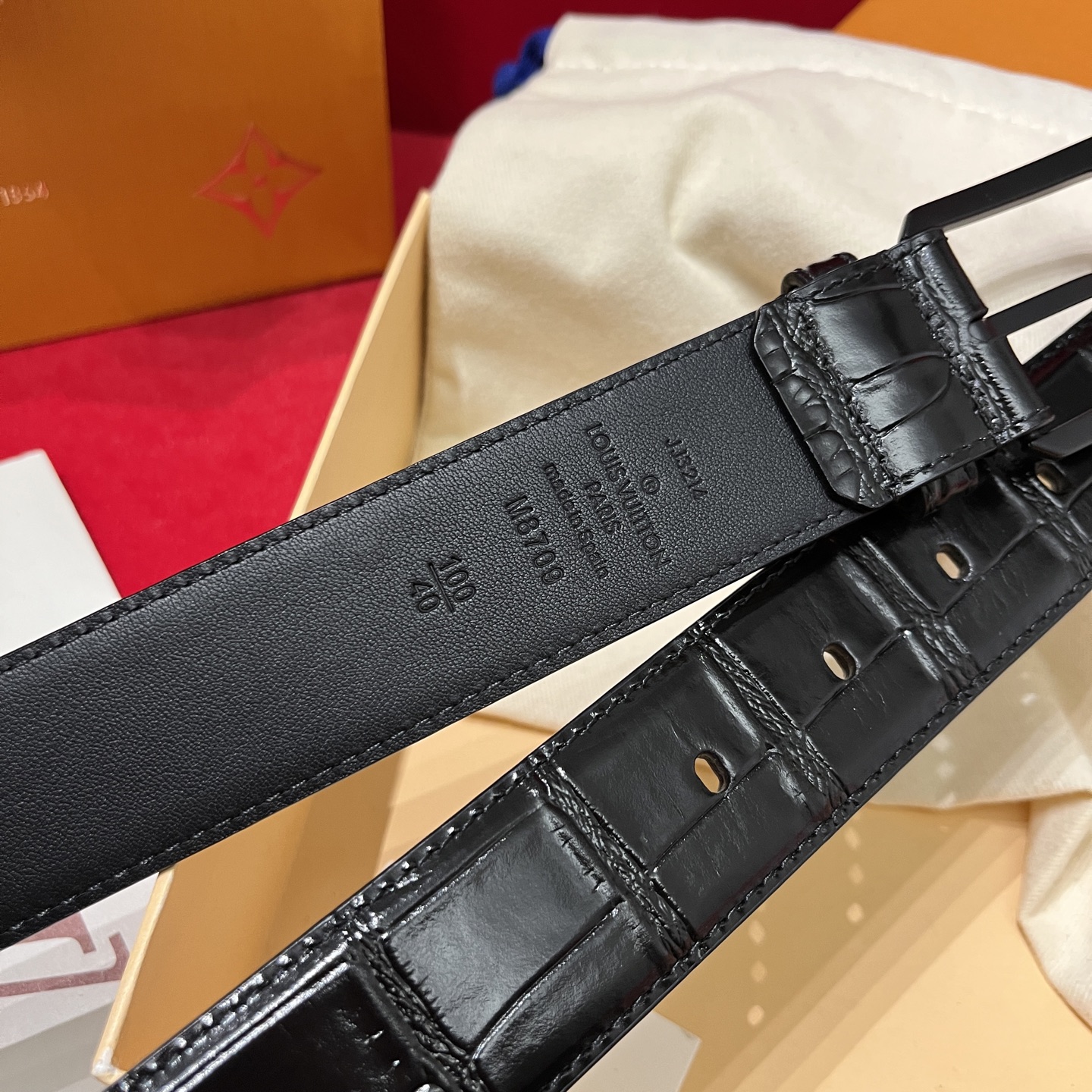 Louis Vuitton Men's Heritage Belt In Black Crocodile-Embossed Calfskin With Gold/Silver/Black Hardware 35mm