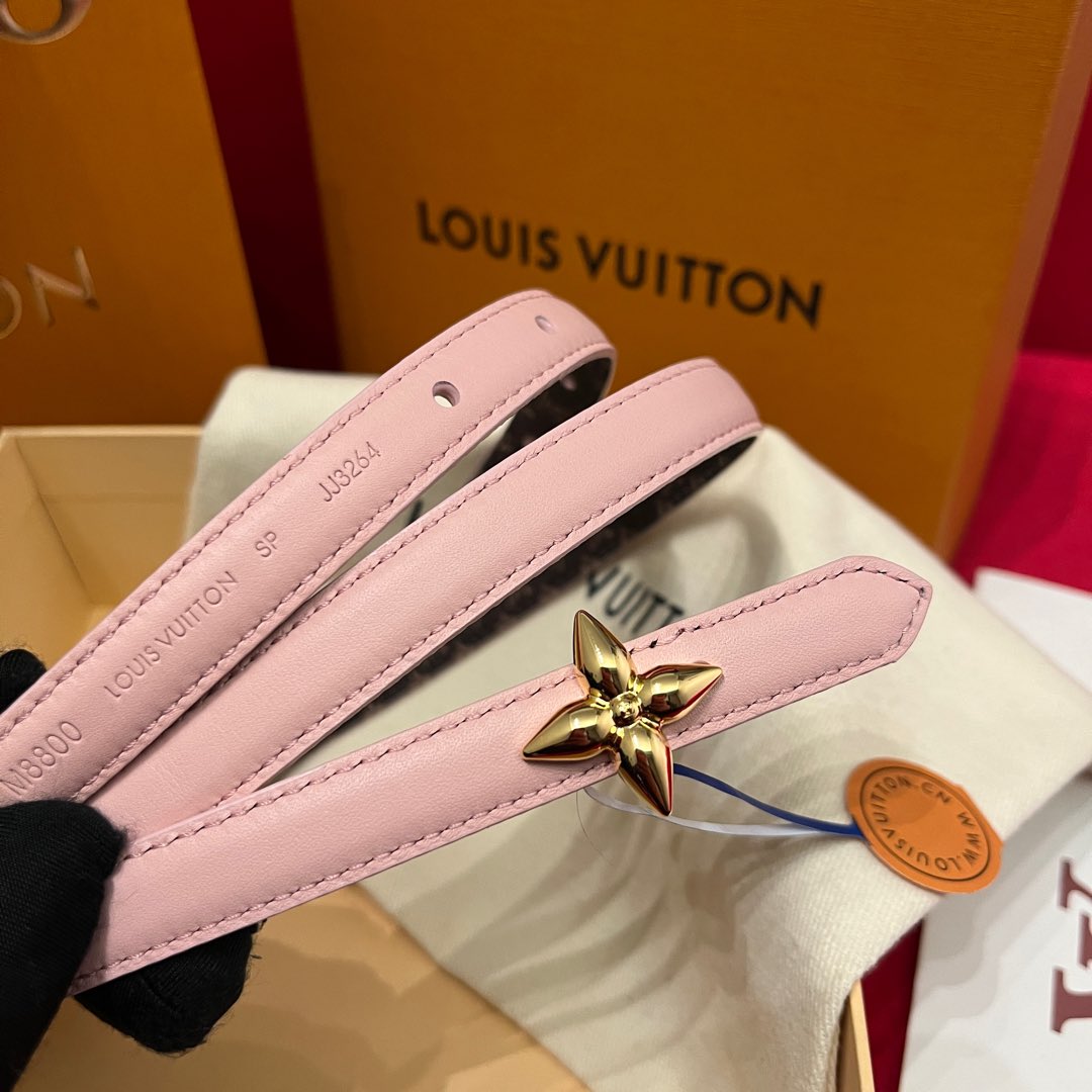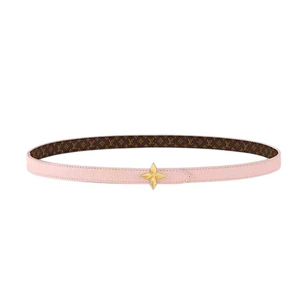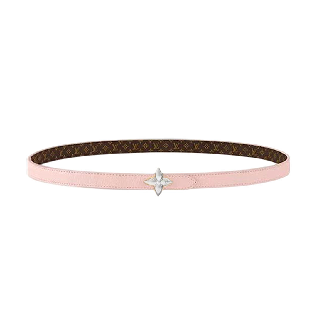 Louis Vuitton Women's Mini Flowergram Reversible Belt In Pink Calfskin And Monogram Canvas With Gold/Silver/Pink/Black Hardware 15mm