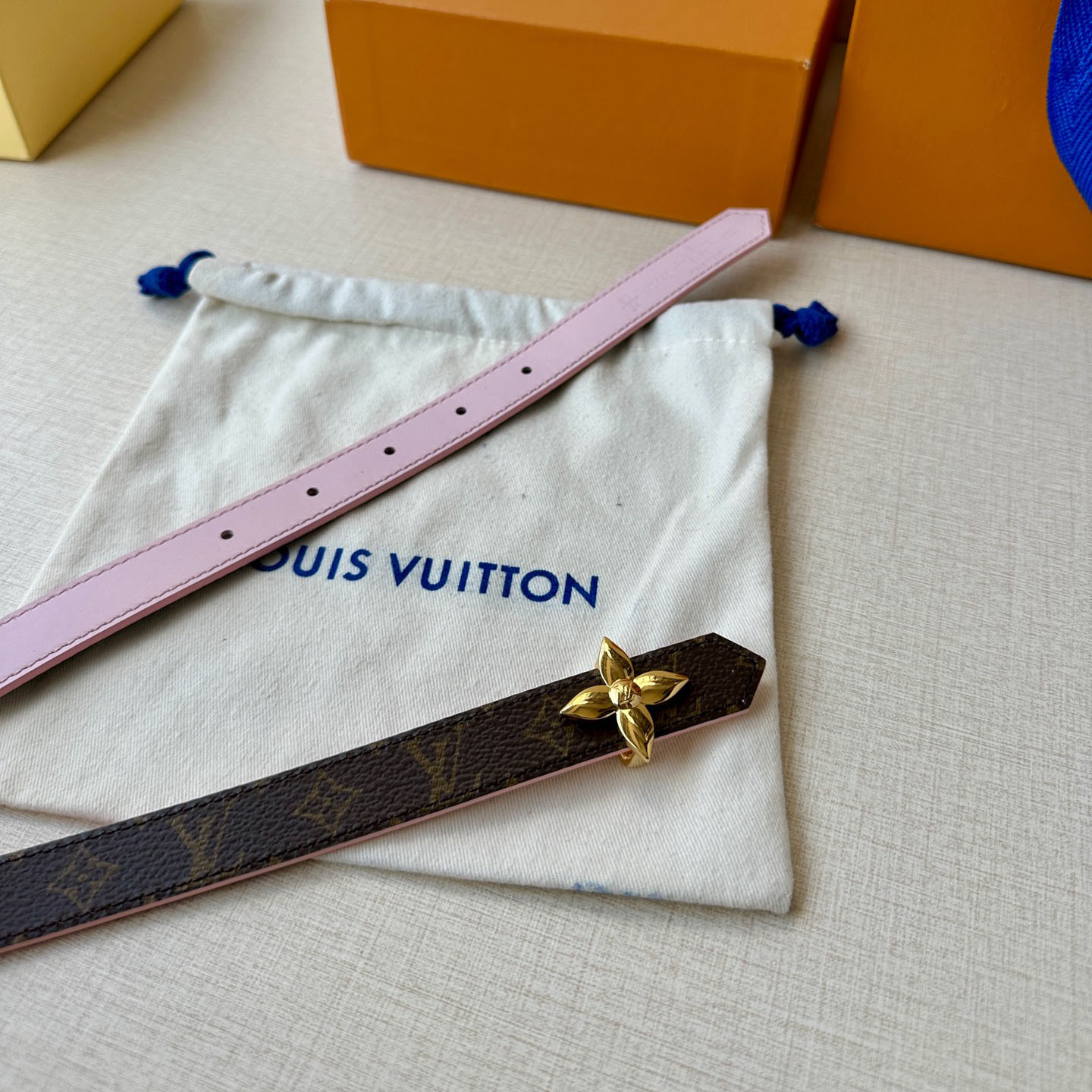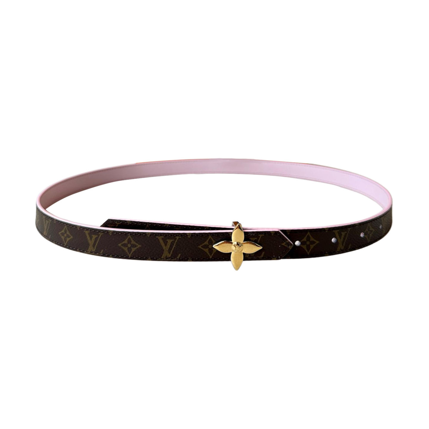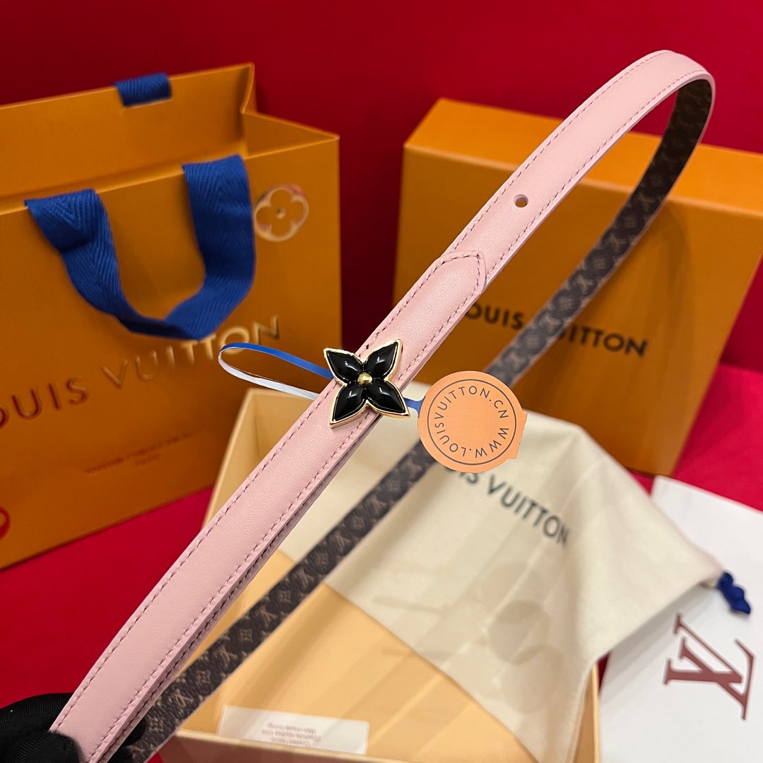 Louis Vuitton Women's Mini Flowergram Reversible Belt In Pink Calfskin And Monogram Canvas With Gold/Silver/Pink/Black Hardware 15mm