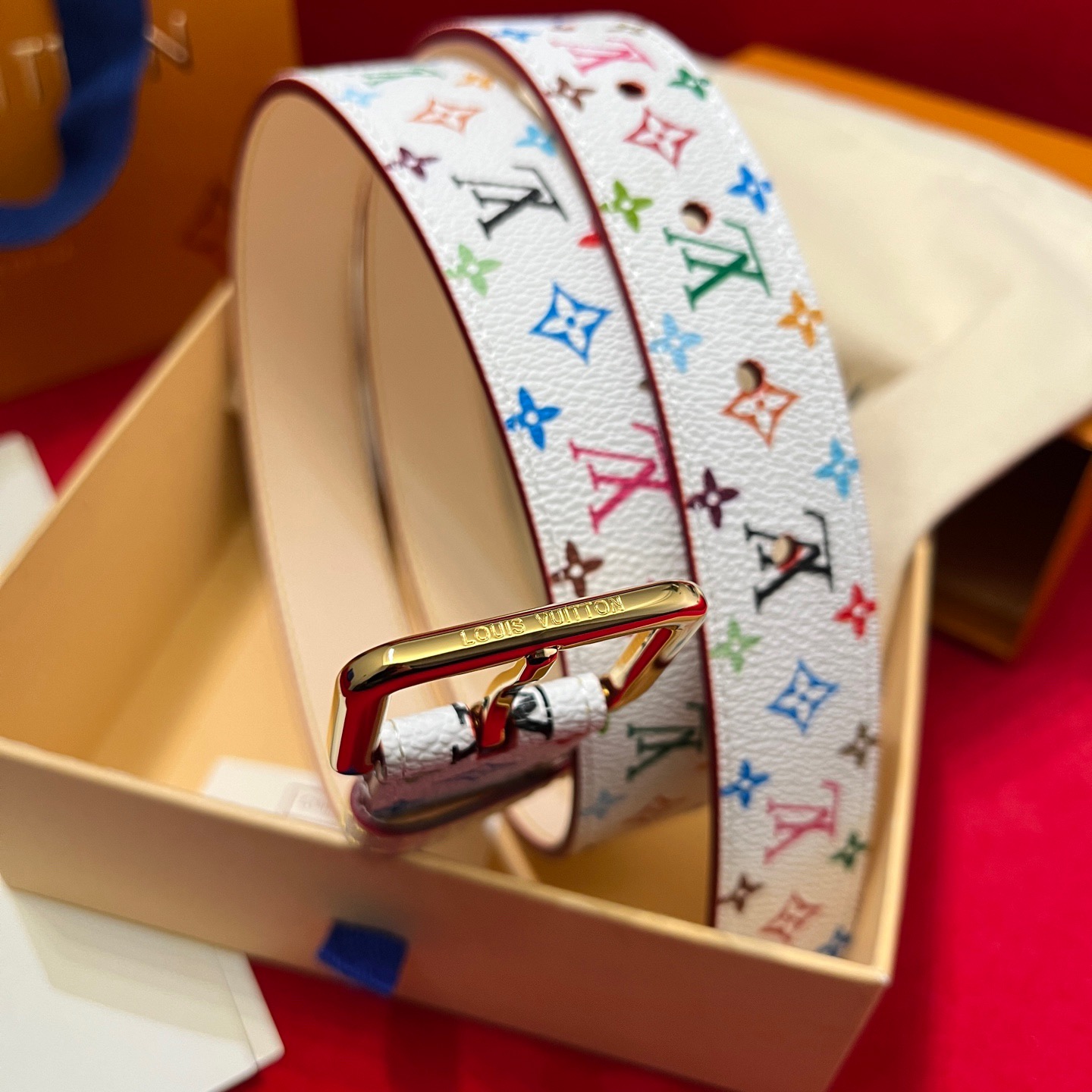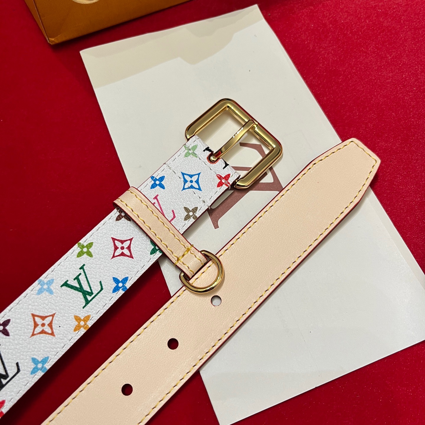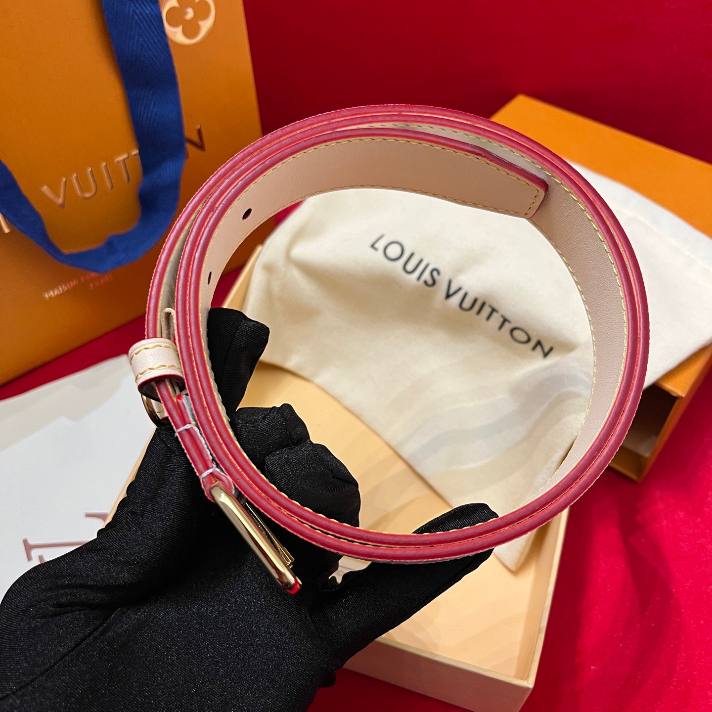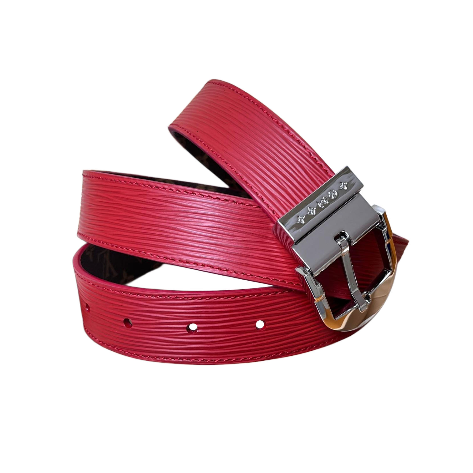 Louis Vuitton Women's Timeless Epi Belt In Black/Red/Pink Calfskin And Monogram Canvas With Gold/Silver Hardware 30mm