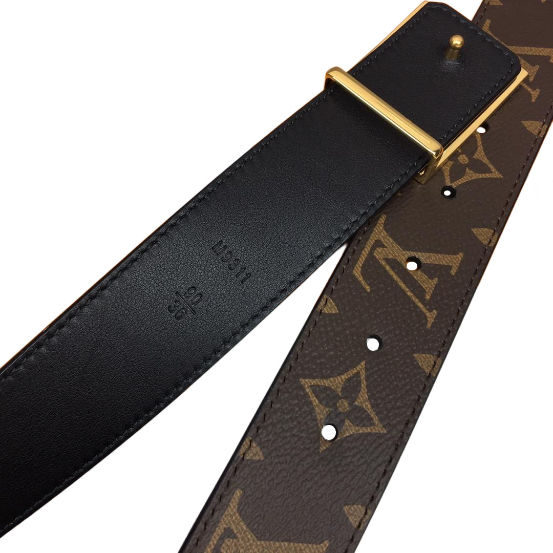 Louis Vuitton Women's Square Buckle Reversible Belt In Black Calfskin And Monogram Canvas With Gold Hardware 35mm