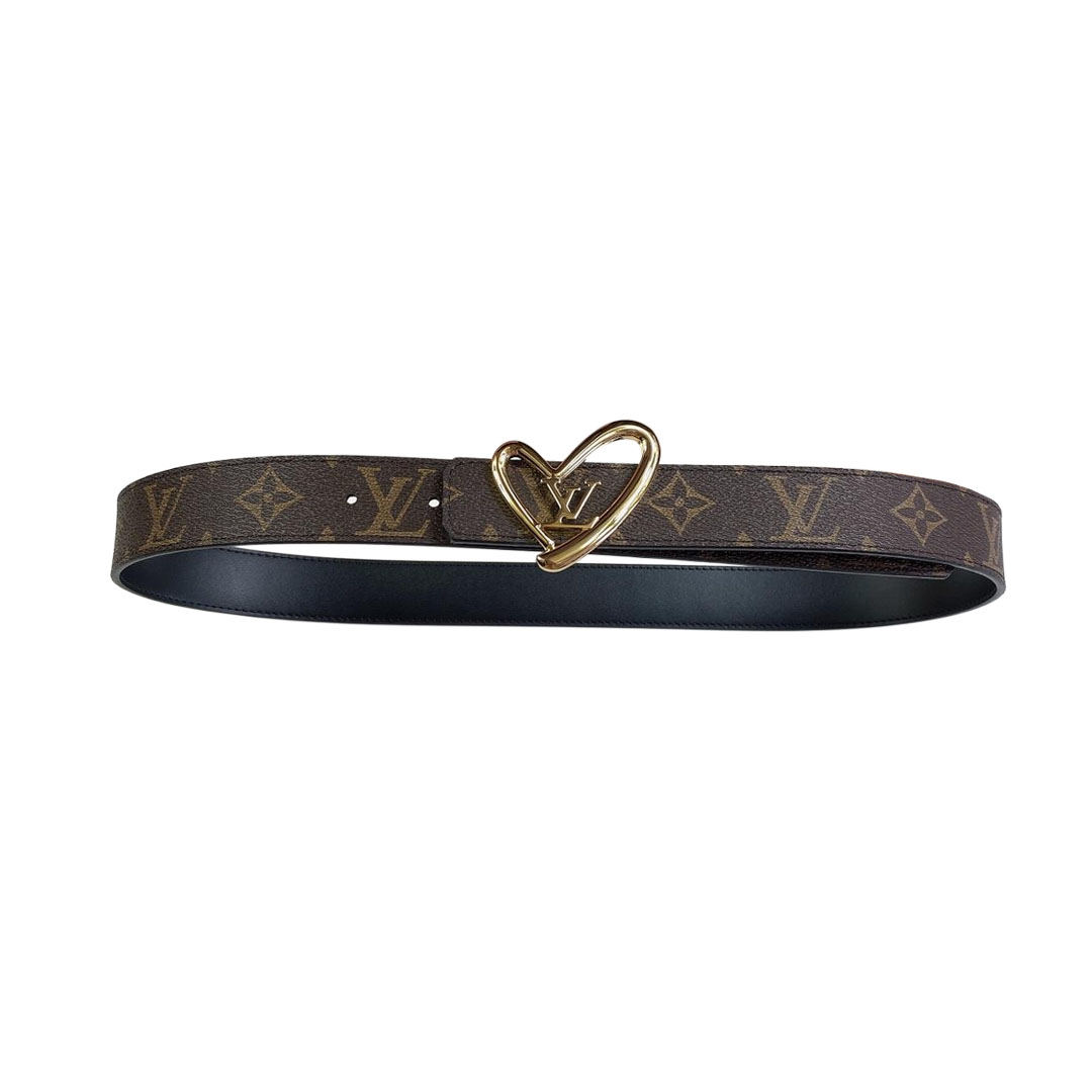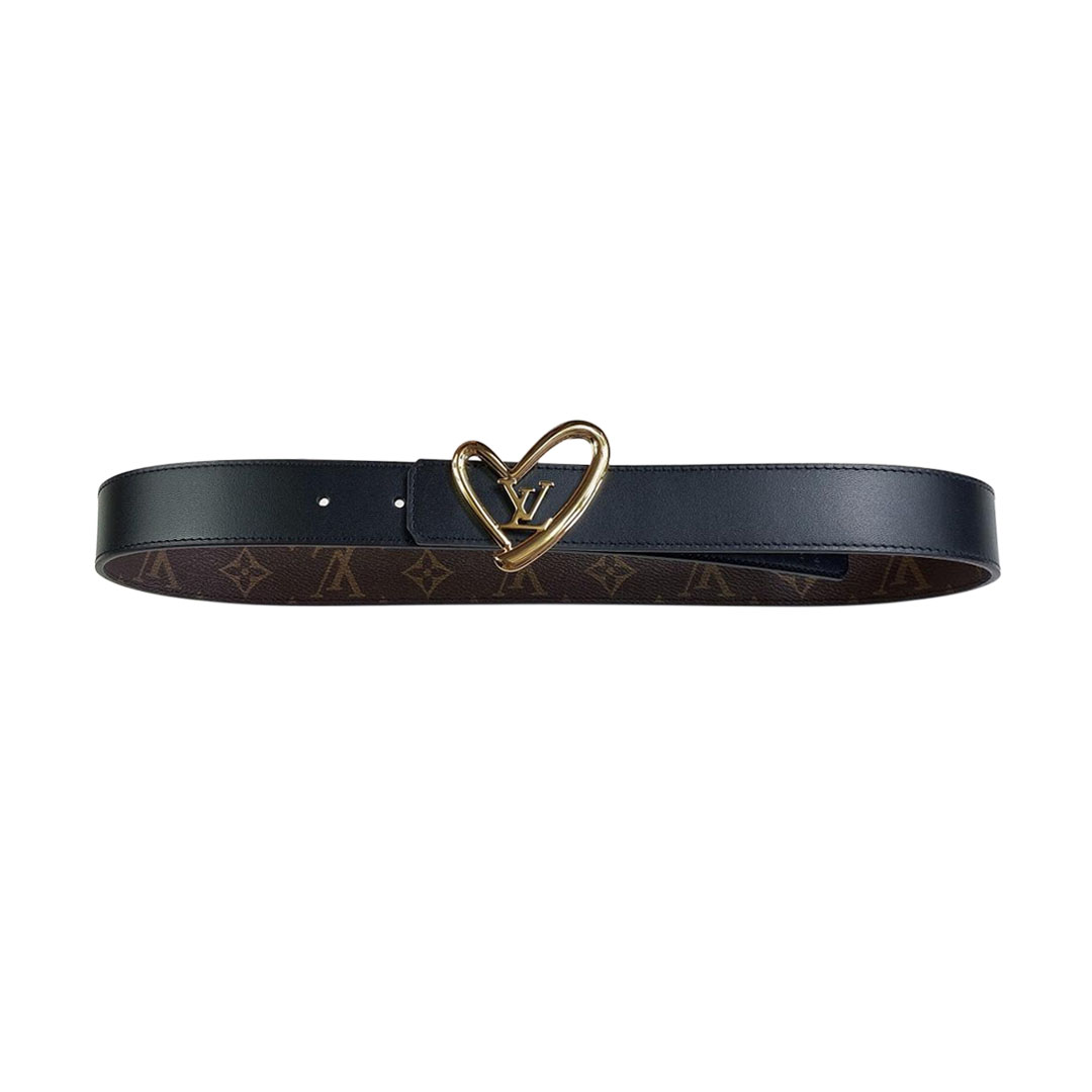 Louis Vuitton Women's The Knot Reversible Belt In Black Calfskin And Monogram Canvas With Gold Hardware 20mm