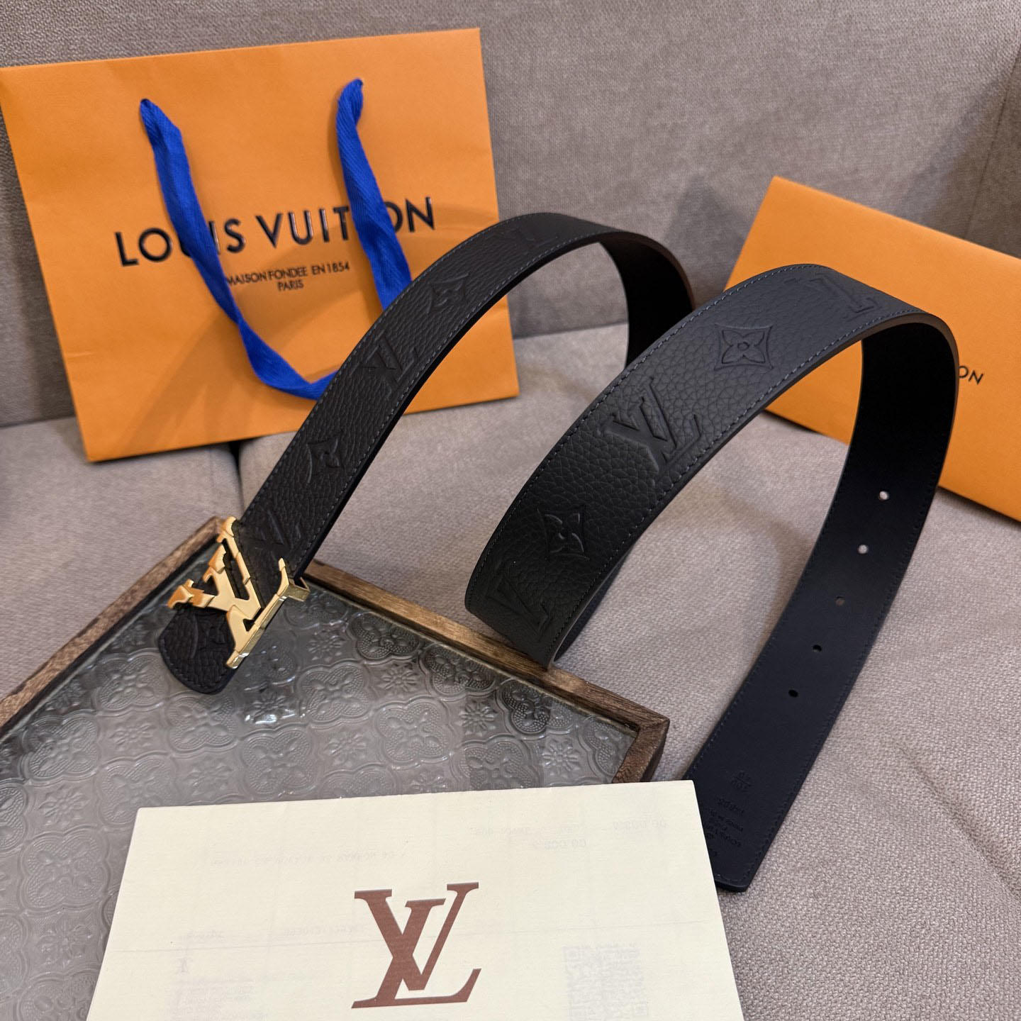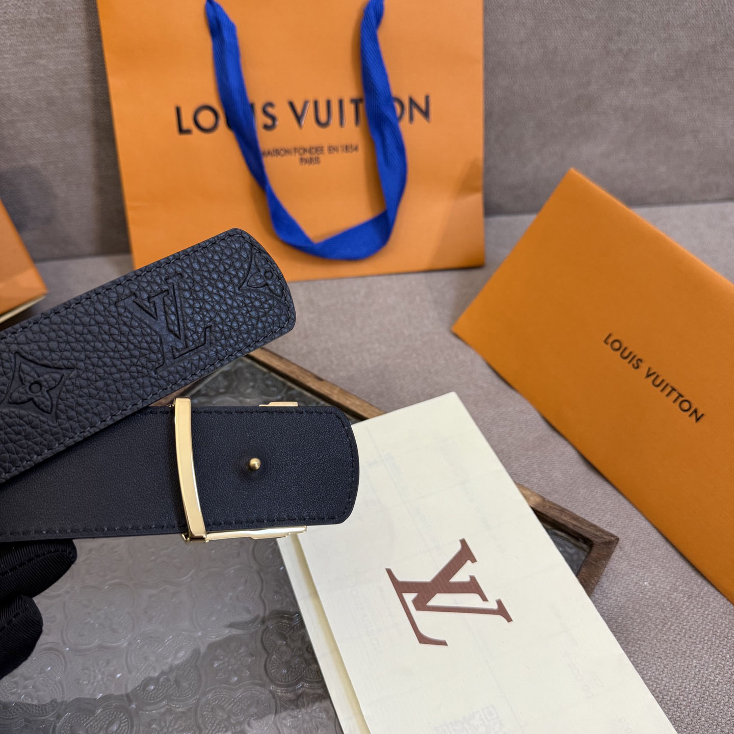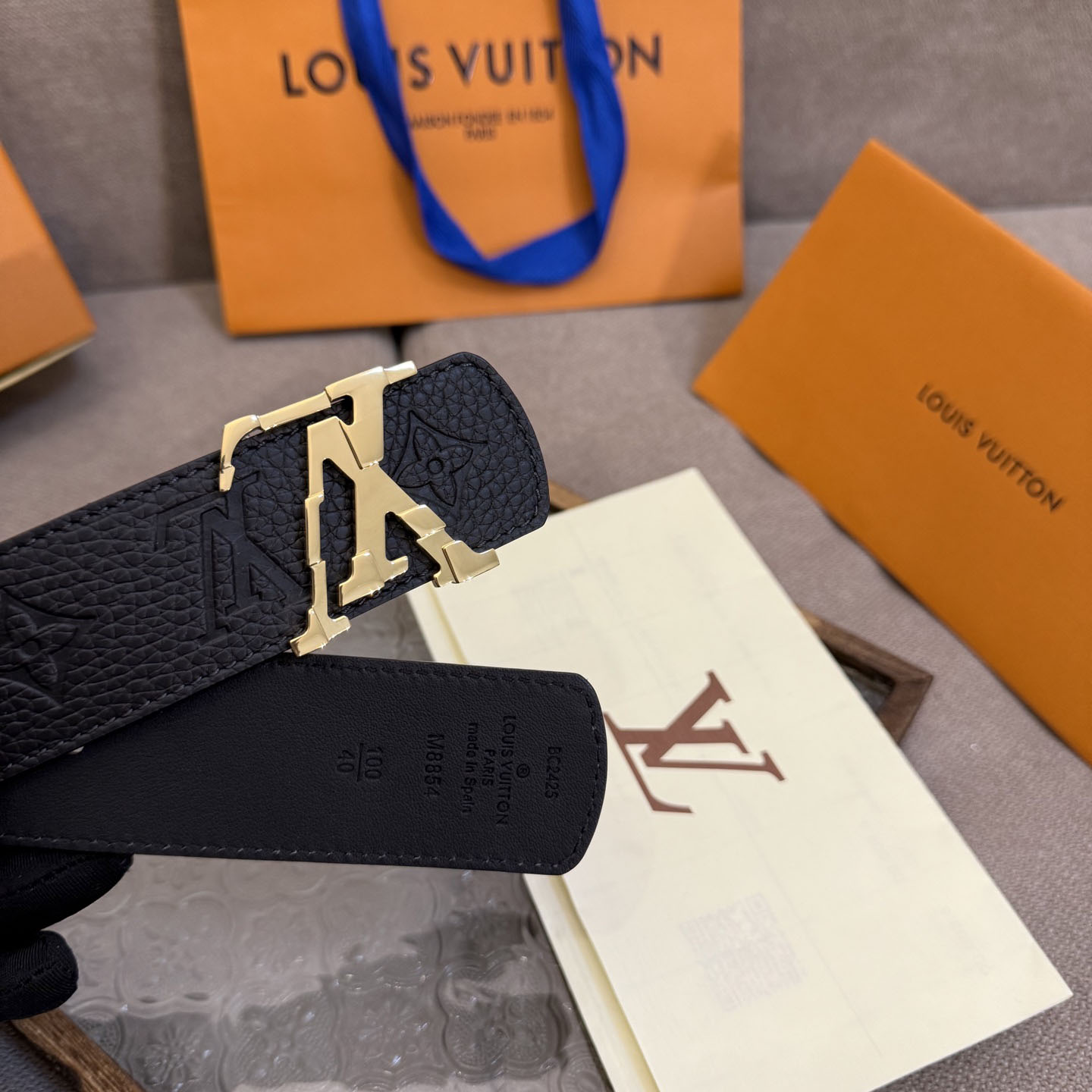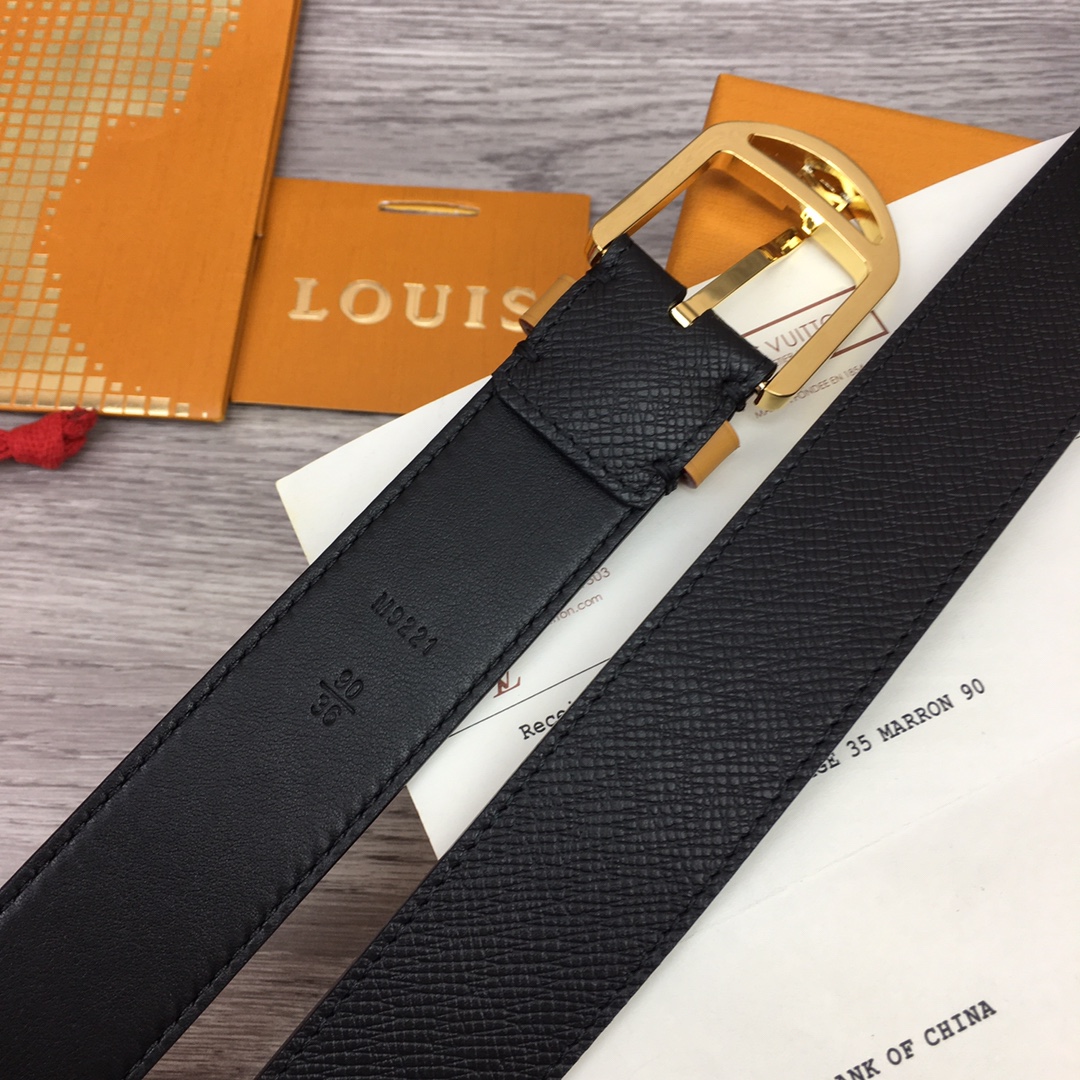 Louis Vuitton Men's Timeless Germain Belt In Black Calfskin With Gold/Silver/Gun Black Hardware 35mm