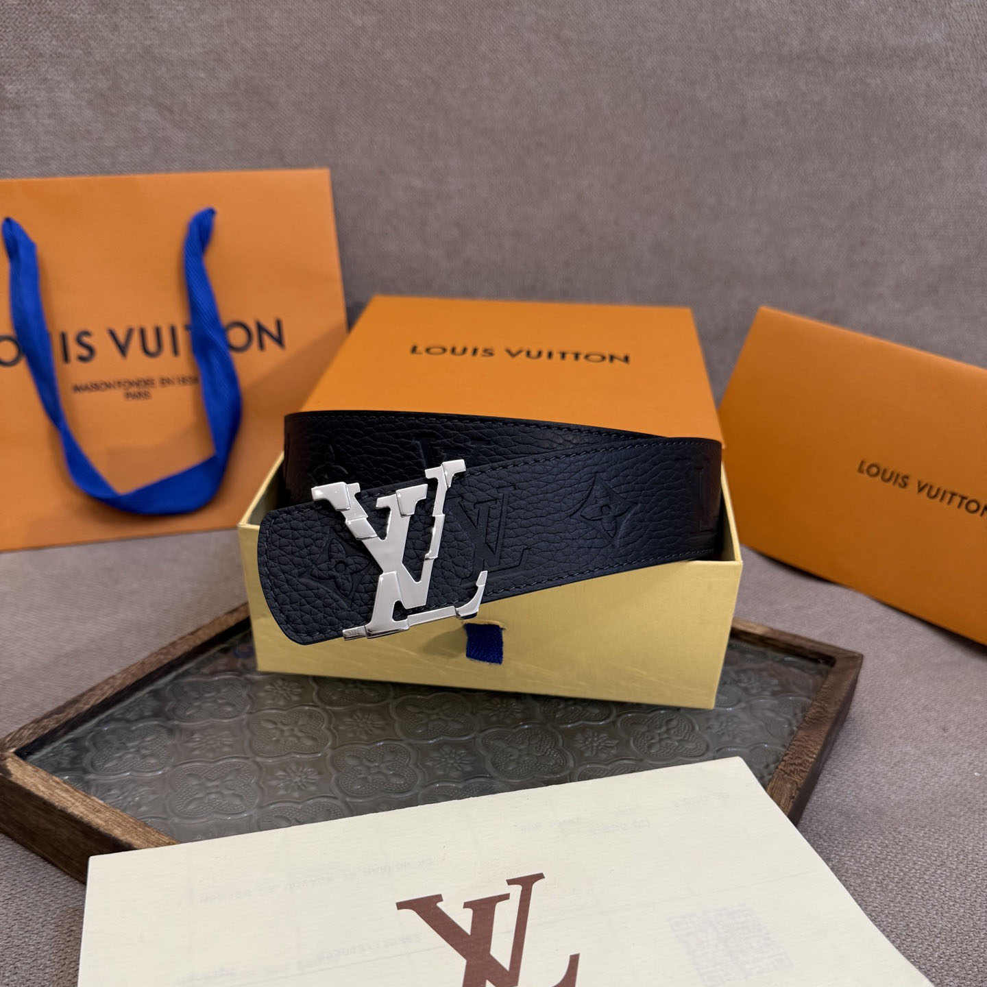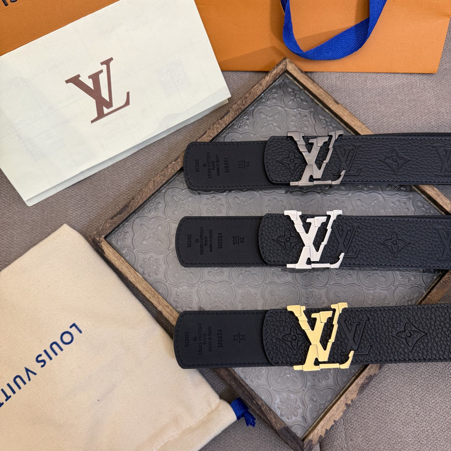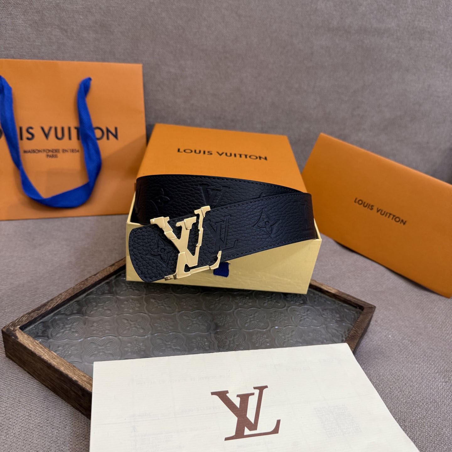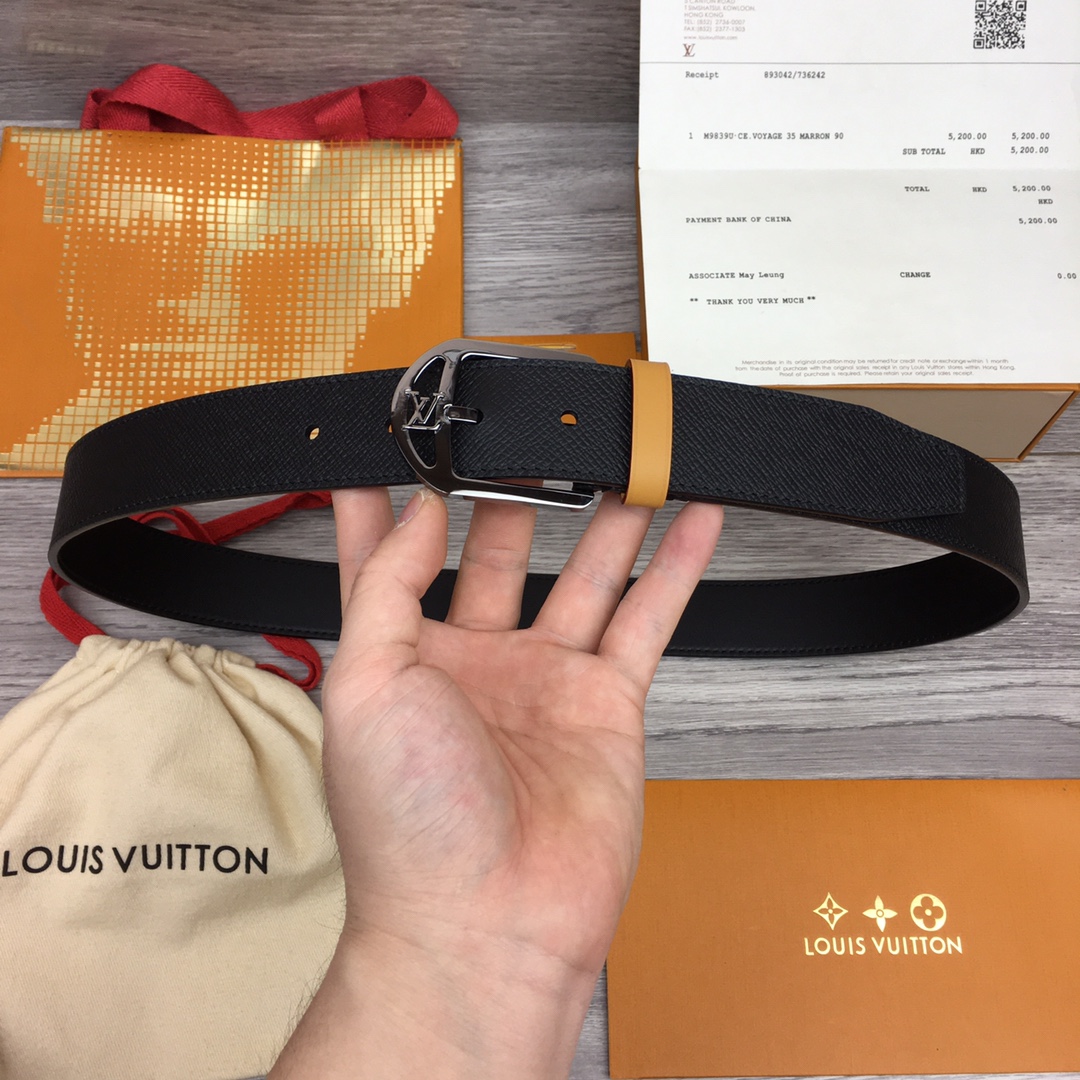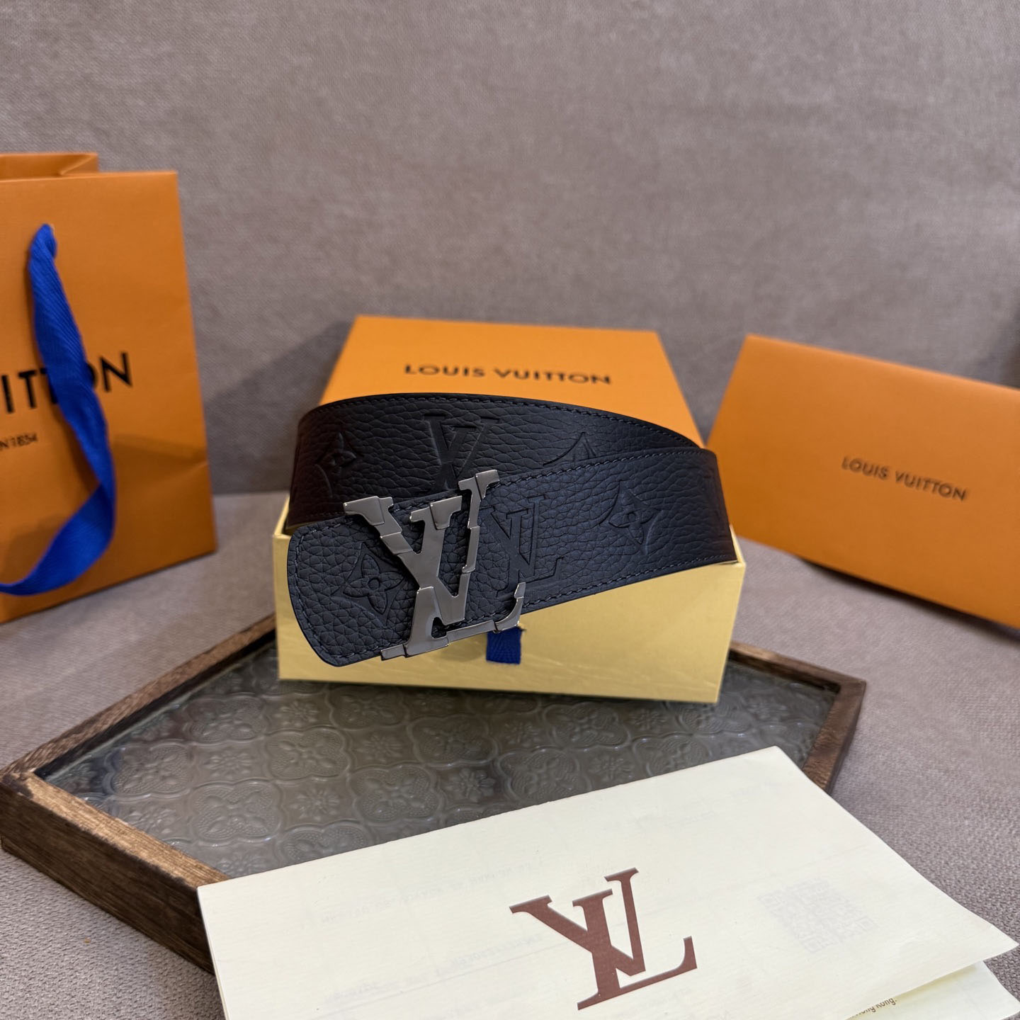 Louis Vuitton Men's Timeless Germain Belt In Black Calfskin With Gold/Silver/Gun Black Hardware 35mm