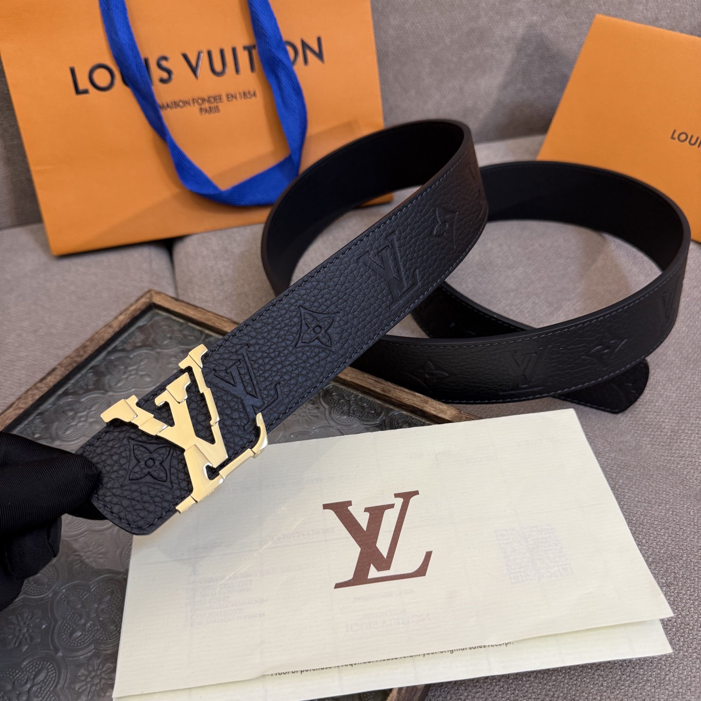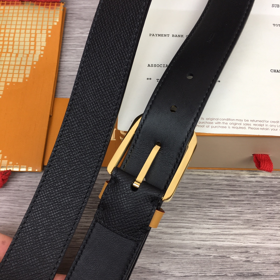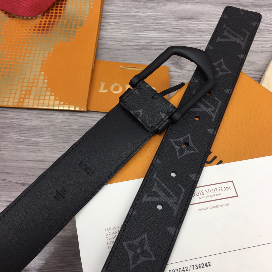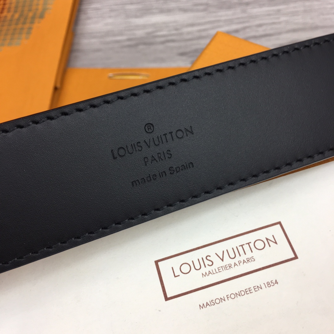 Louis Vuitton Men's Timeless Germain Belt In Black Calfskin With Gold/Silver/Gun Black Hardware 35mm