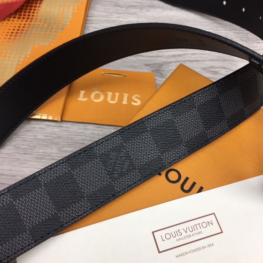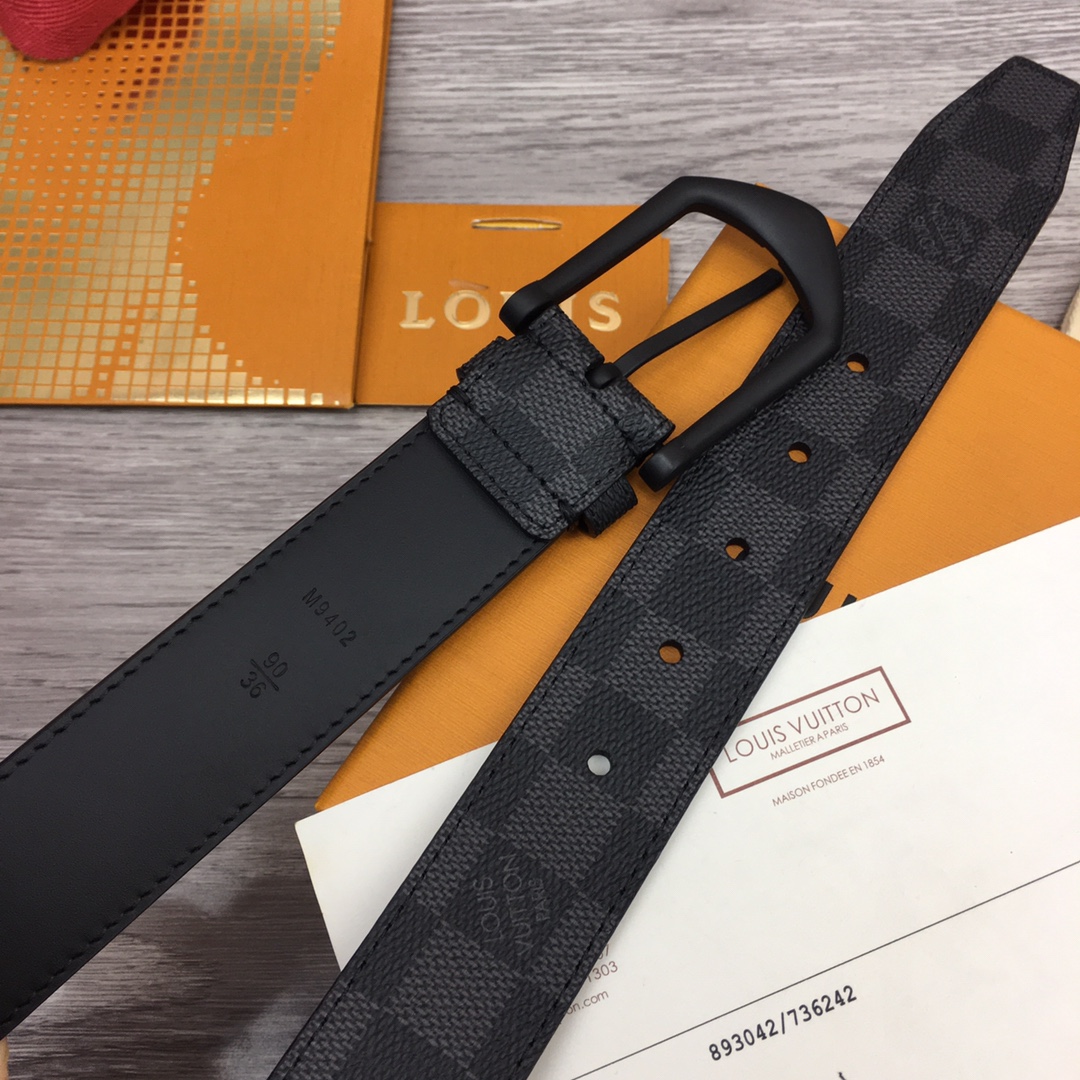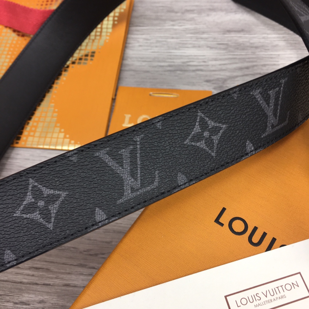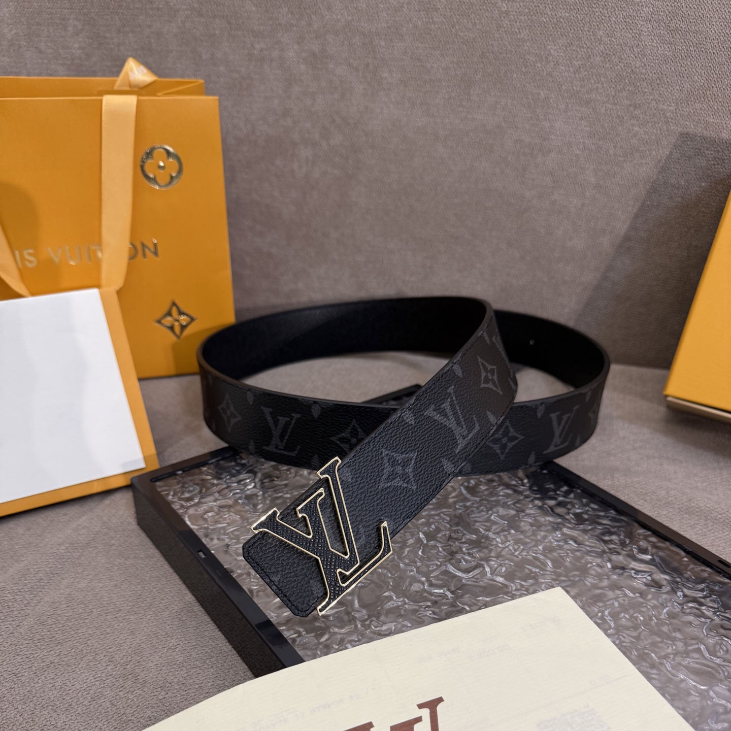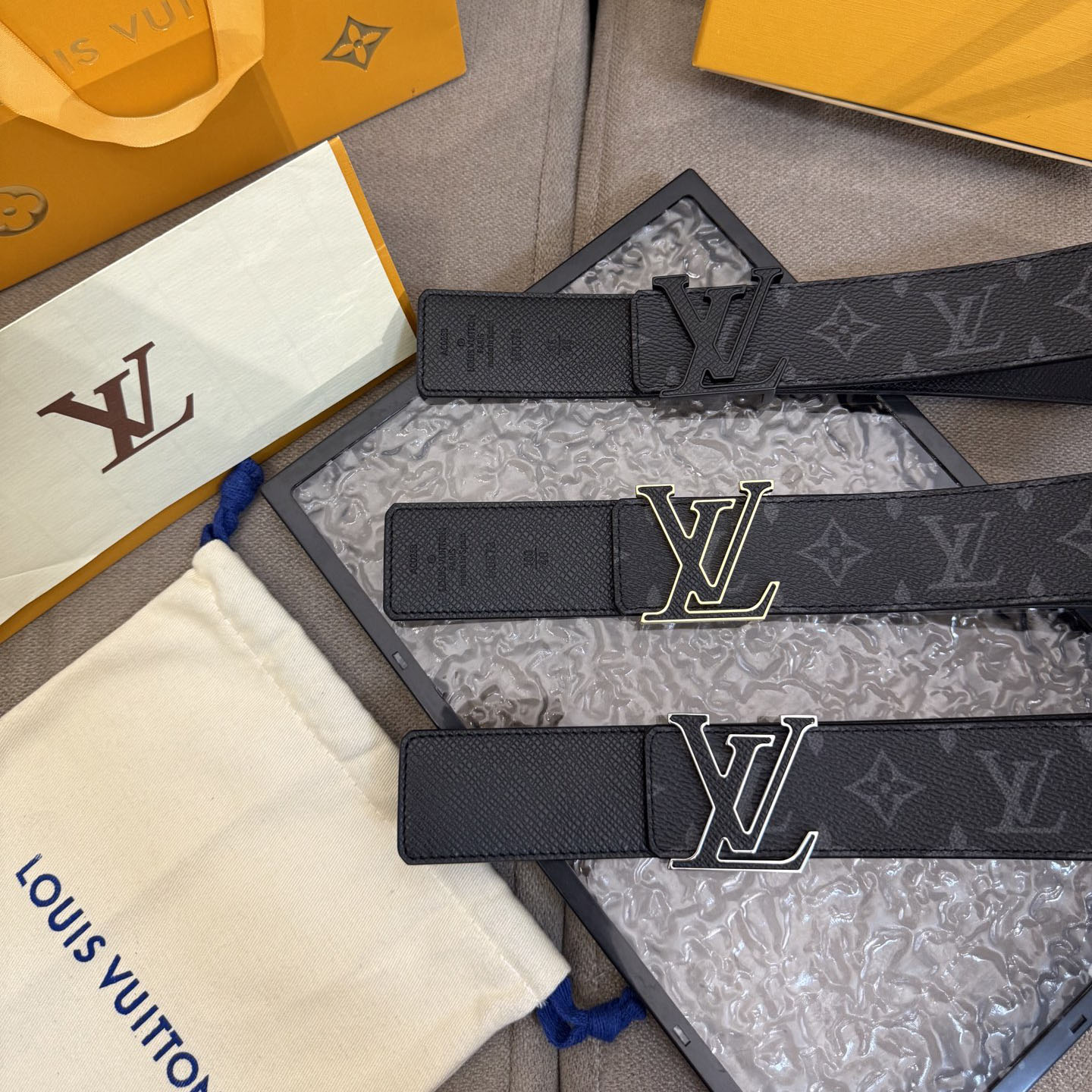 Louis Vuitton Men's Timeless Germain Belt In Black Calfskin With Gold/Silver/Gun Black Hardware 35mm