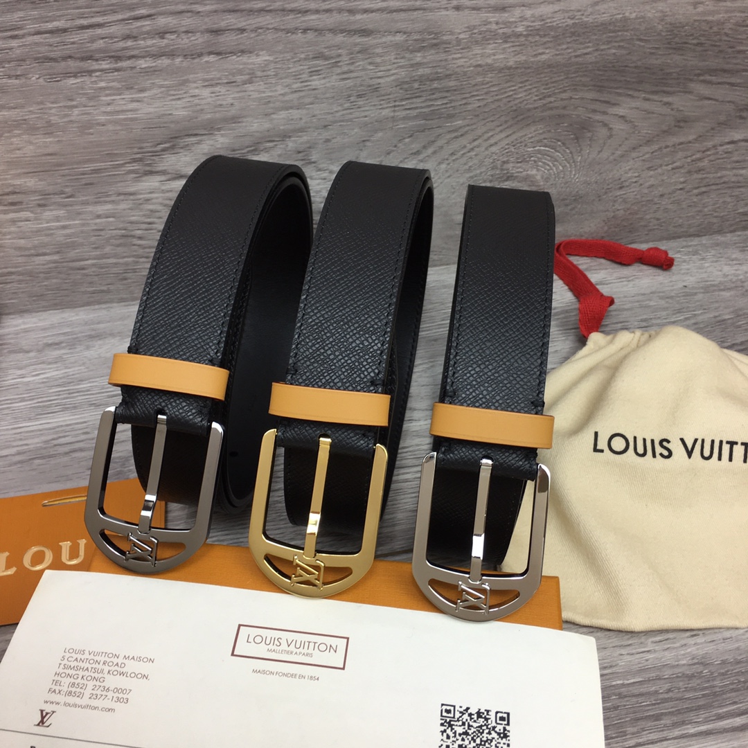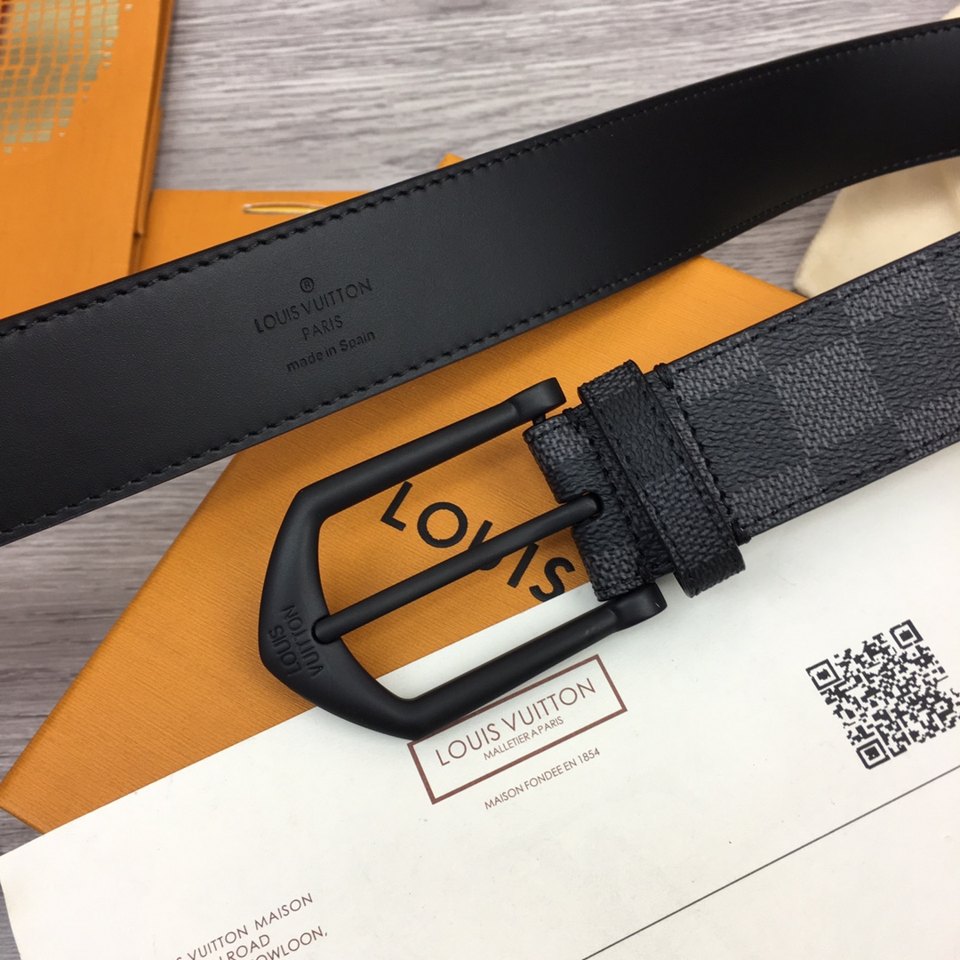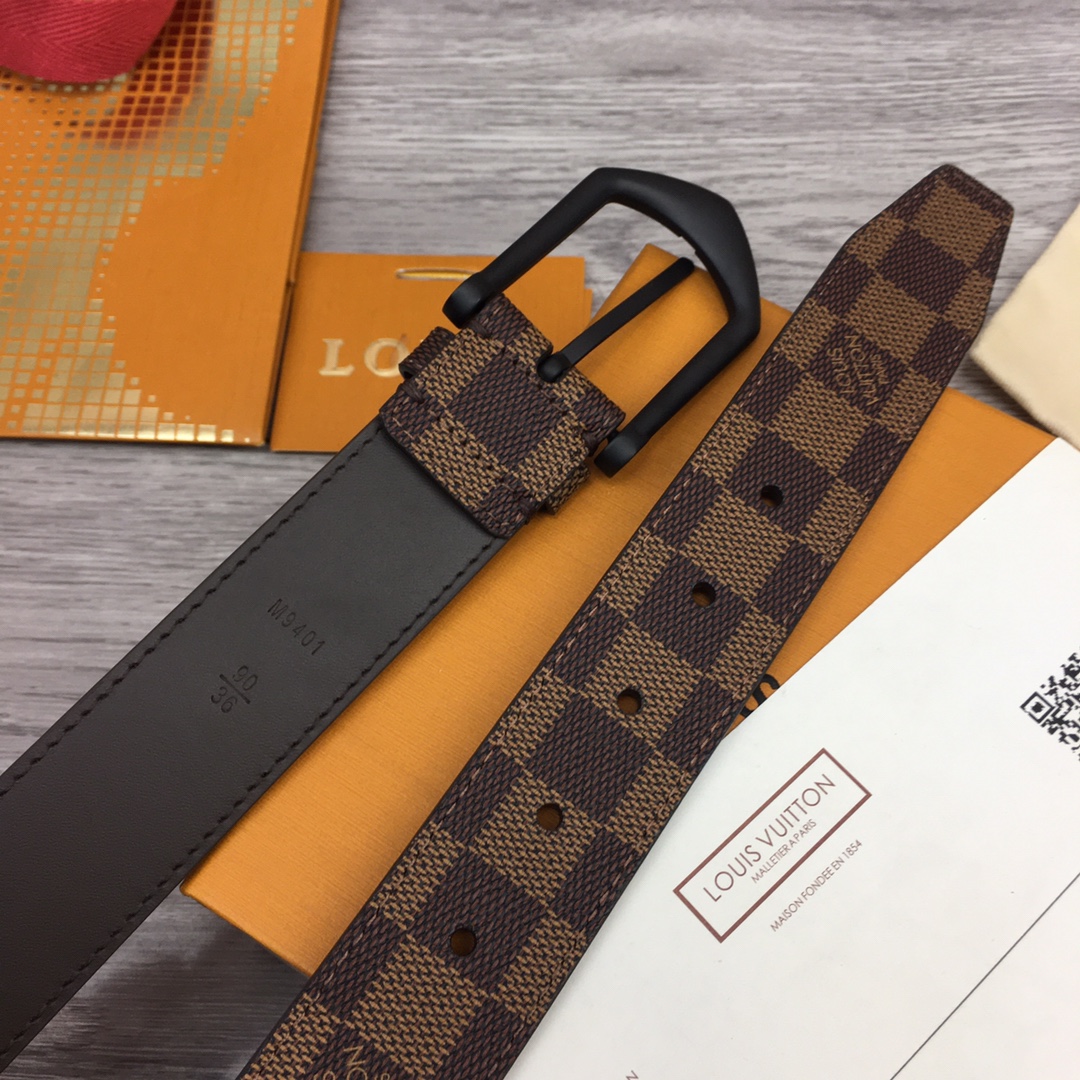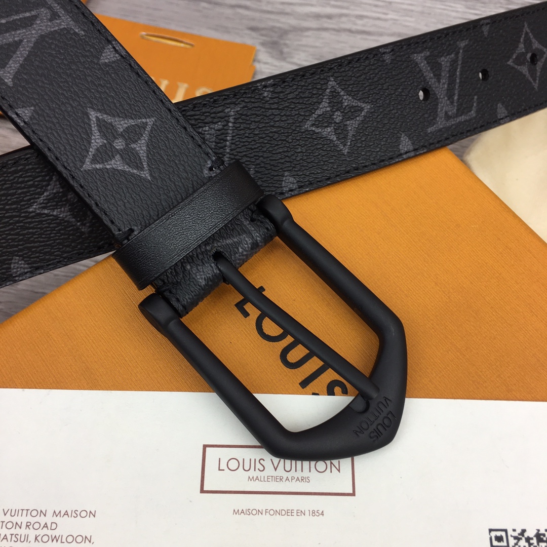 Louis Vuitton Men's Timeless Germain Belt In Black Calfskin With Gold/Silver/Gun Black Hardware 35mm