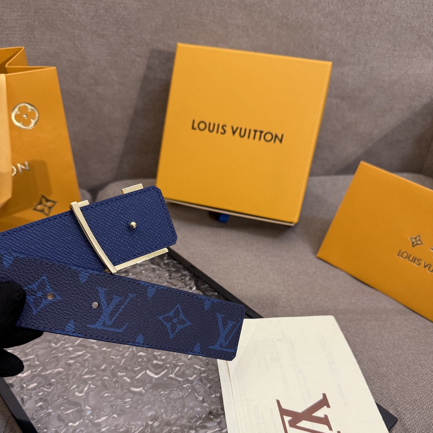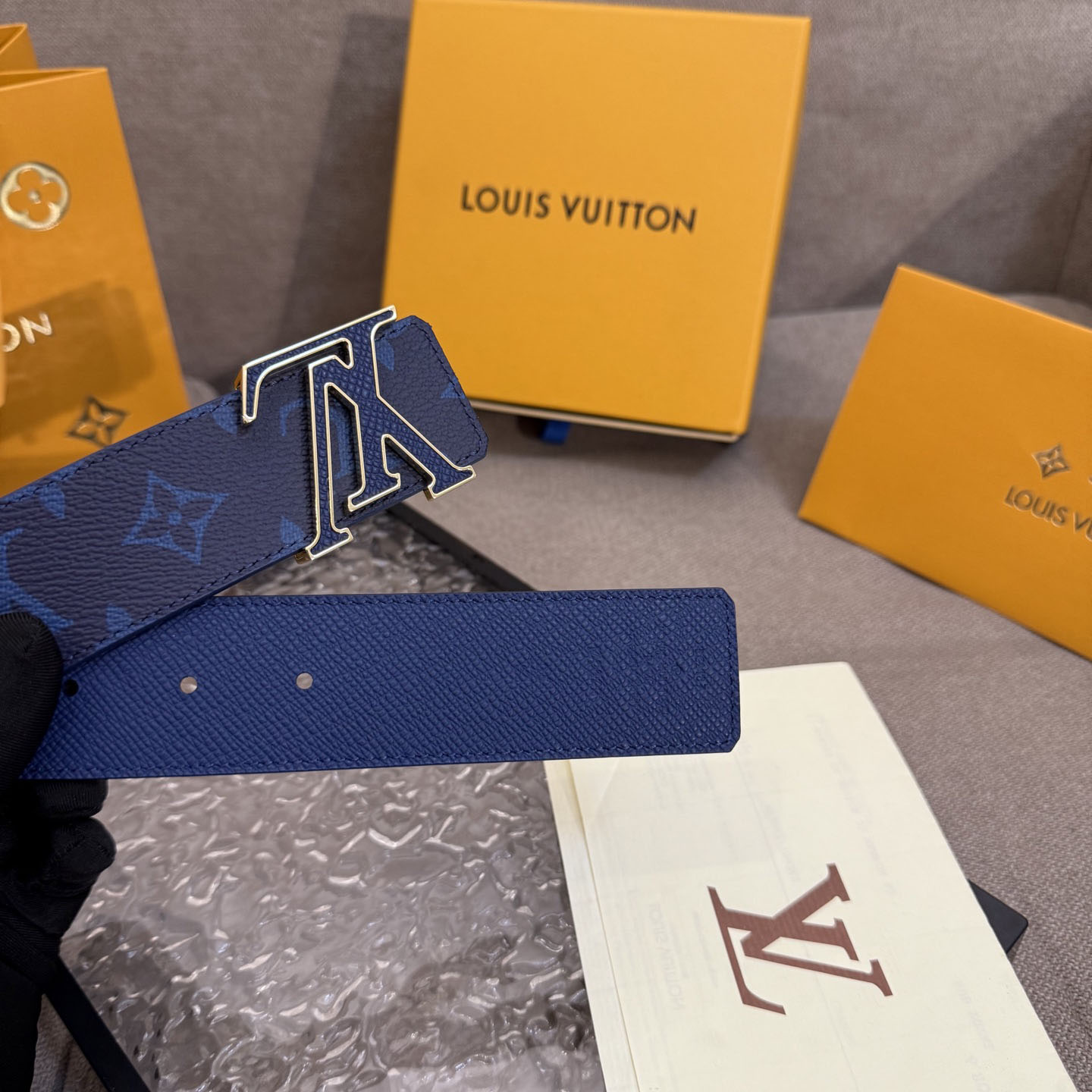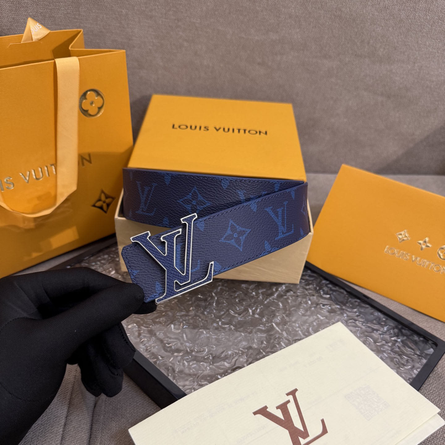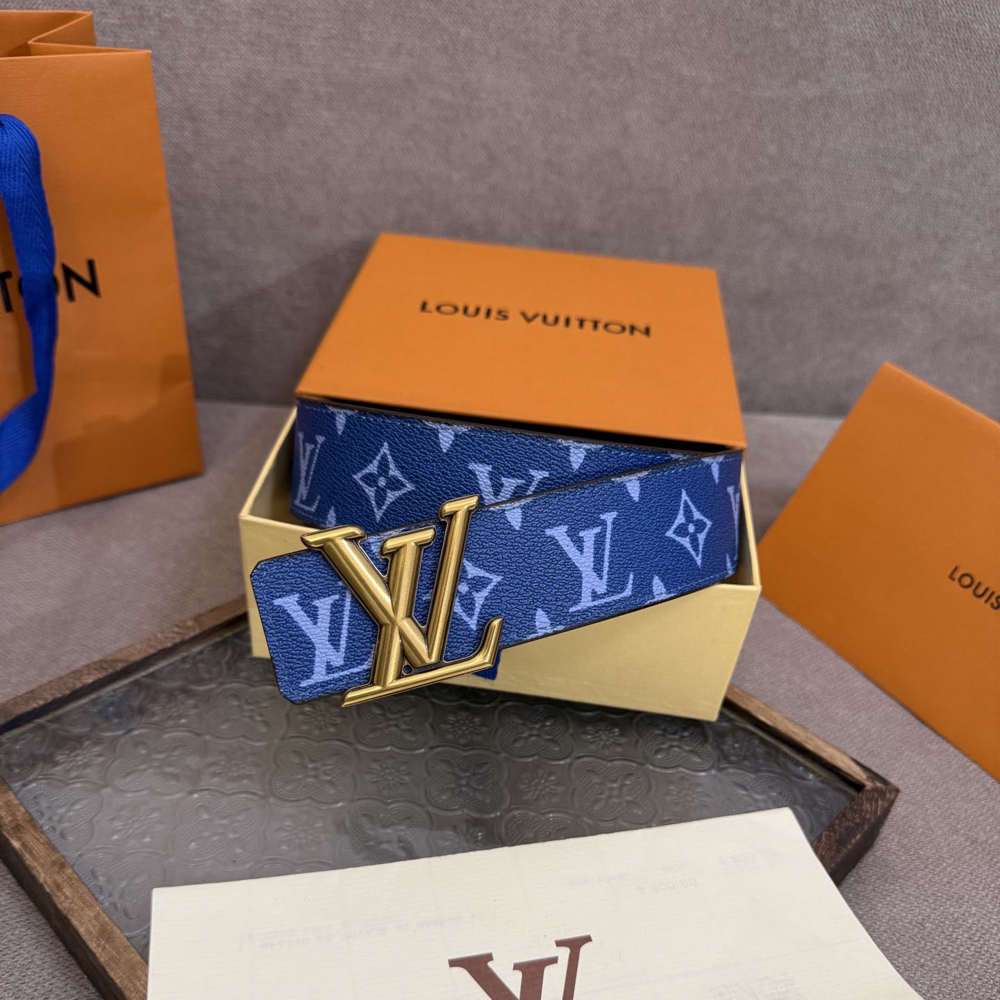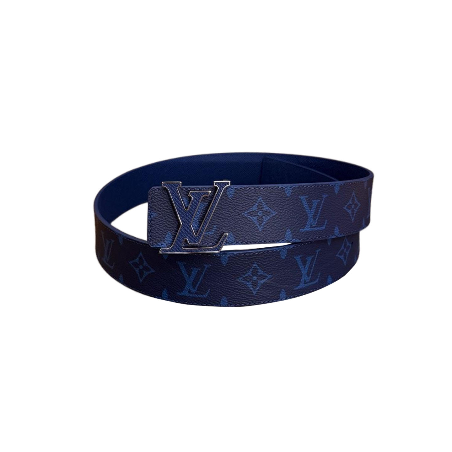 Louis Vuitton Men's LV Buckle Belt In Blue Monogram Canvas With Black/Gold/Silver Hardware 40mm