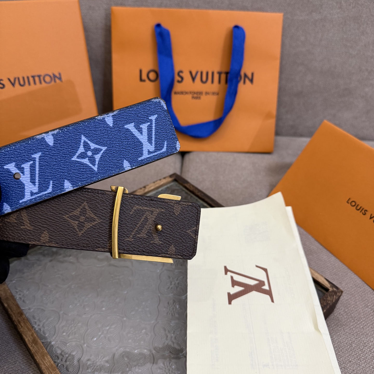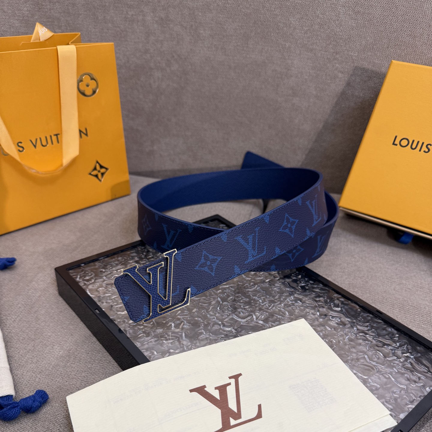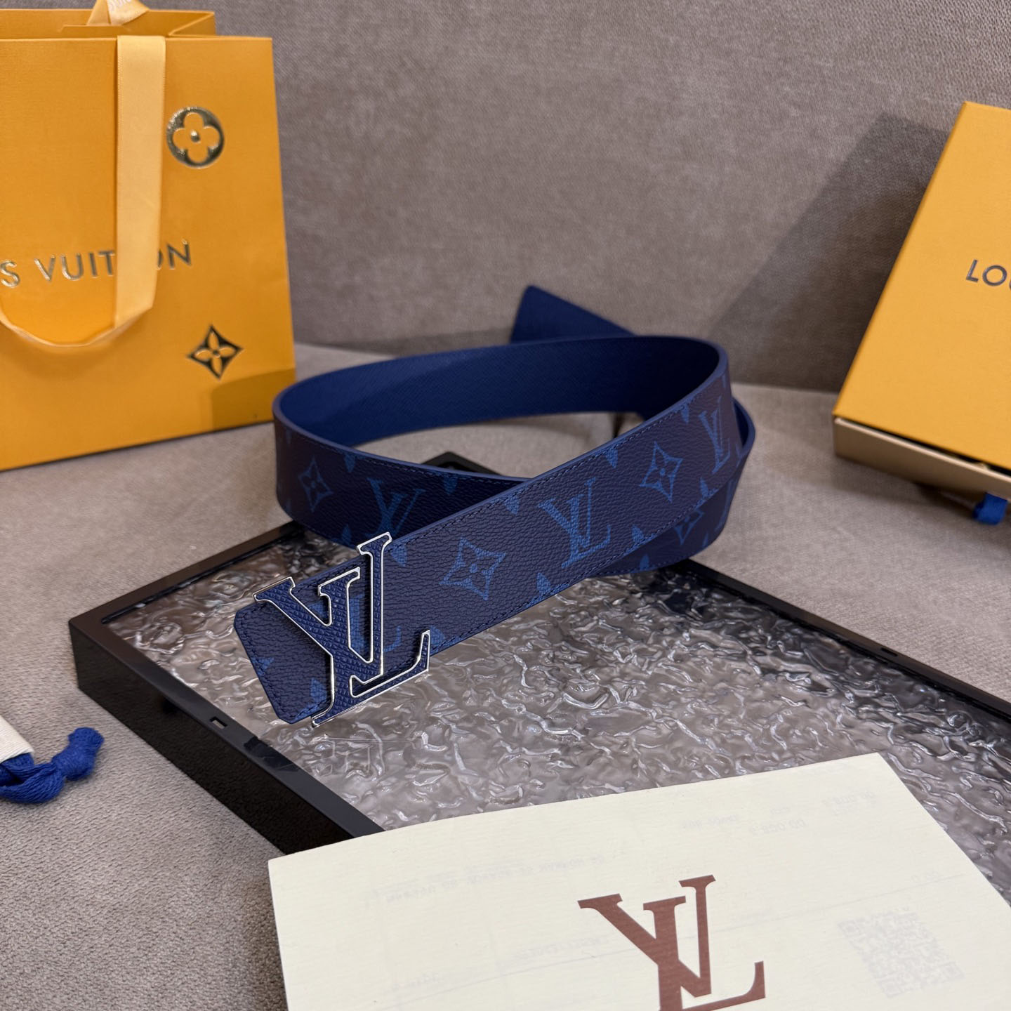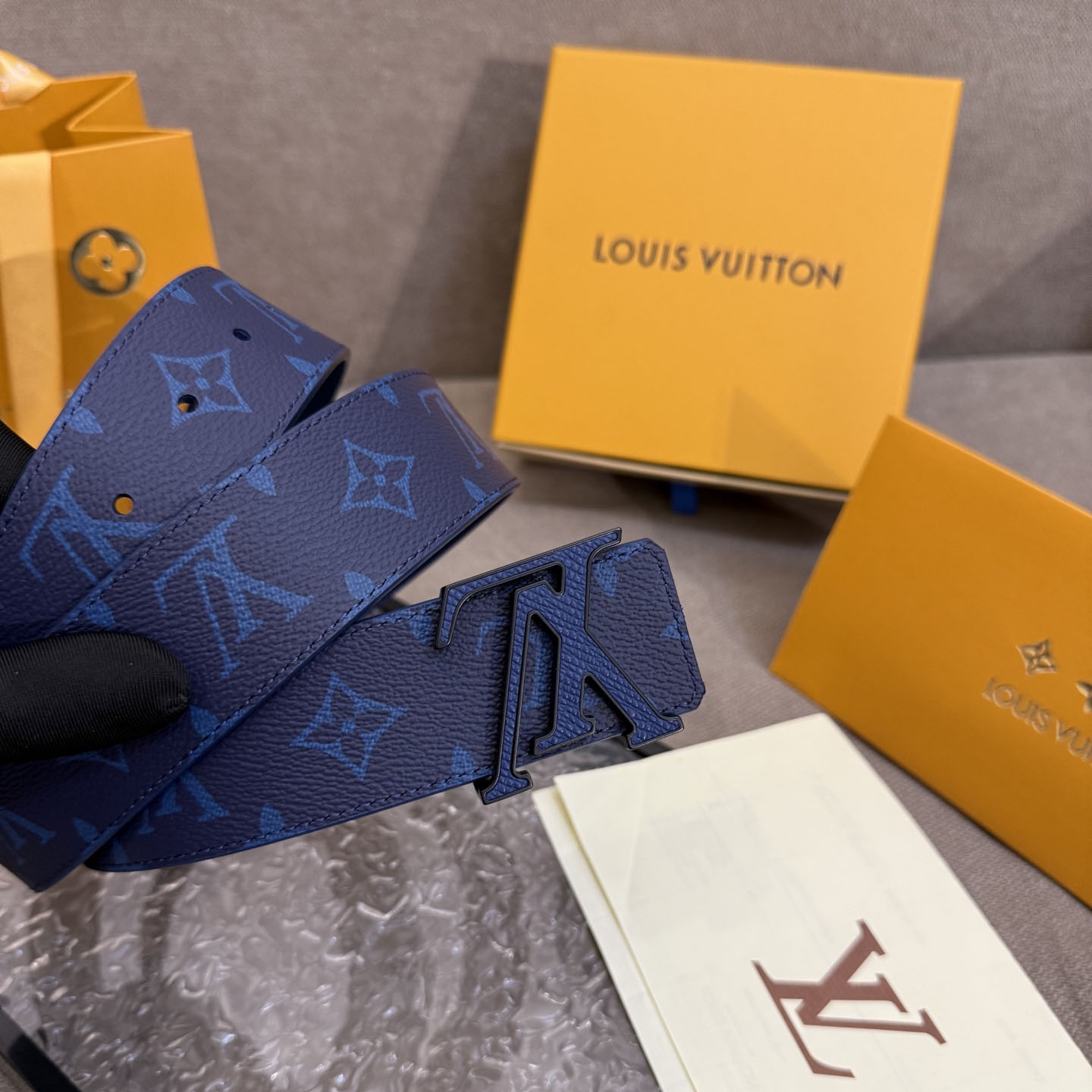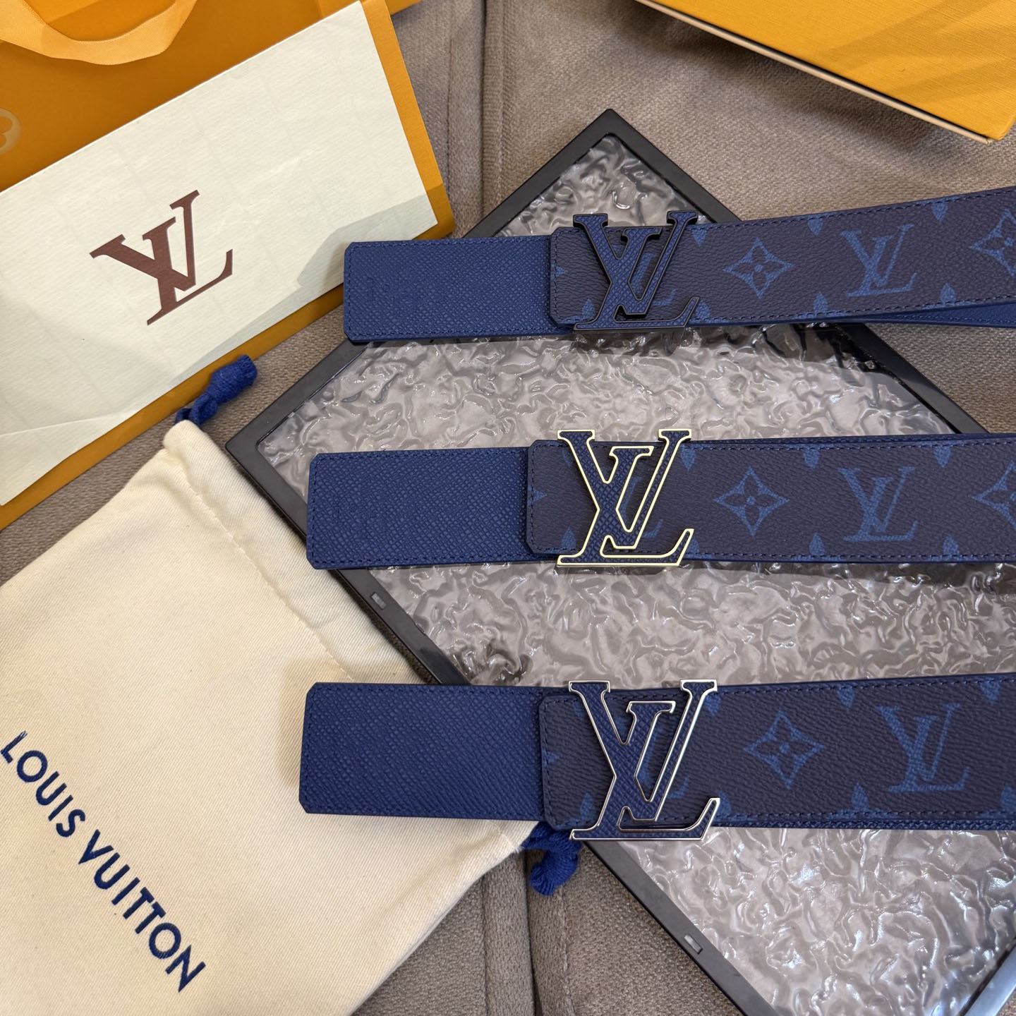 Louis Vuitton Men's LV Buckle Belt In Blue Monogram Canvas With Black/Gold/Silver Hardware 40mm