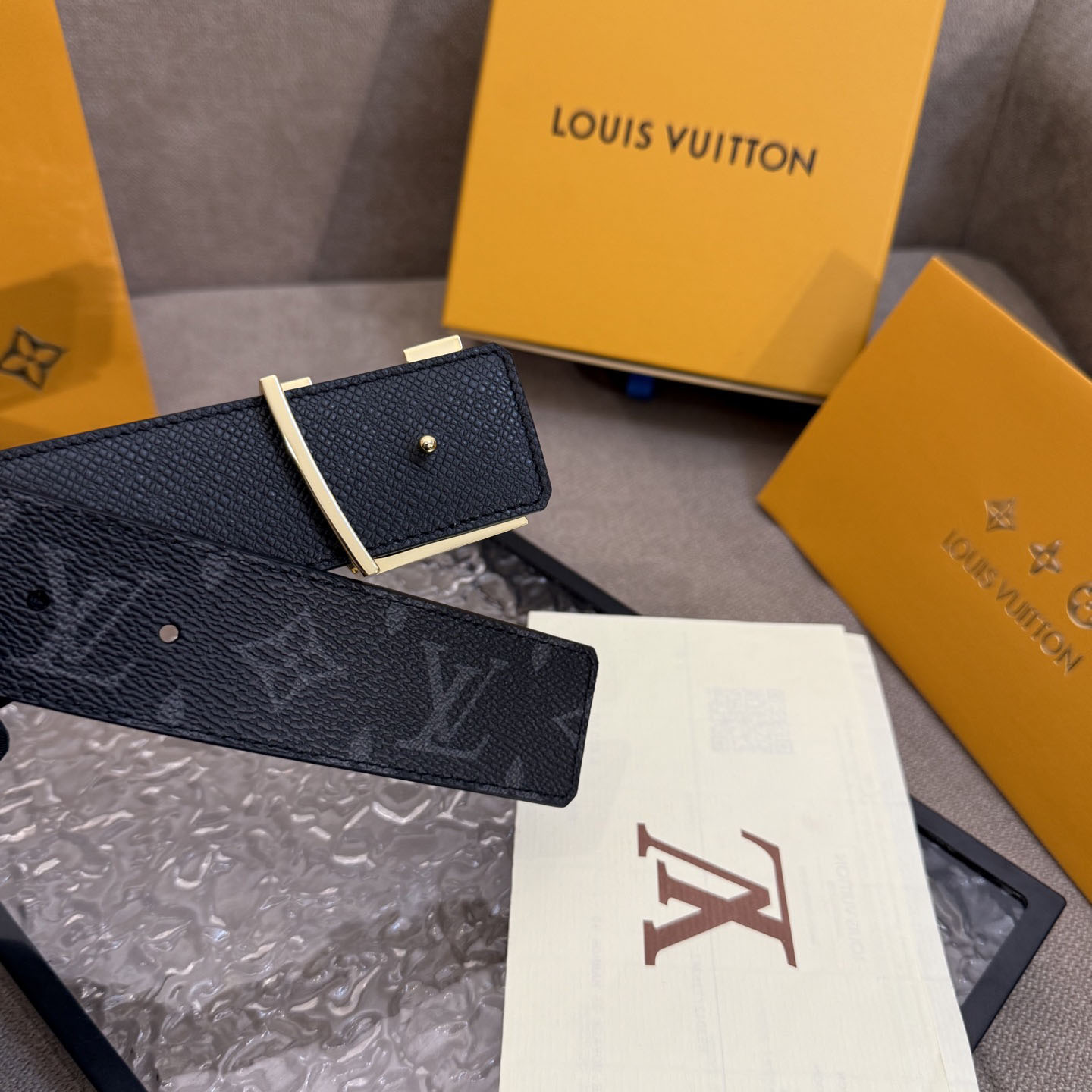 Louis Vuitton Men's Shield Reversible Belt In Black Monorgam Calfskin With Gold/Silver/Gun Black Hardware 40mm