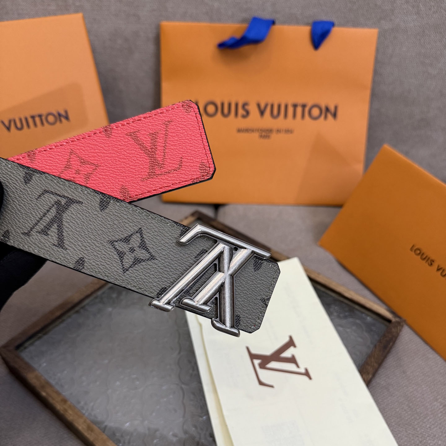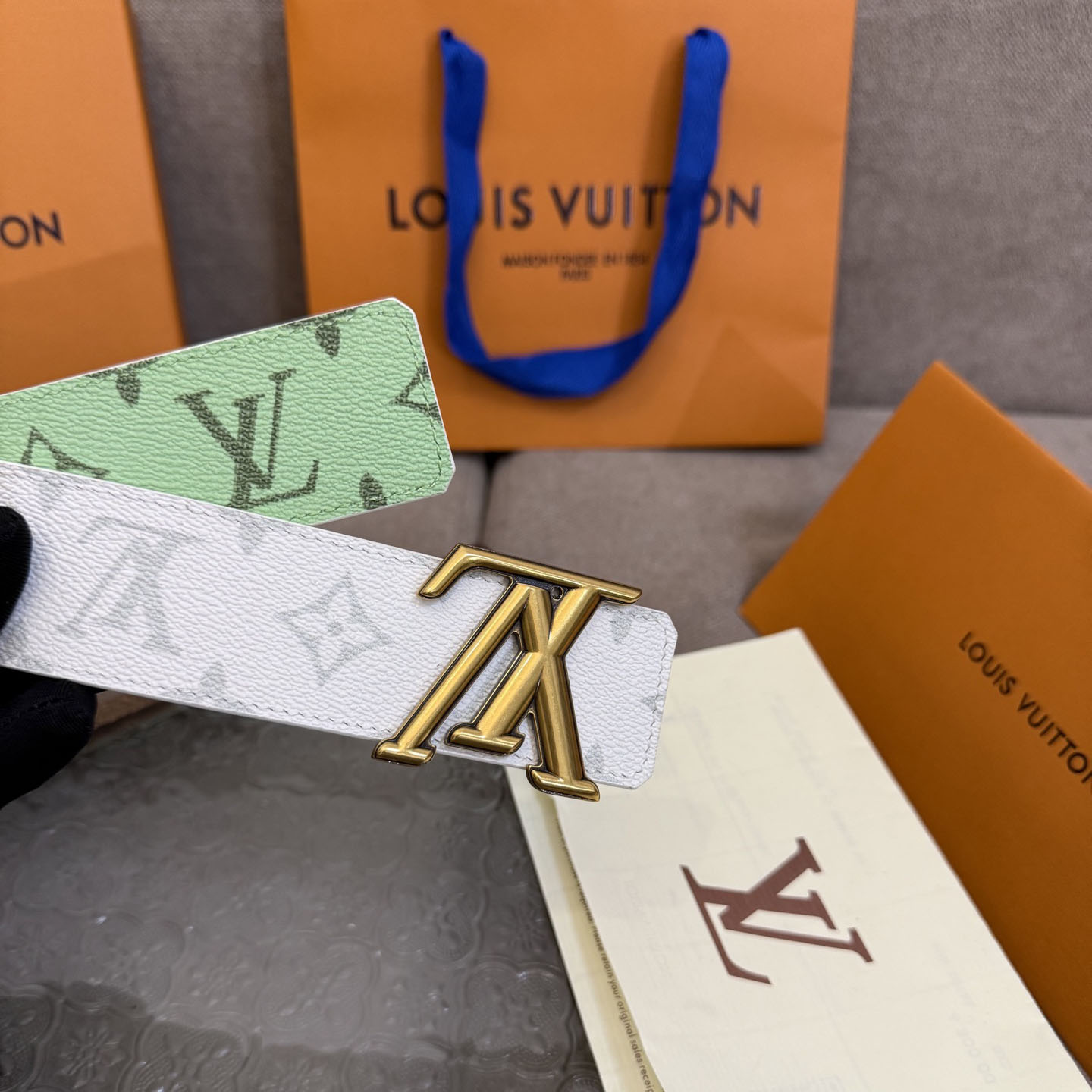 Louis Vuitton Men's Line Reversible Belt In Grey/Pink/Black/Blue/White/Green Monogram Canvas With Gold/Silver Hardware 40mm