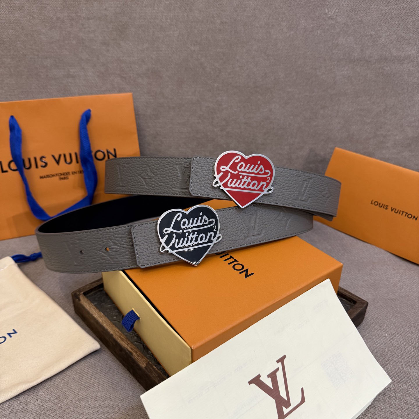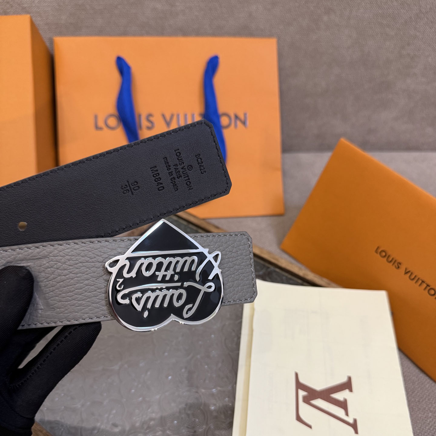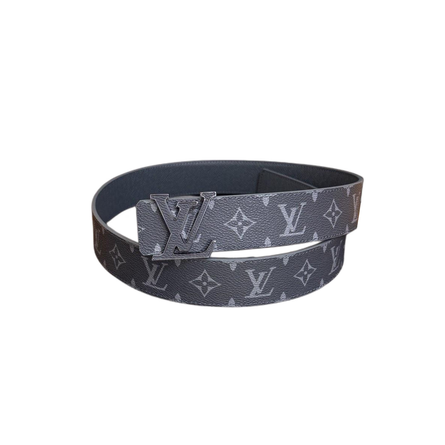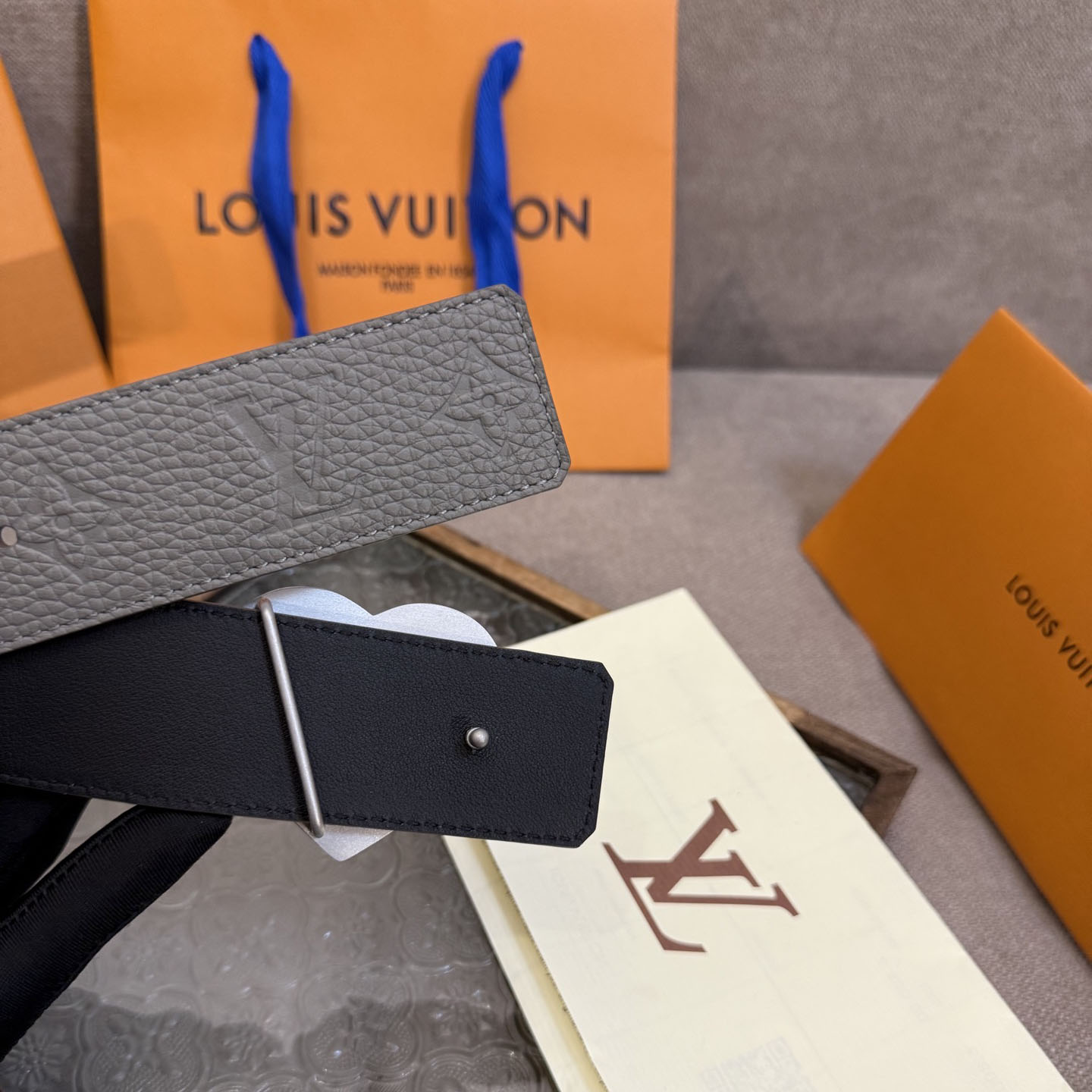Louis Vuitton Men's Shield LV Heart Buckle Reversible Belt In Grey/Black Calfskin With Silver Hardware 40mm