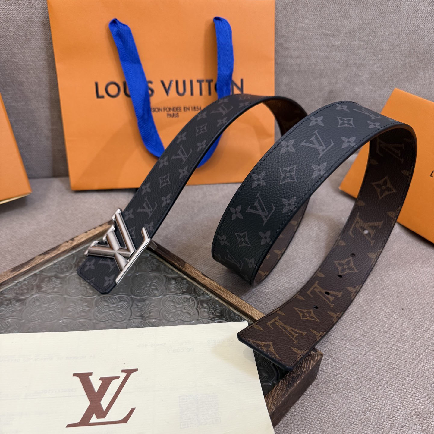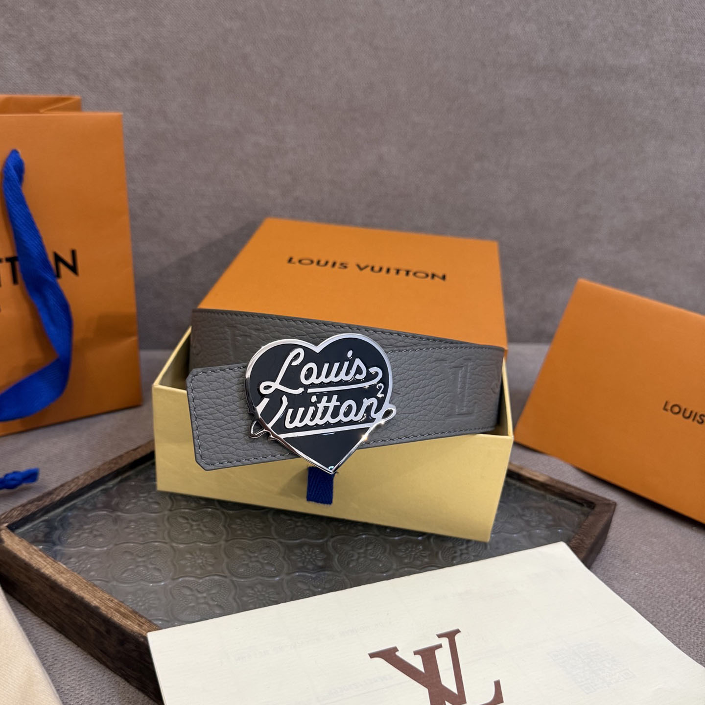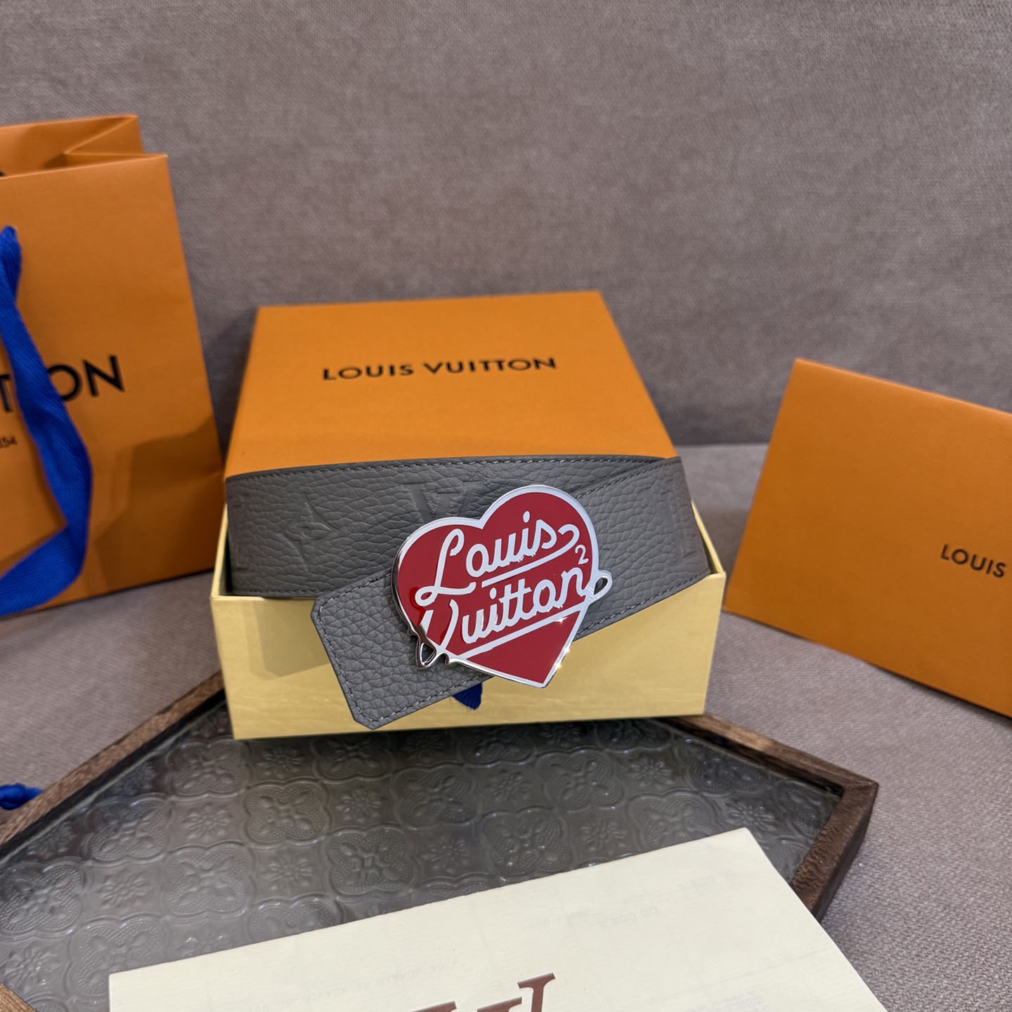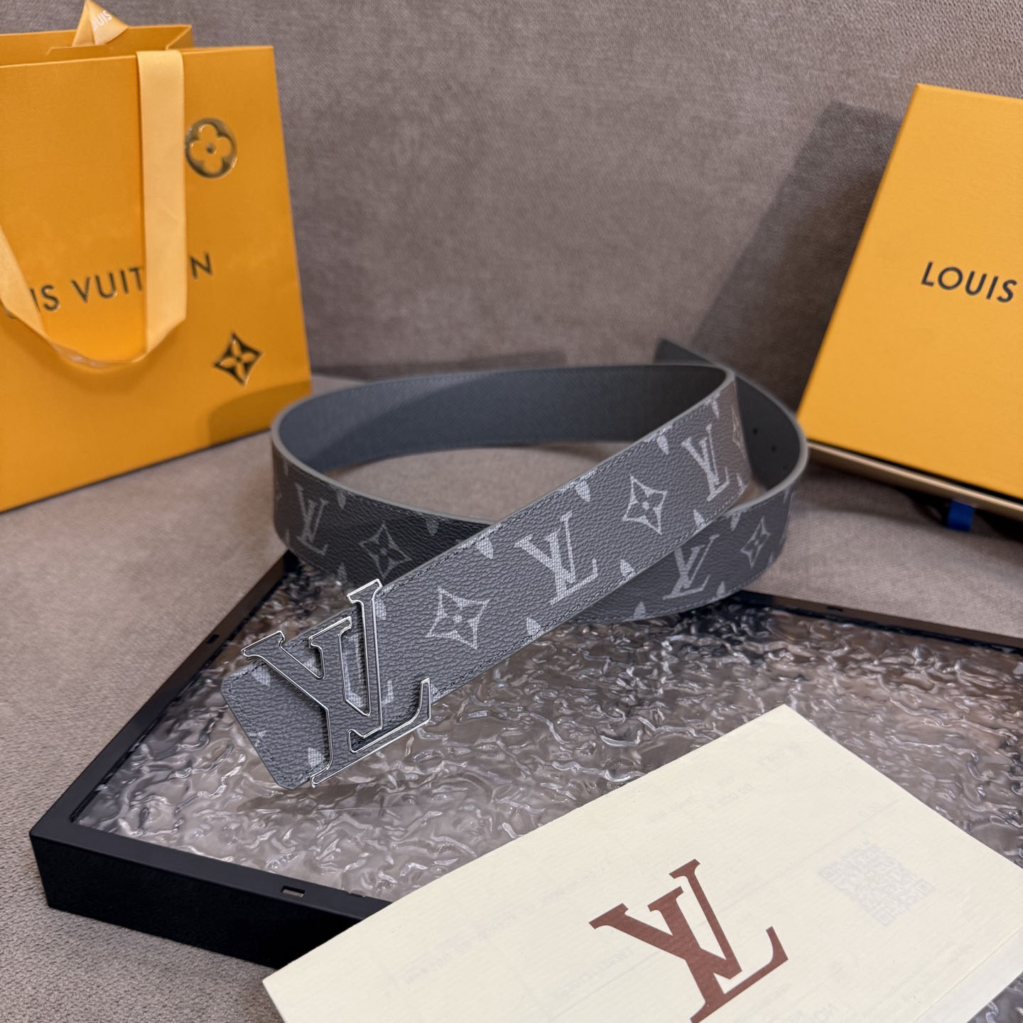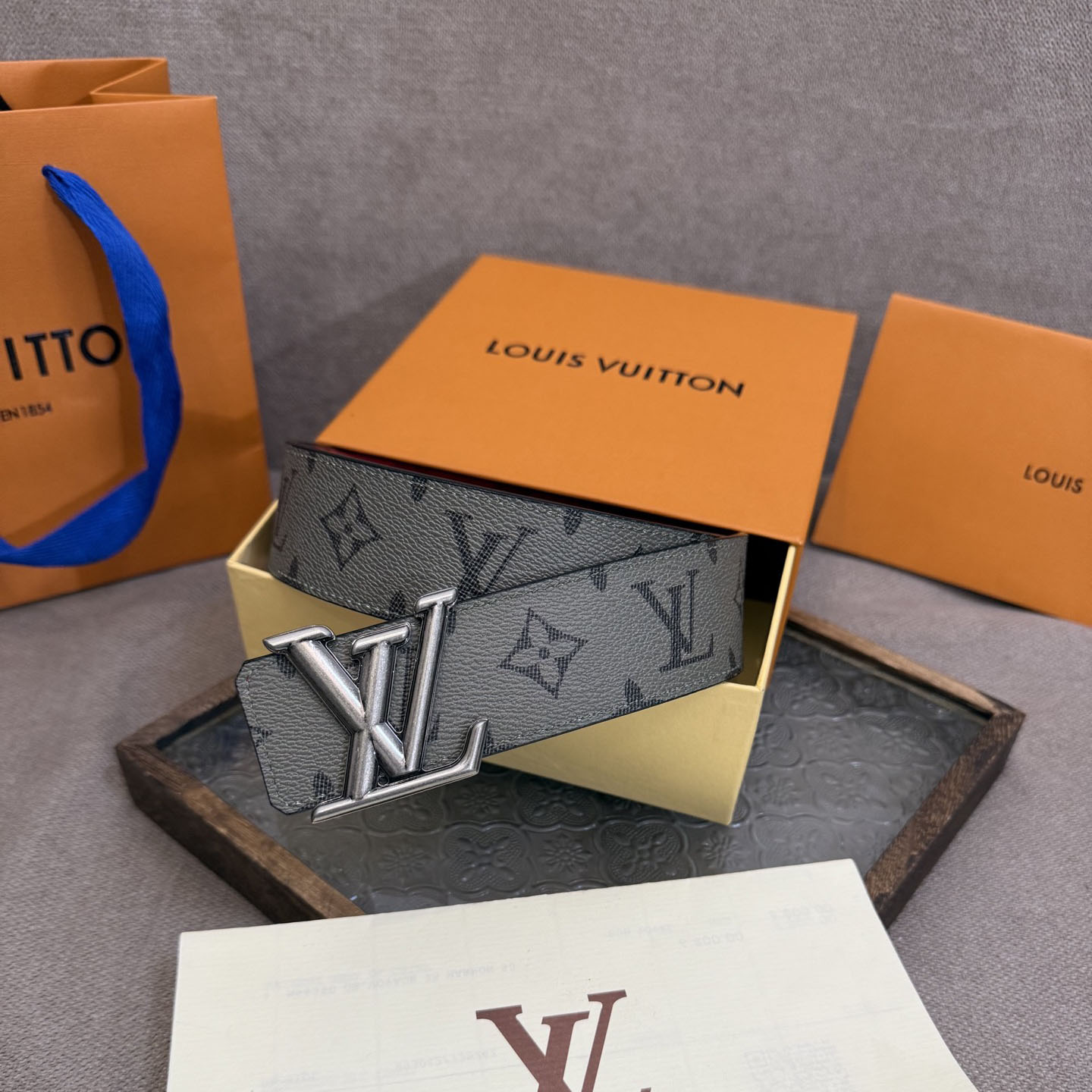 Louis Vuitton Men's Shield LV Heart Buckle Reversible Belt In Grey/Black Calfskin With Silver Hardware 40mm