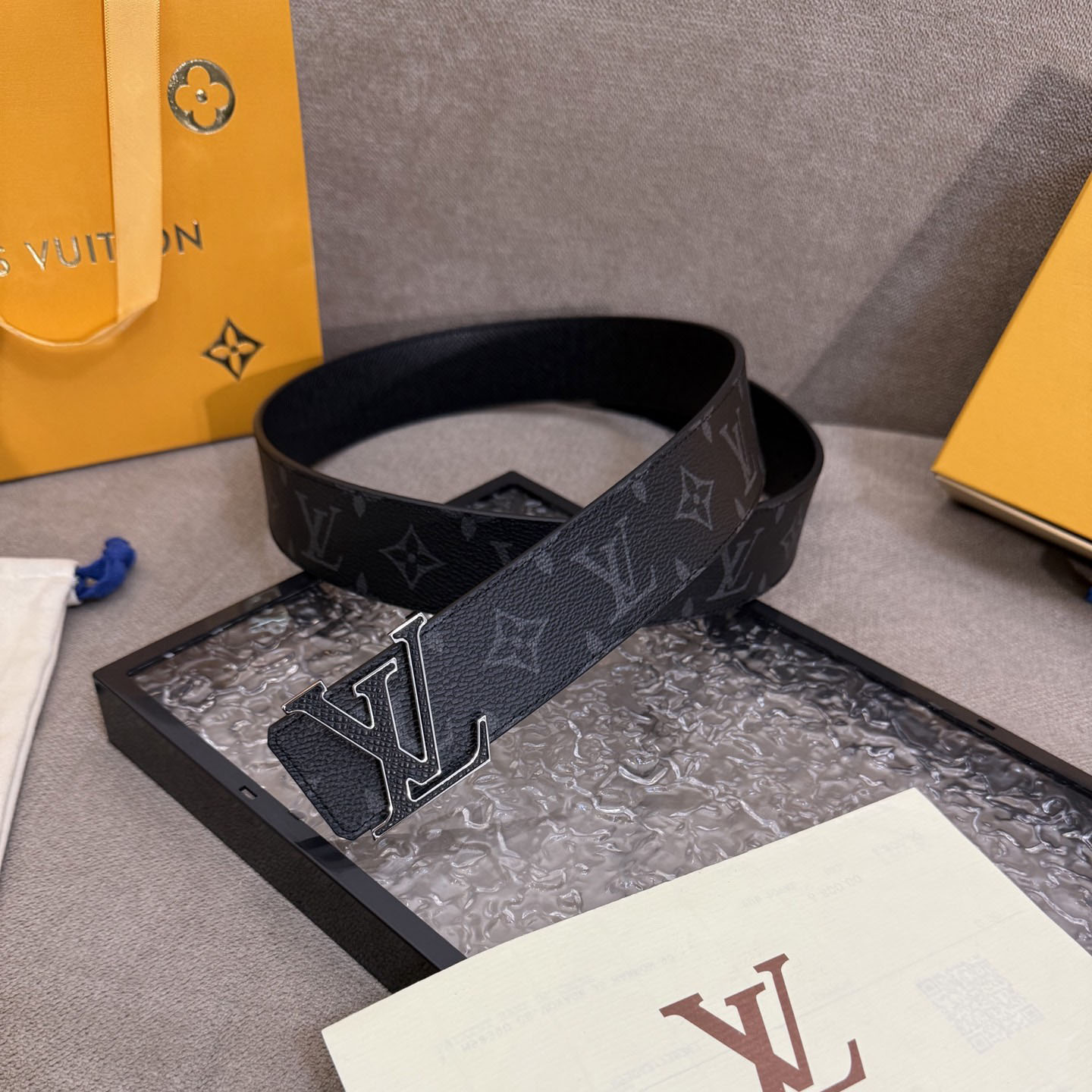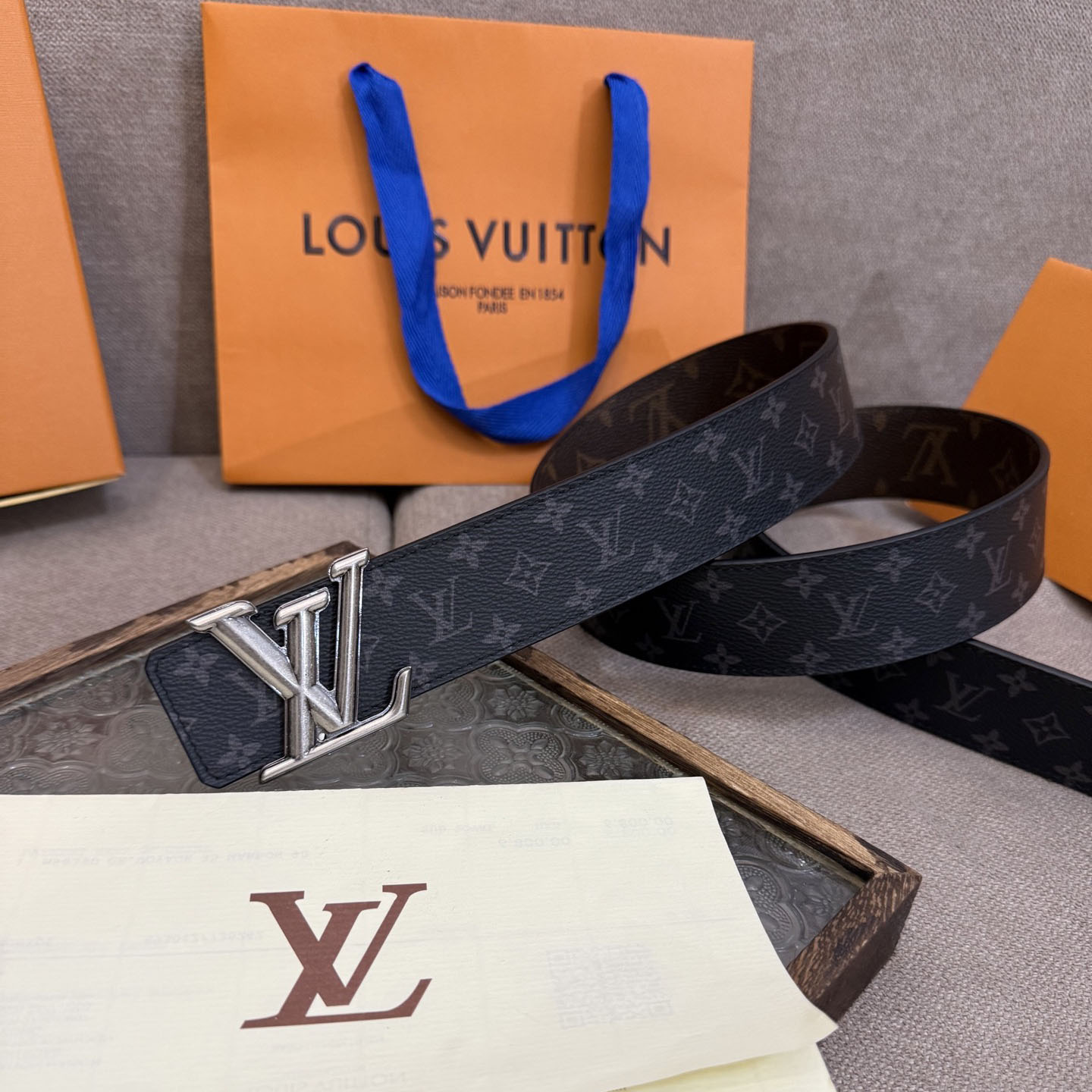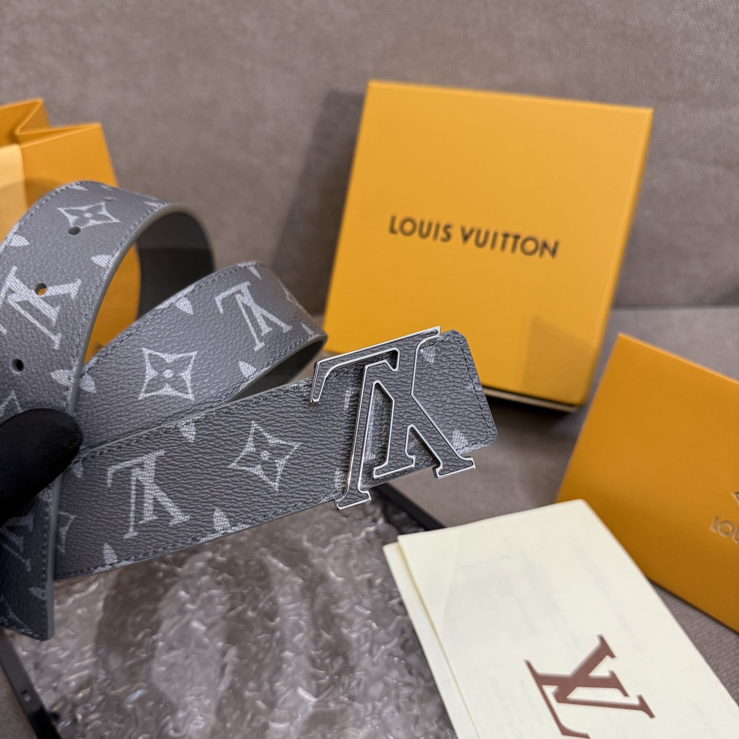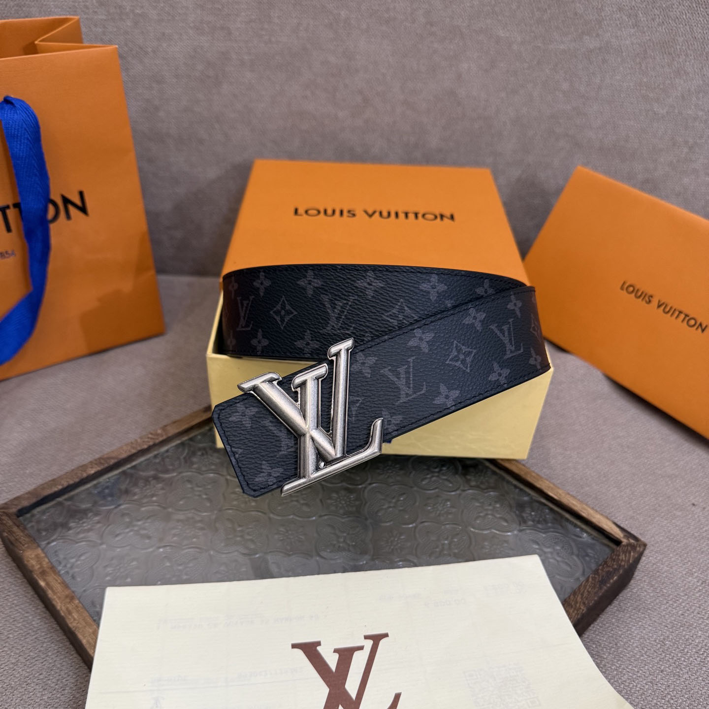 Louis Vuitton Men's LV Buckle Belt In Grey Monogram Canvas With Black/Silver Hardware 40mm