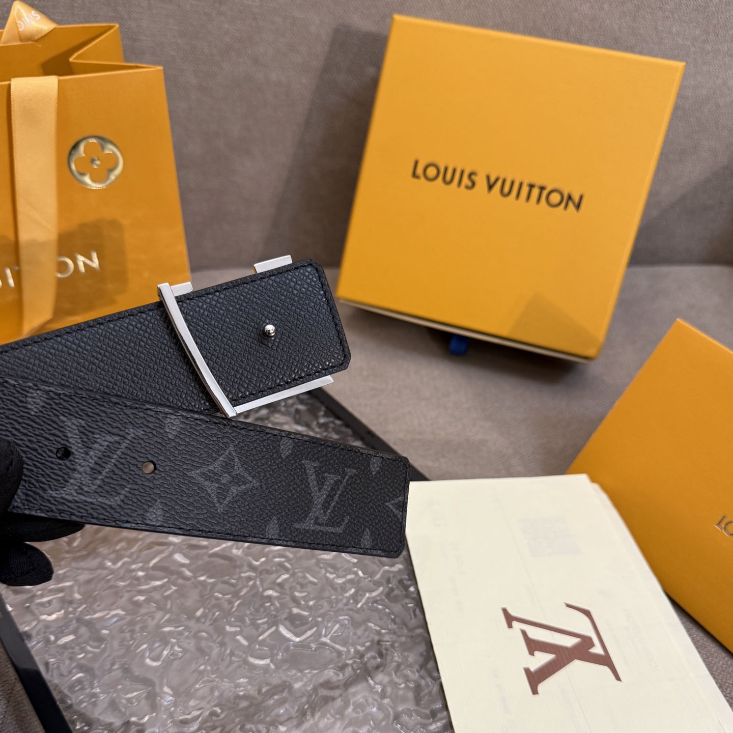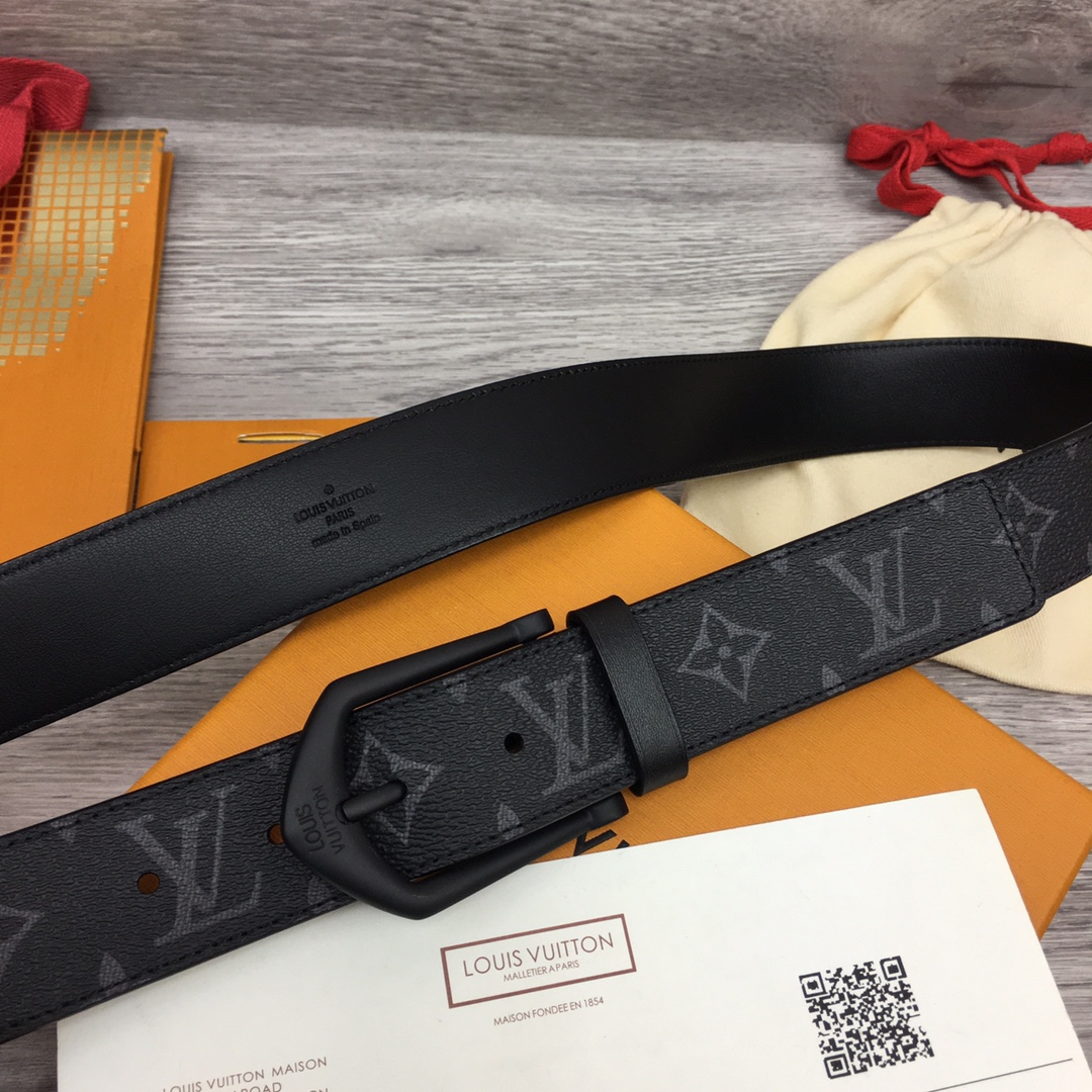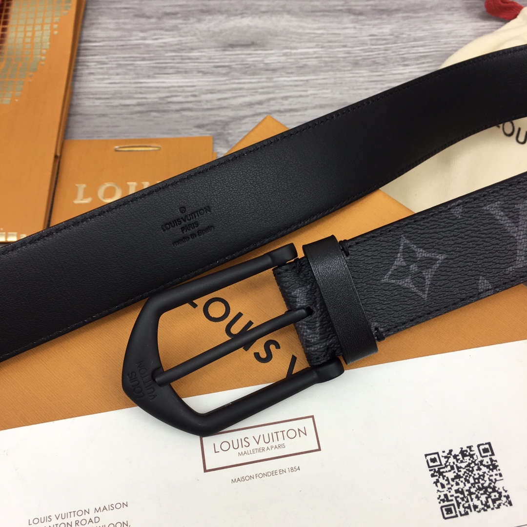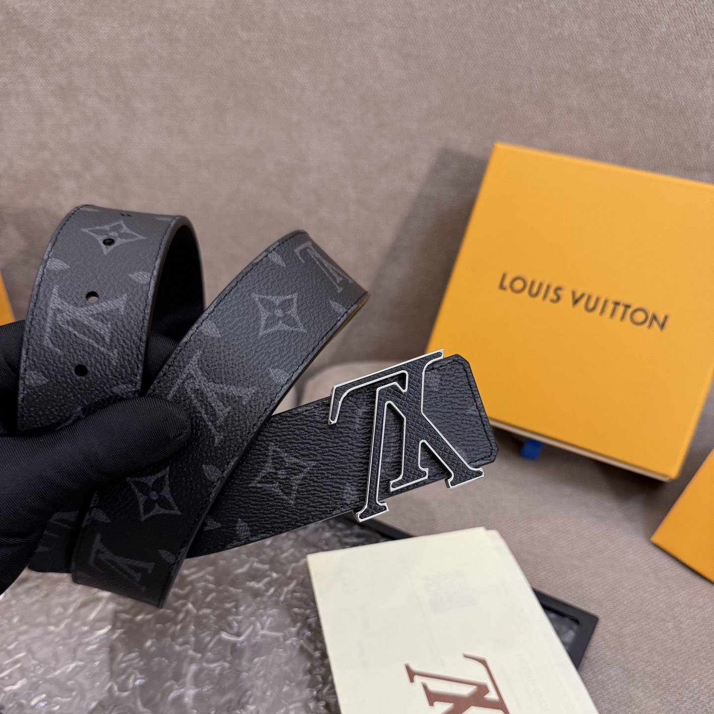 Louis Vuitton Men's LV Buckle Belt In Grey Monogram Canvas With Black/Silver Hardware 40mm