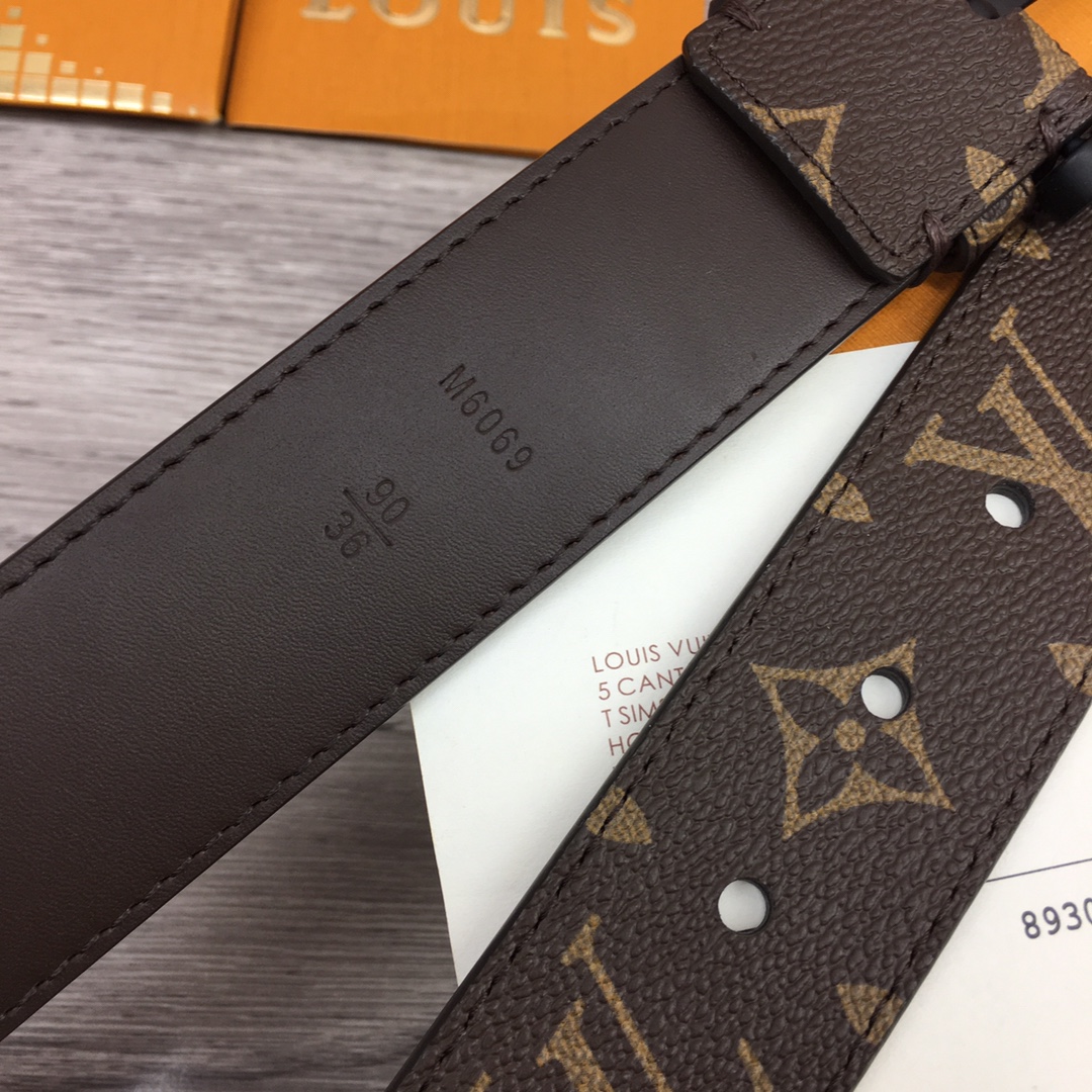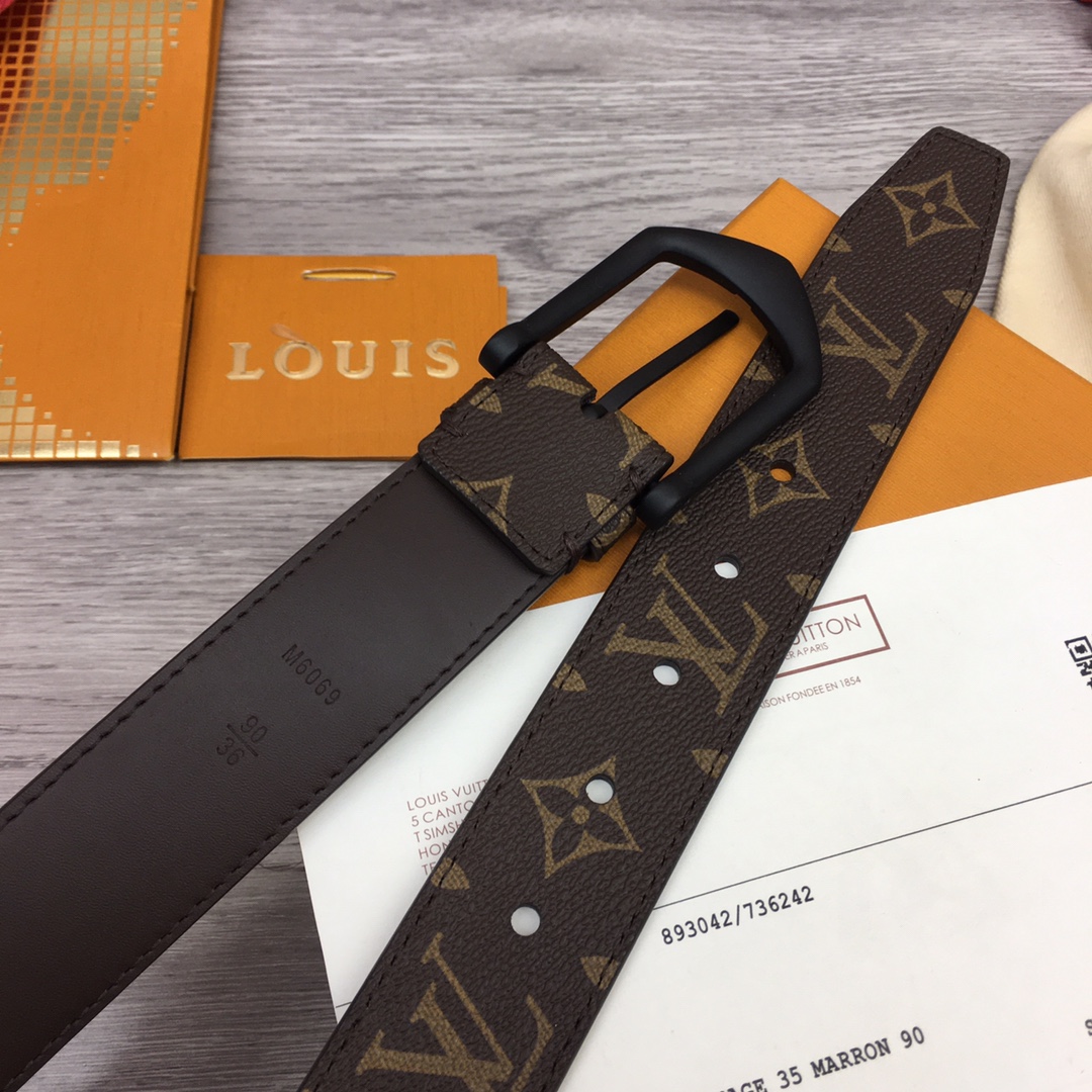Louis Vuitton Men's Timeless Reversible Belt In Brown/Black Monogram And Damier Canvas With Black Hardware 35mm
