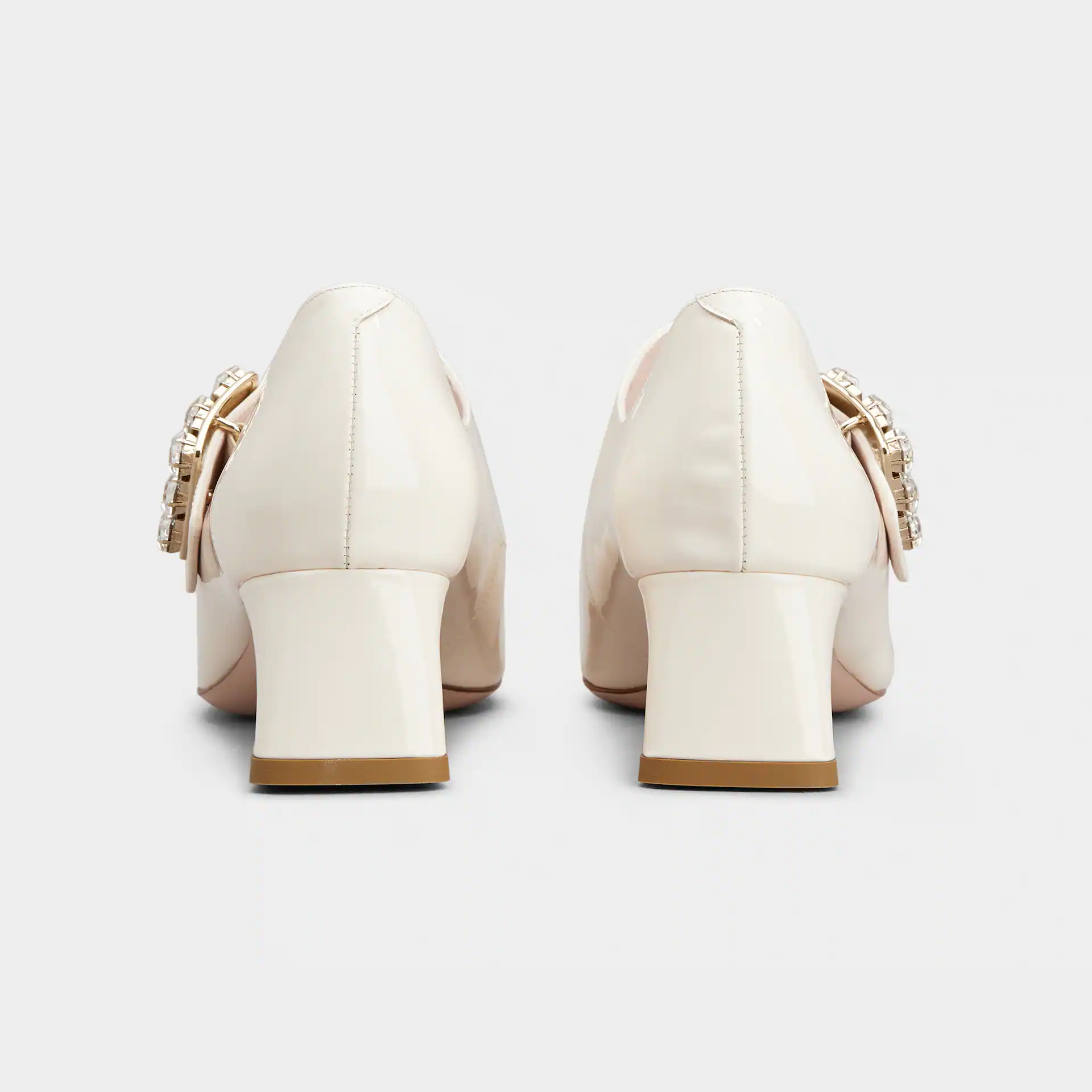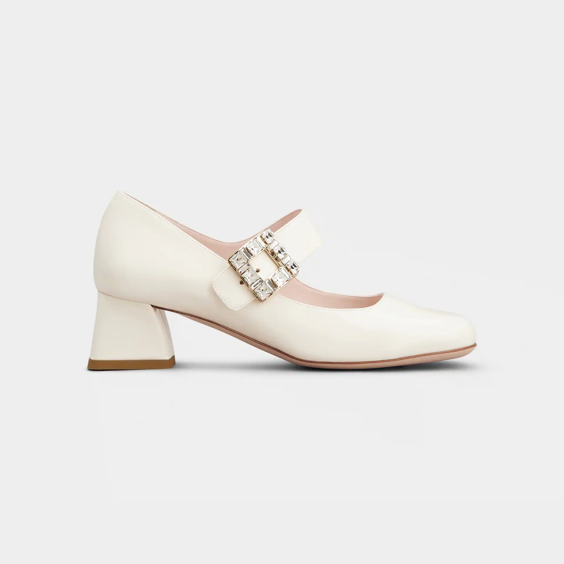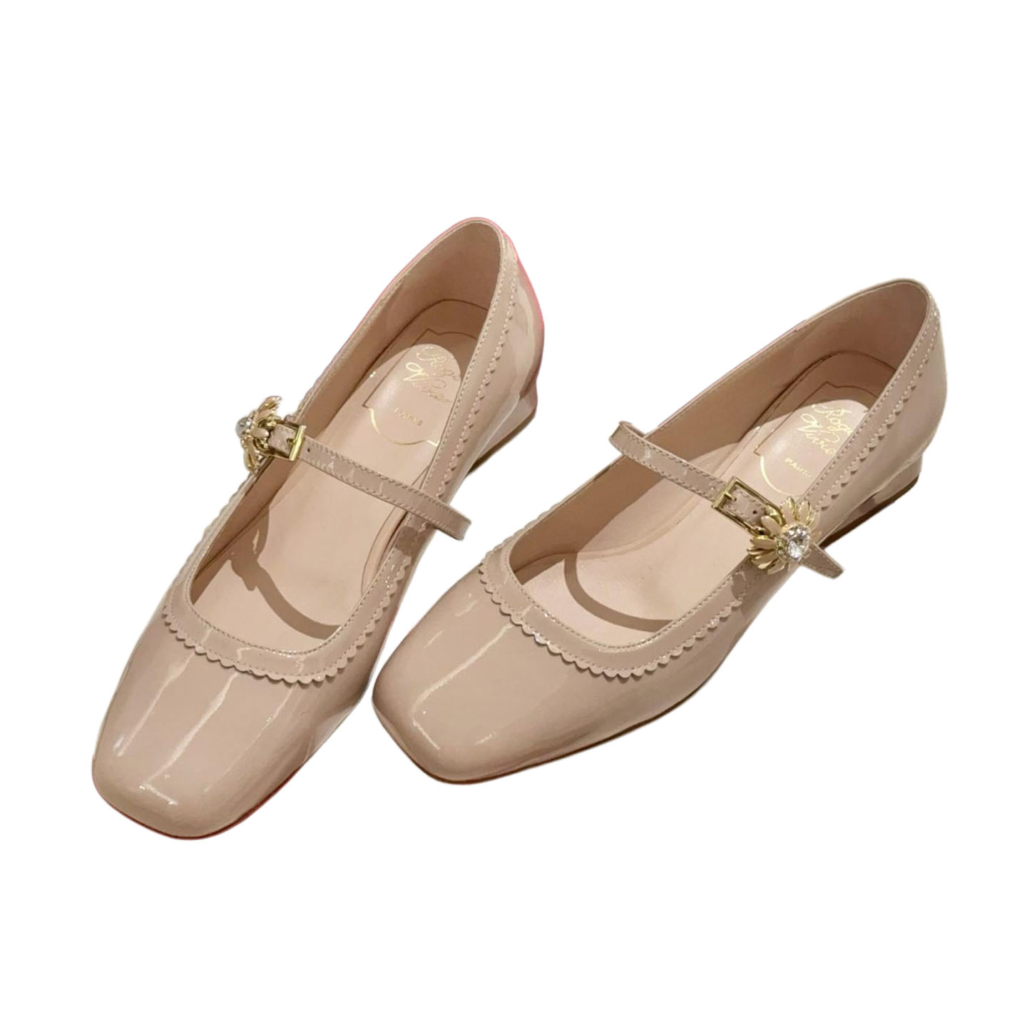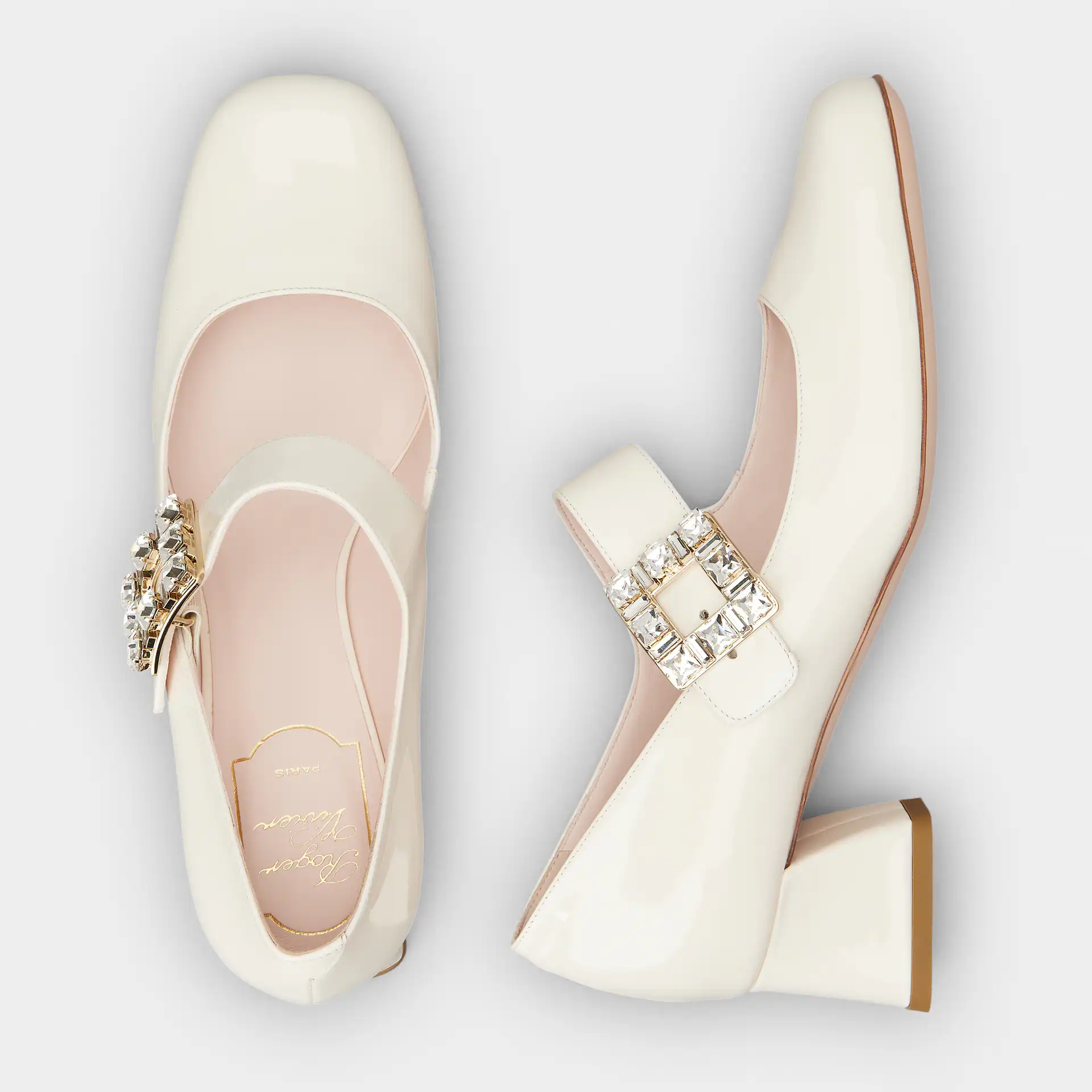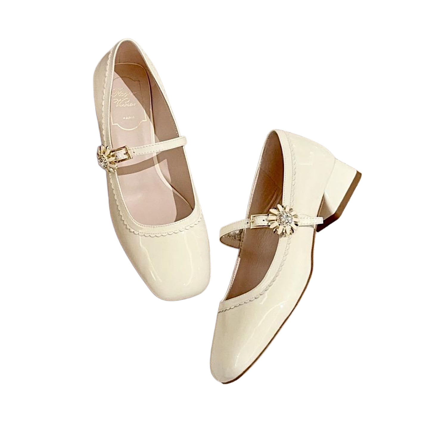 Roger Vivier Très Vivier Dasiy Mary Janes In White/Pink Patent Leather With Flower Metal Buckle (Heel Height 2.5cm)