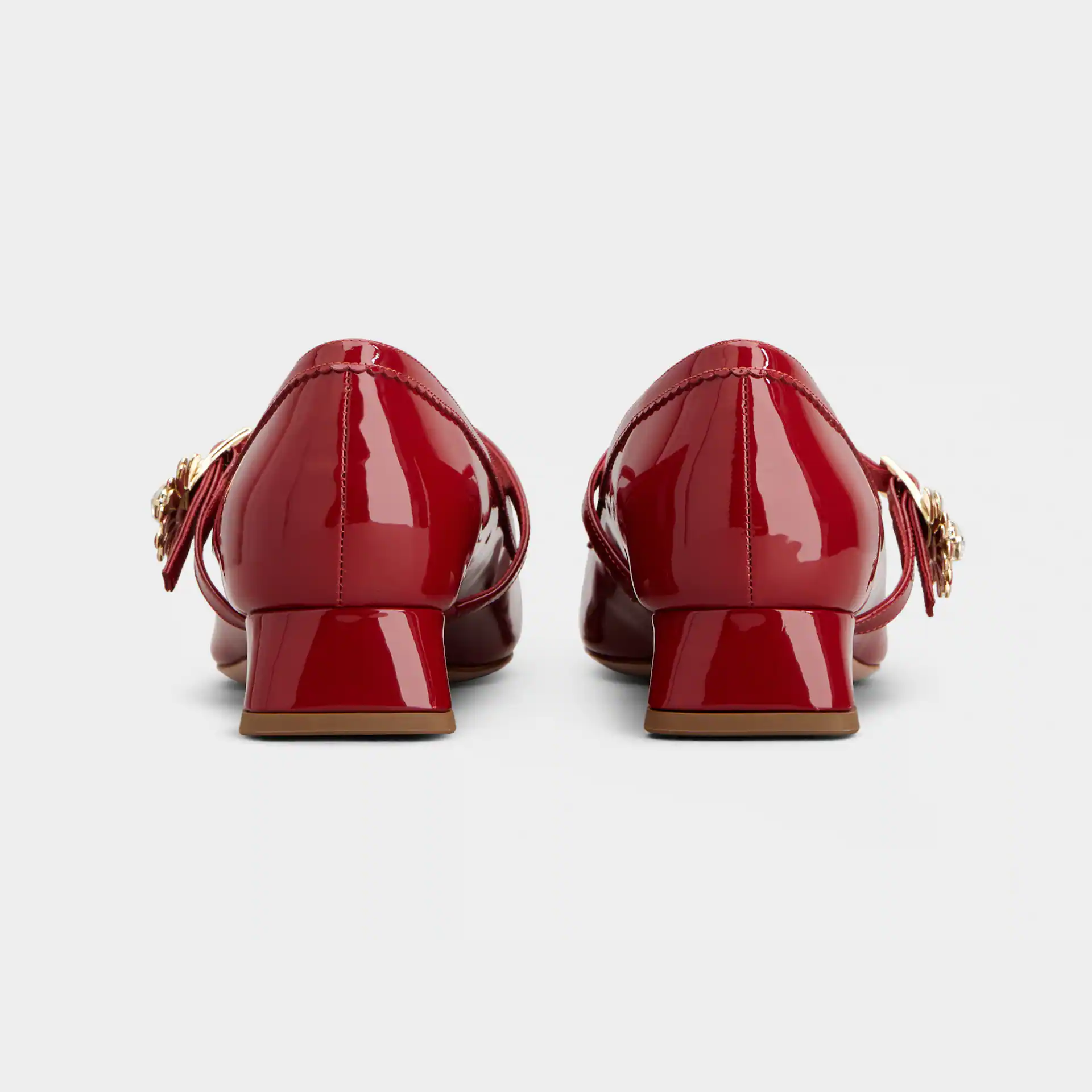 Roger Vivier Très Vivier Dasiy Mary Janes In Red Patent Leather With Flower Metal Buckle (Heel Height 2.5cm)