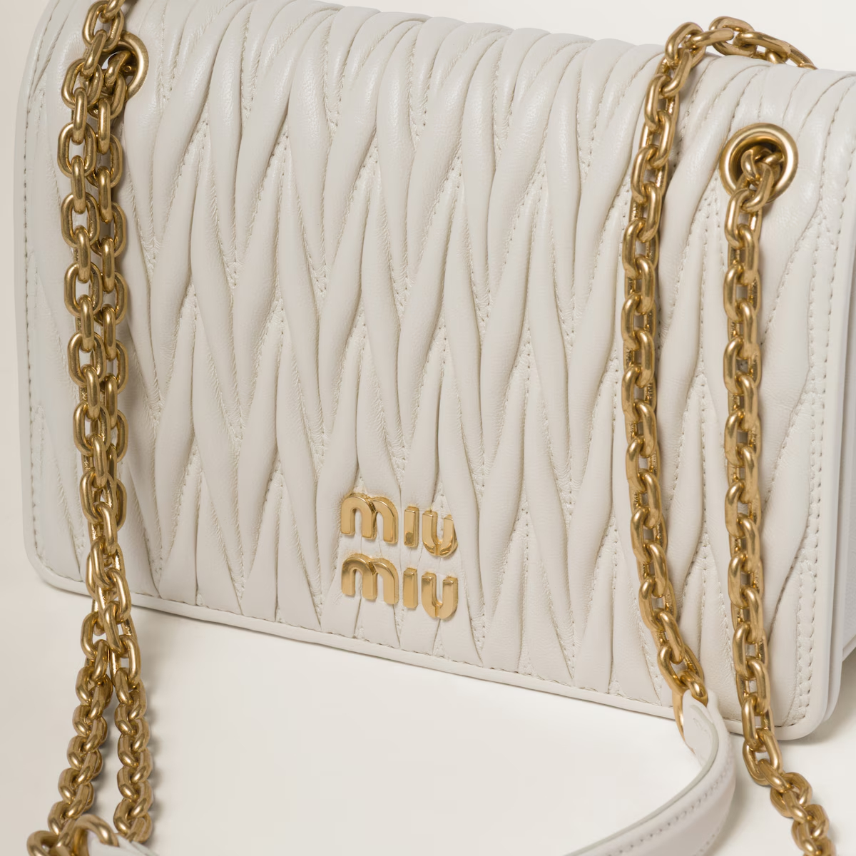 Miu Miu Joie Nappa Quilted Lambskin Leather white Shoulder Bags