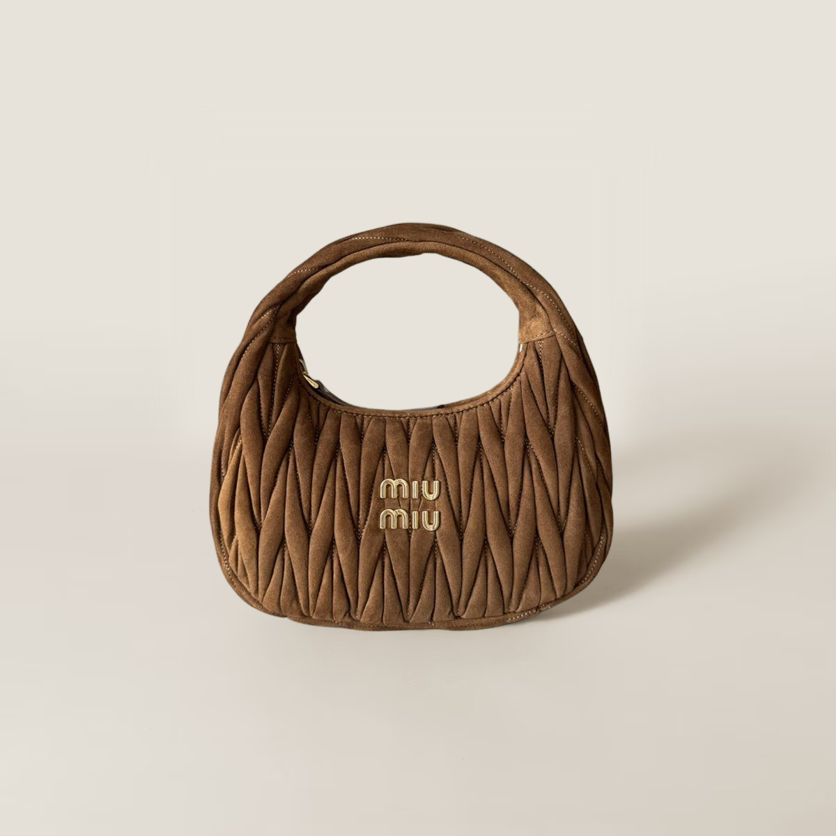 Miu Miu Wander Matelassé Suede leather handbag Brown Crossbody Bags