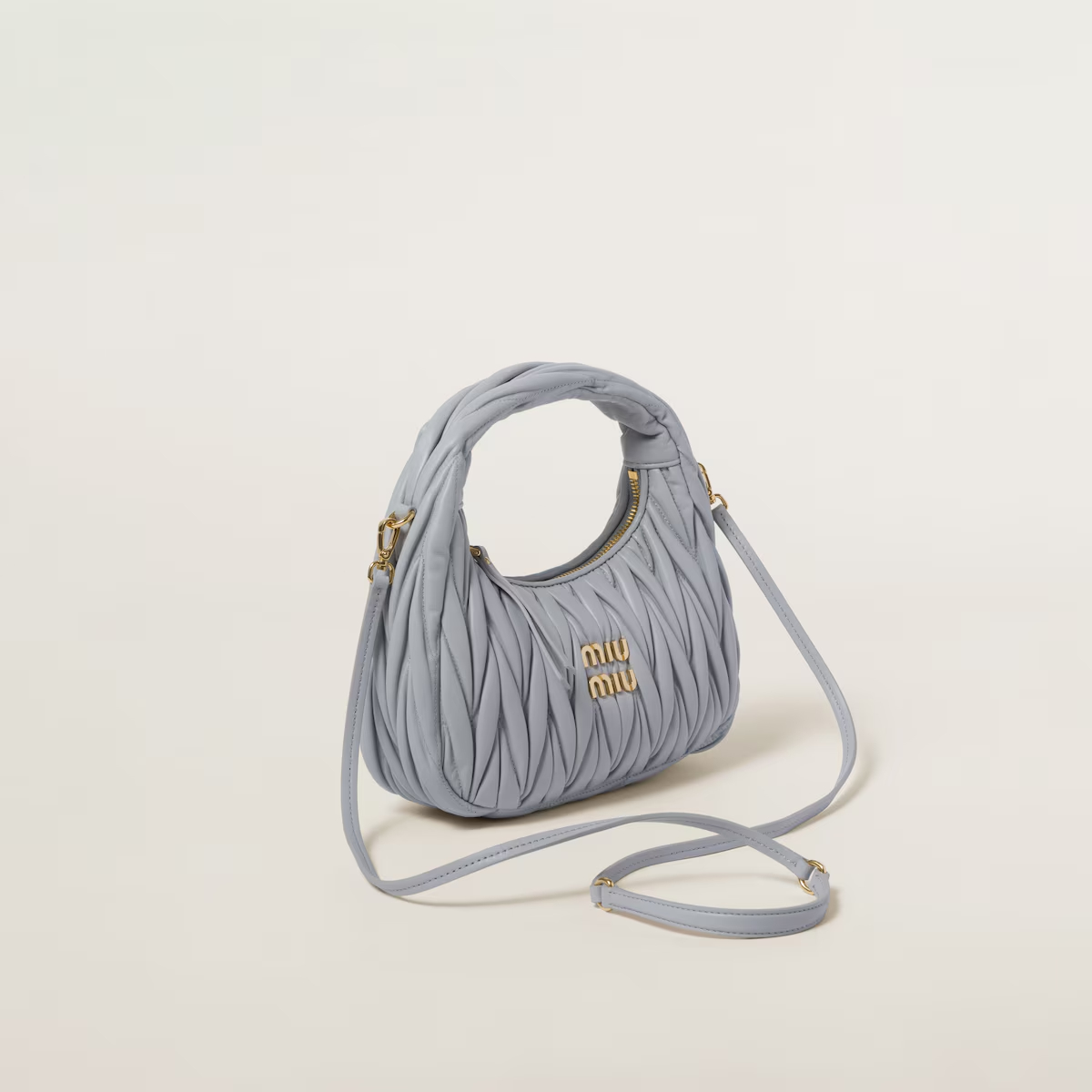 Miu Miu Wander Matelassé Quilted Lambskin Leather handbag Blue Crossbody Bags