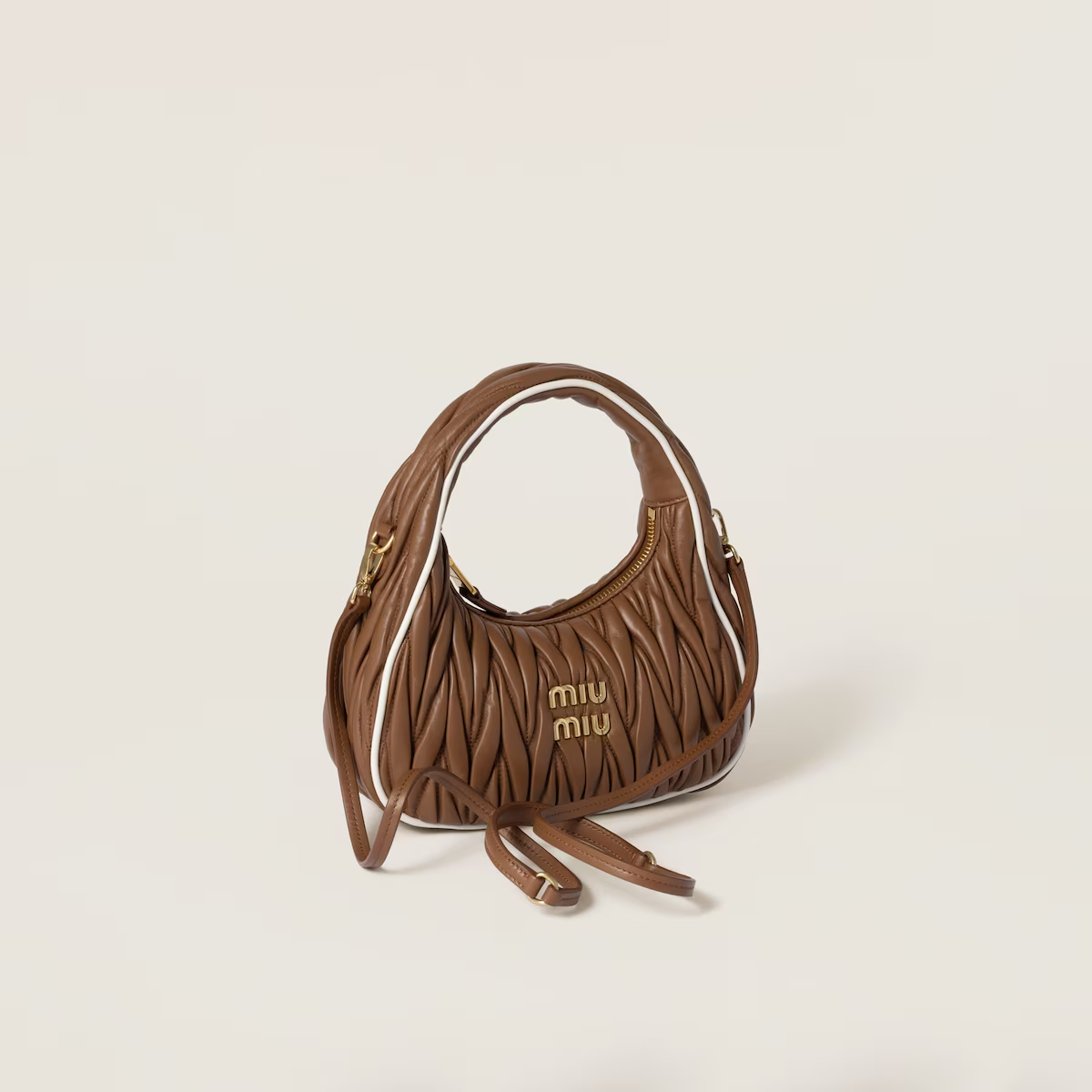 Miu Miu Wander Matelassé Nappa Quilted Lambskin Leather handbag Brown Crossbody Bags