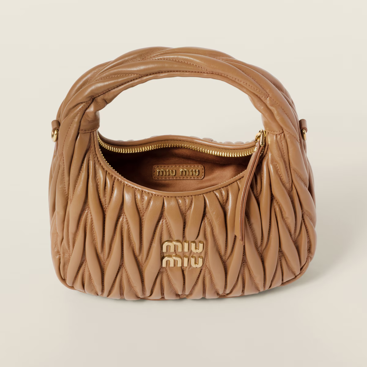 Miu Miu Wander Matelassé Quilted Lambskin Leather handbag Light Brown Crossbody Bags