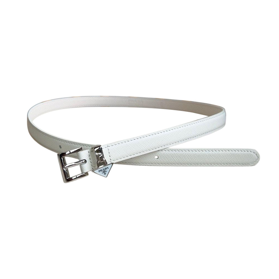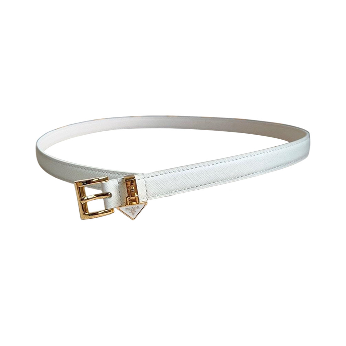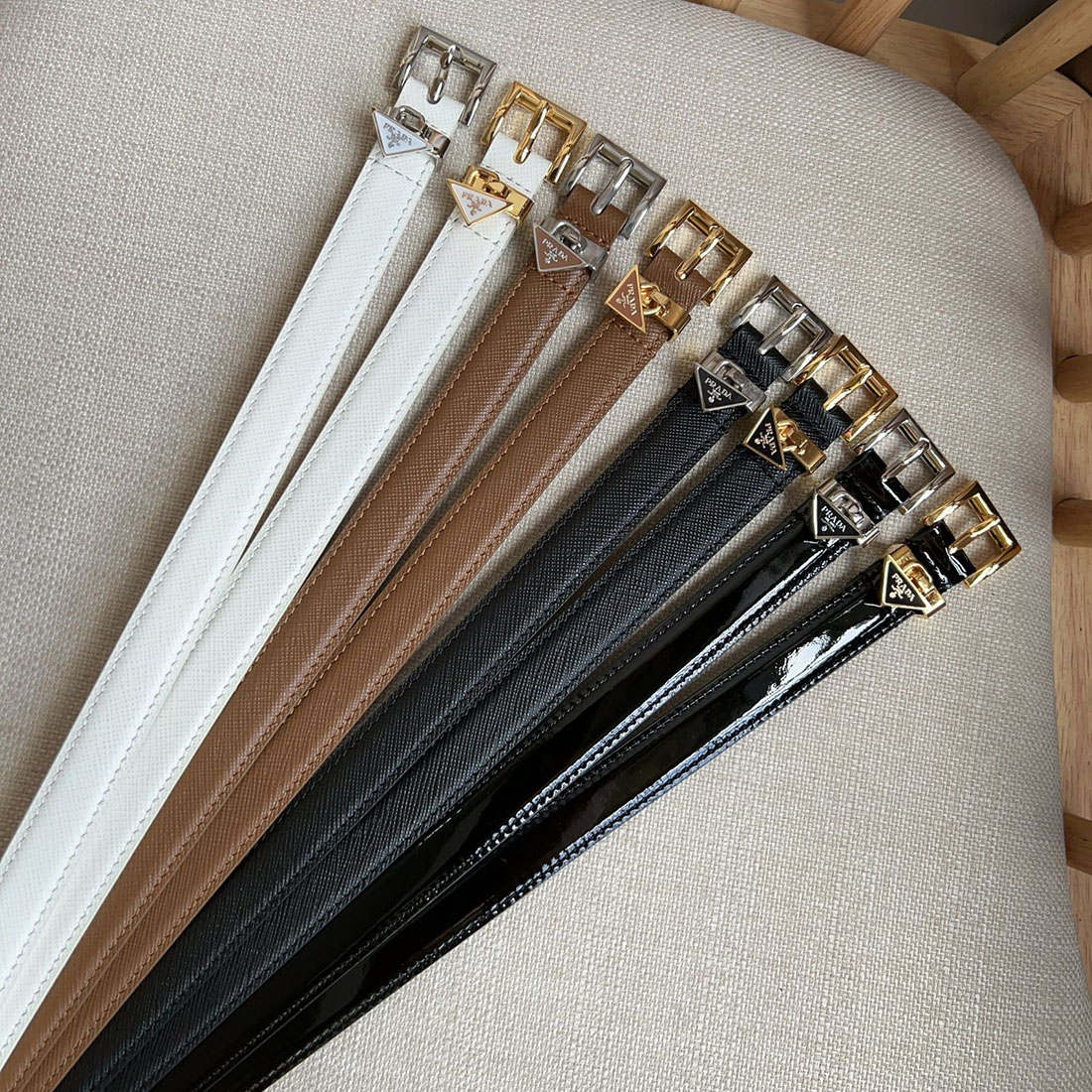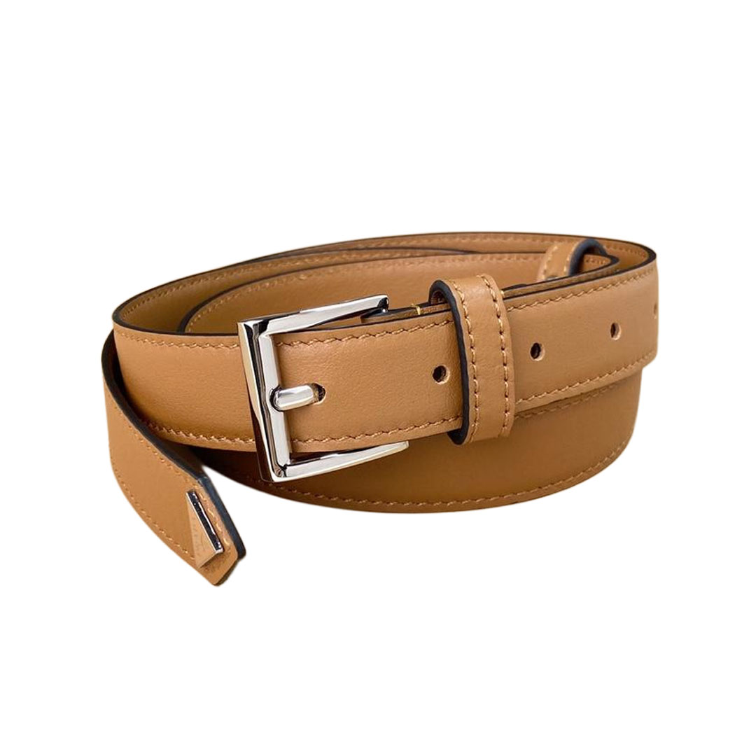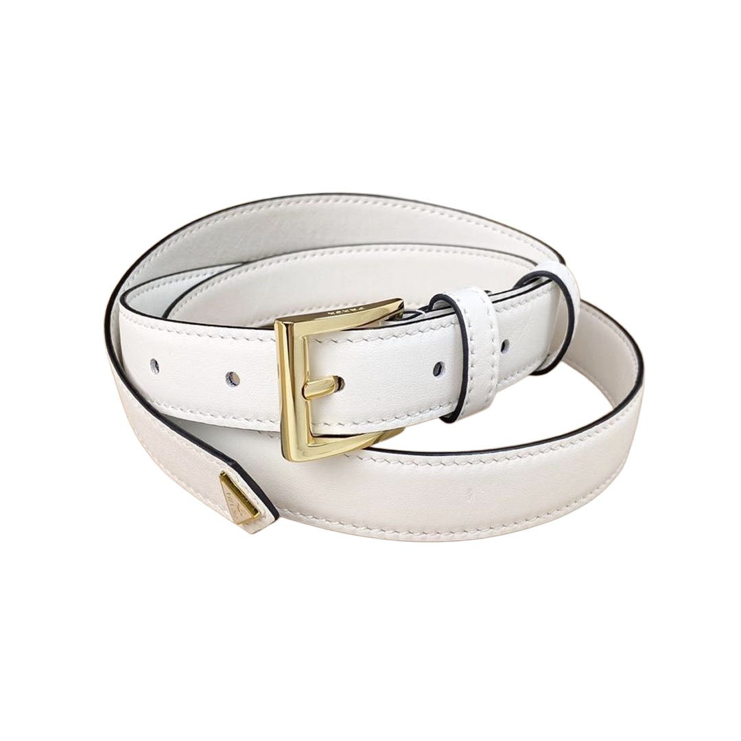 Prada Women' s Square Buckle Thin Belt In Black/Brown/White Calfskin With Gold/Silver Hardware 15mm