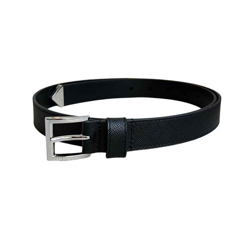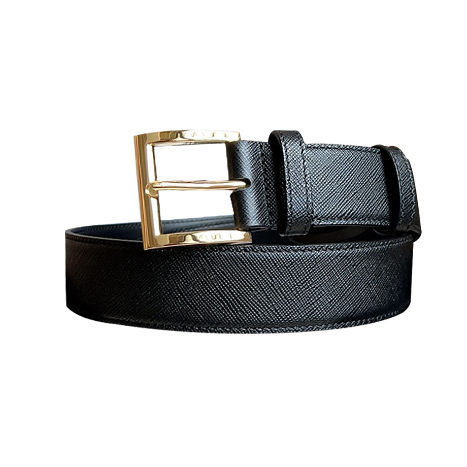 Prada Women' s Square Buckle Belt In Black Calfskin With Gold/Silver/Gun Black Hardware 35mm