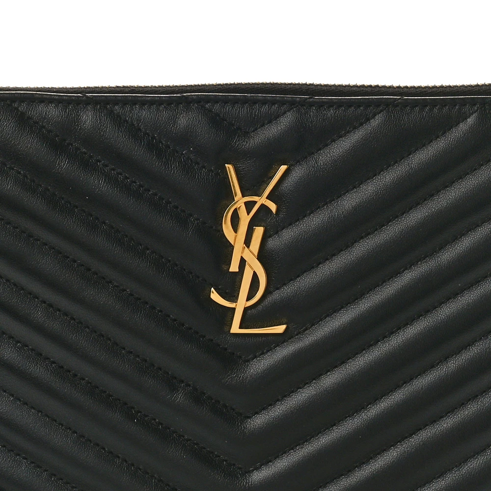 Saint Laurent Medium A5 Wristlet Black Chevron Monogram Calfskin Matelasse Leather Gold Hardware