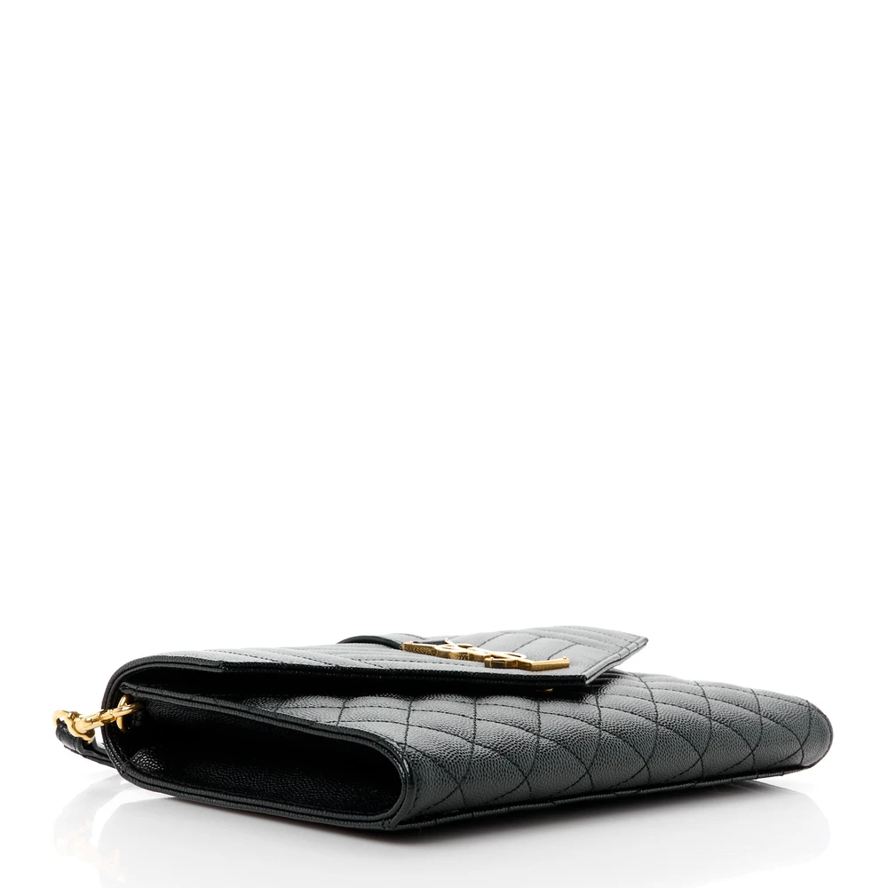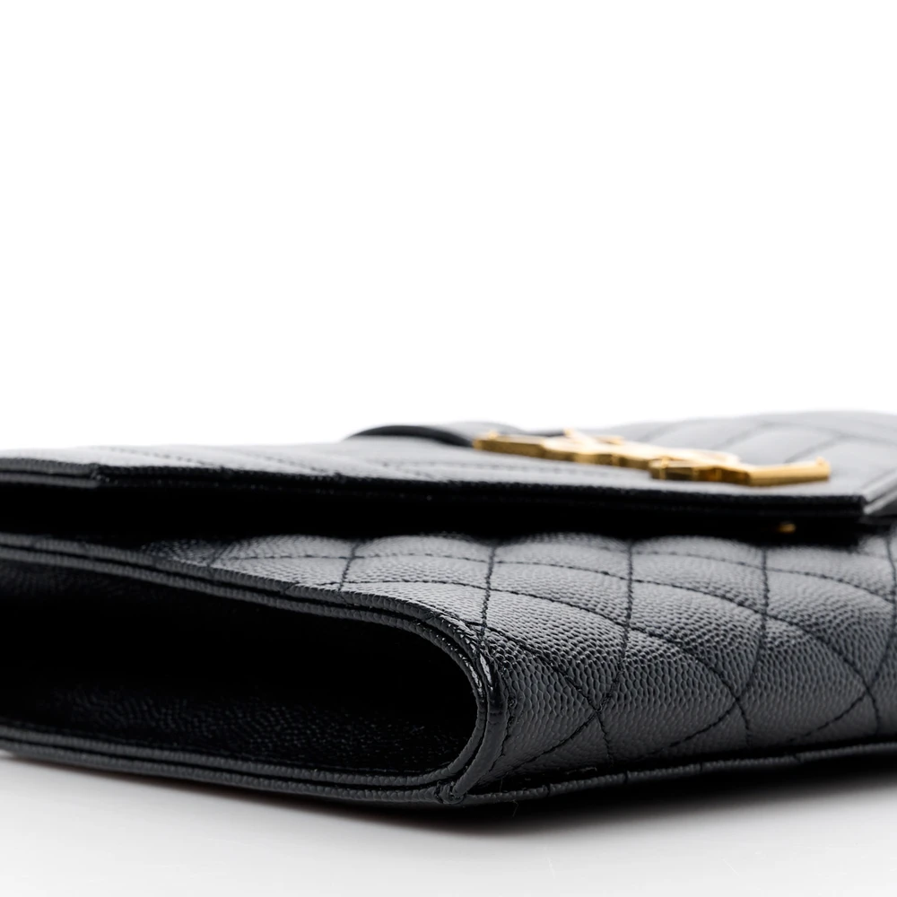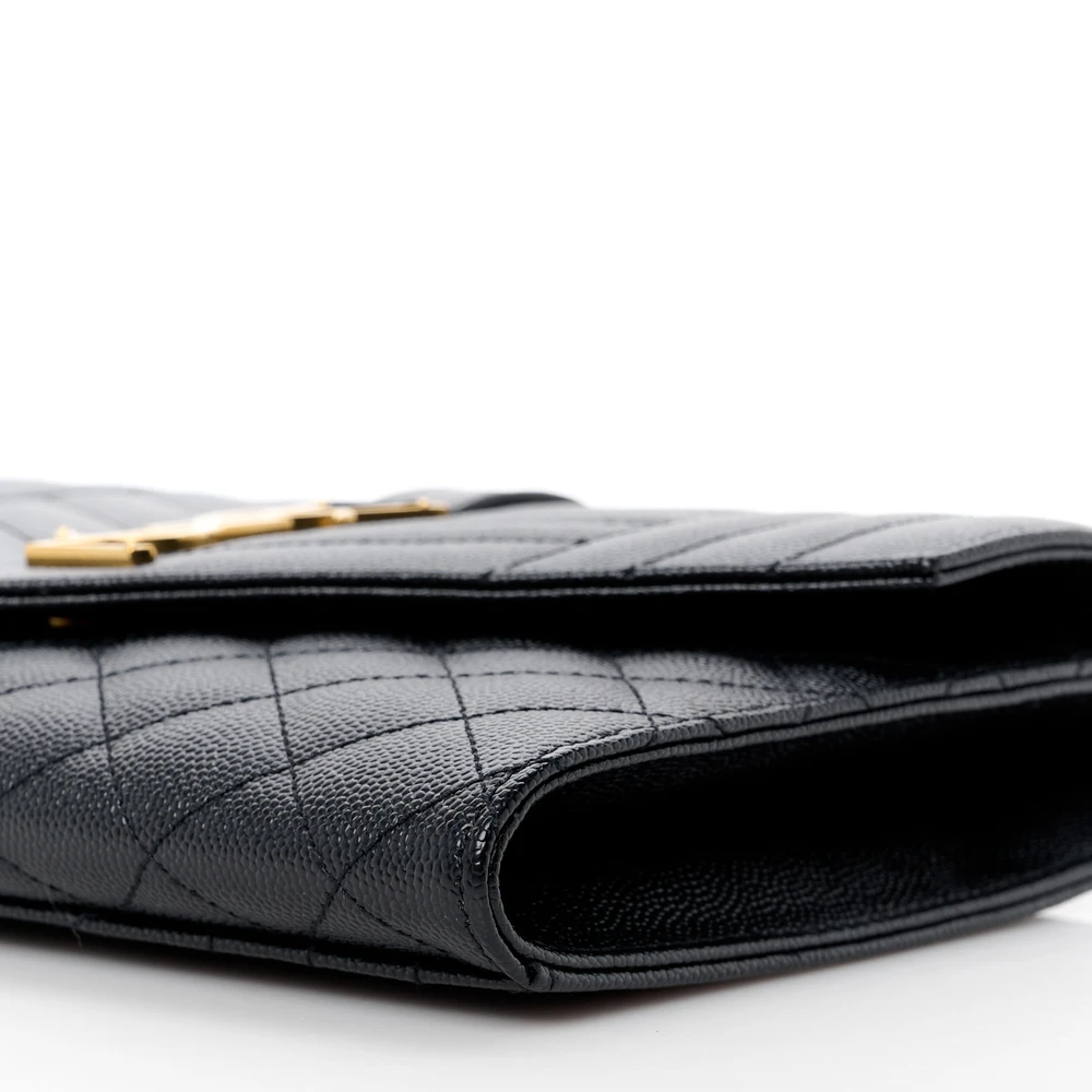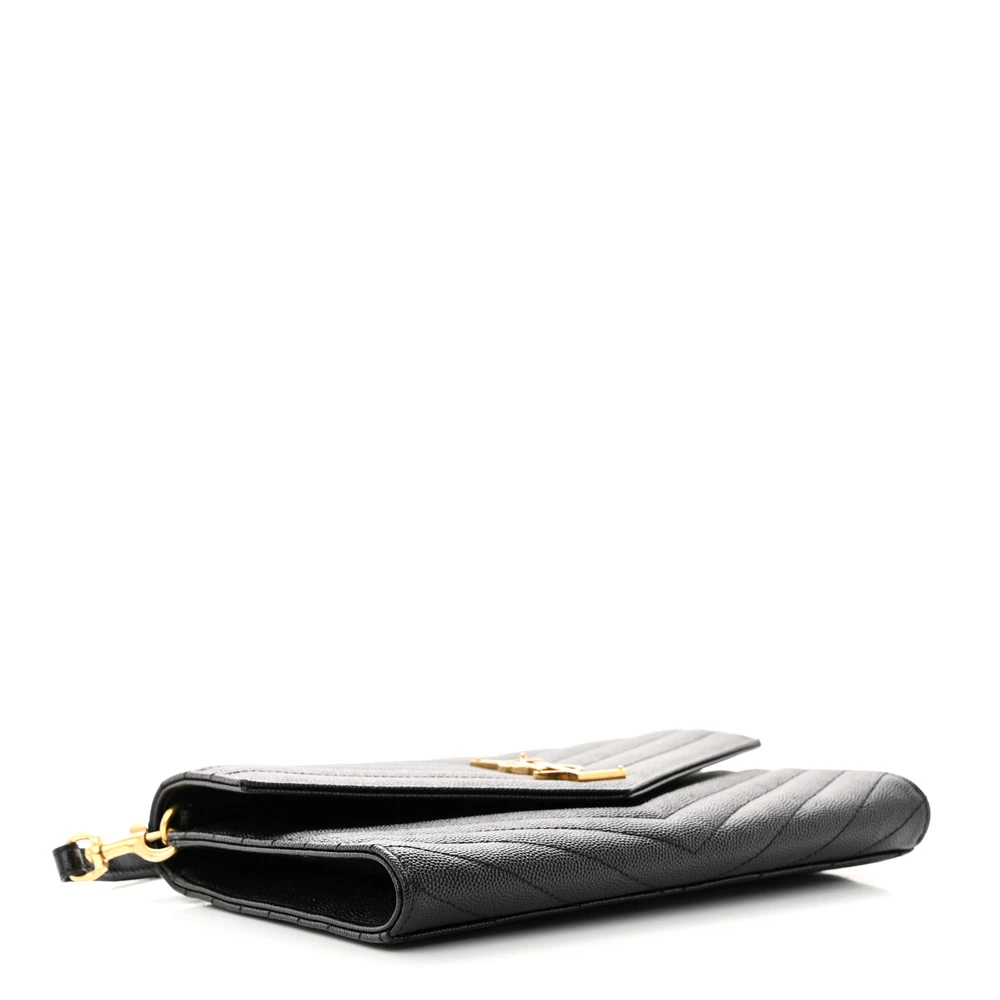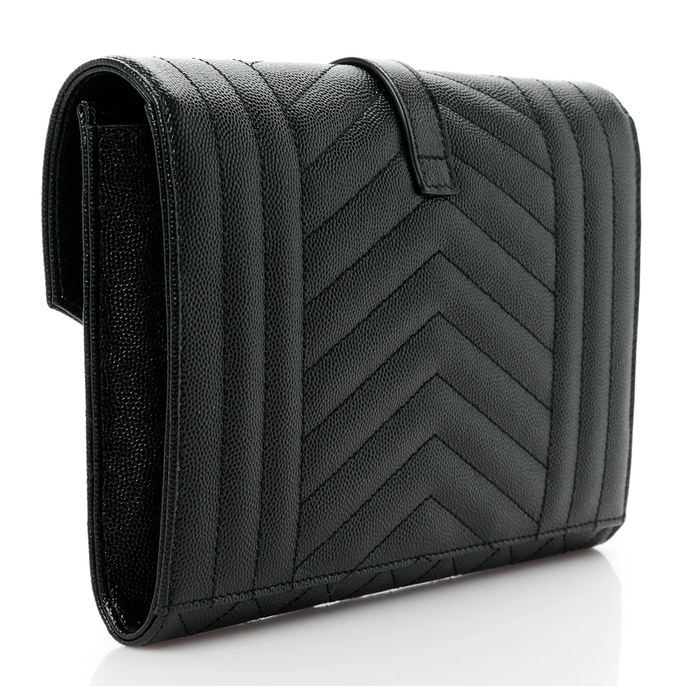 Saint Laurent Medium Envelope Clutch Black Chevron Monogram Grain De Poudre Matelasse Leather Gold Hardware