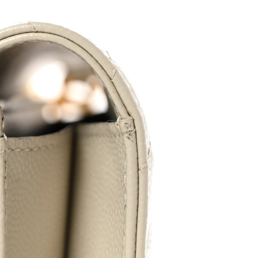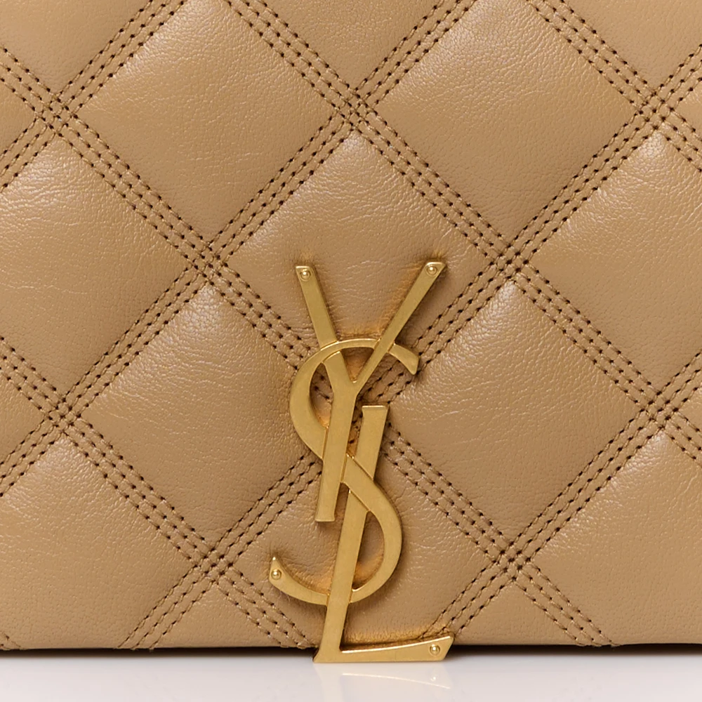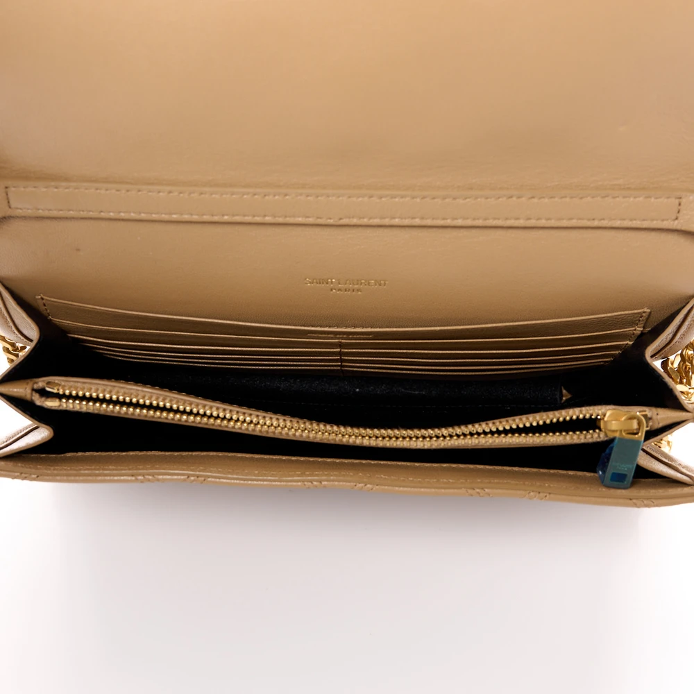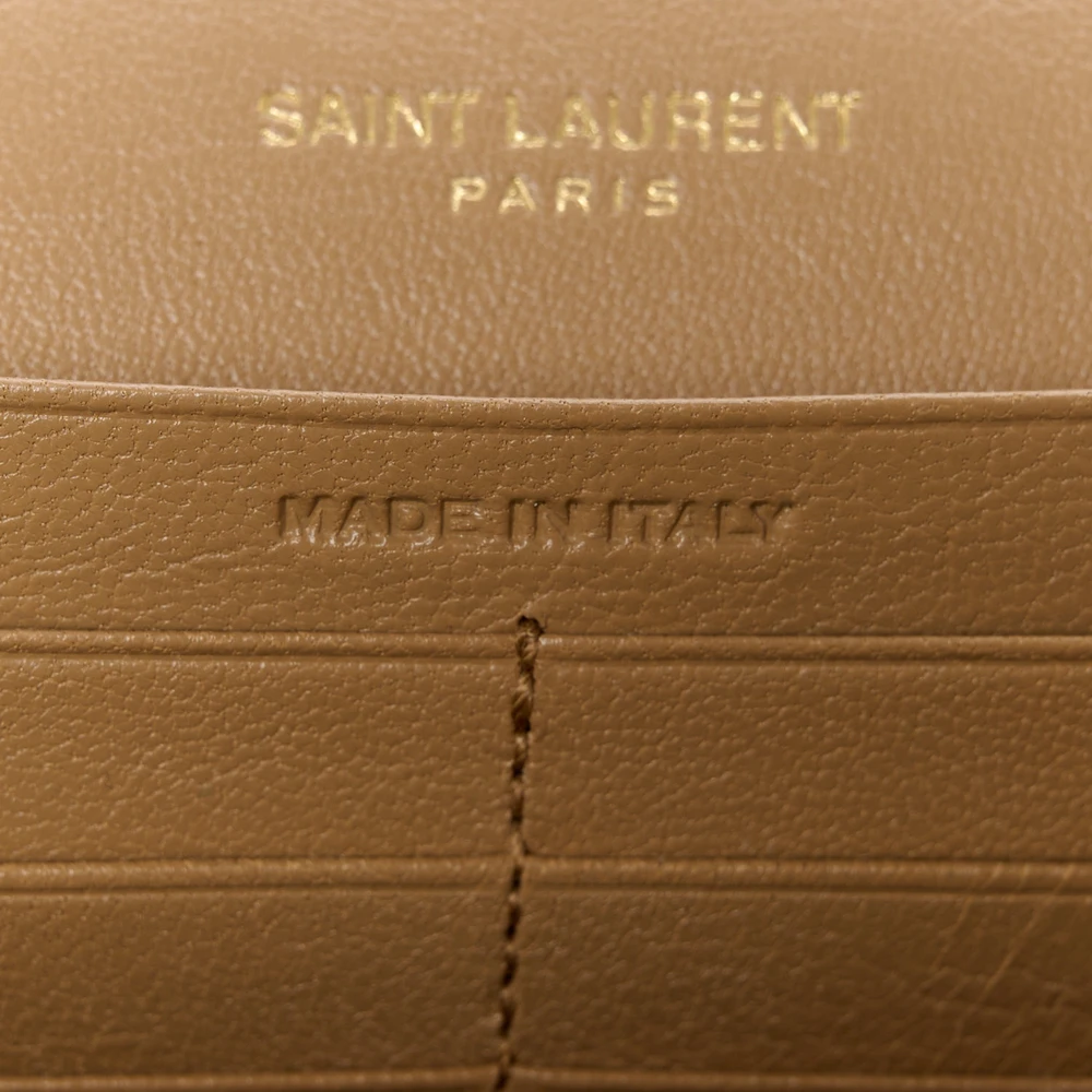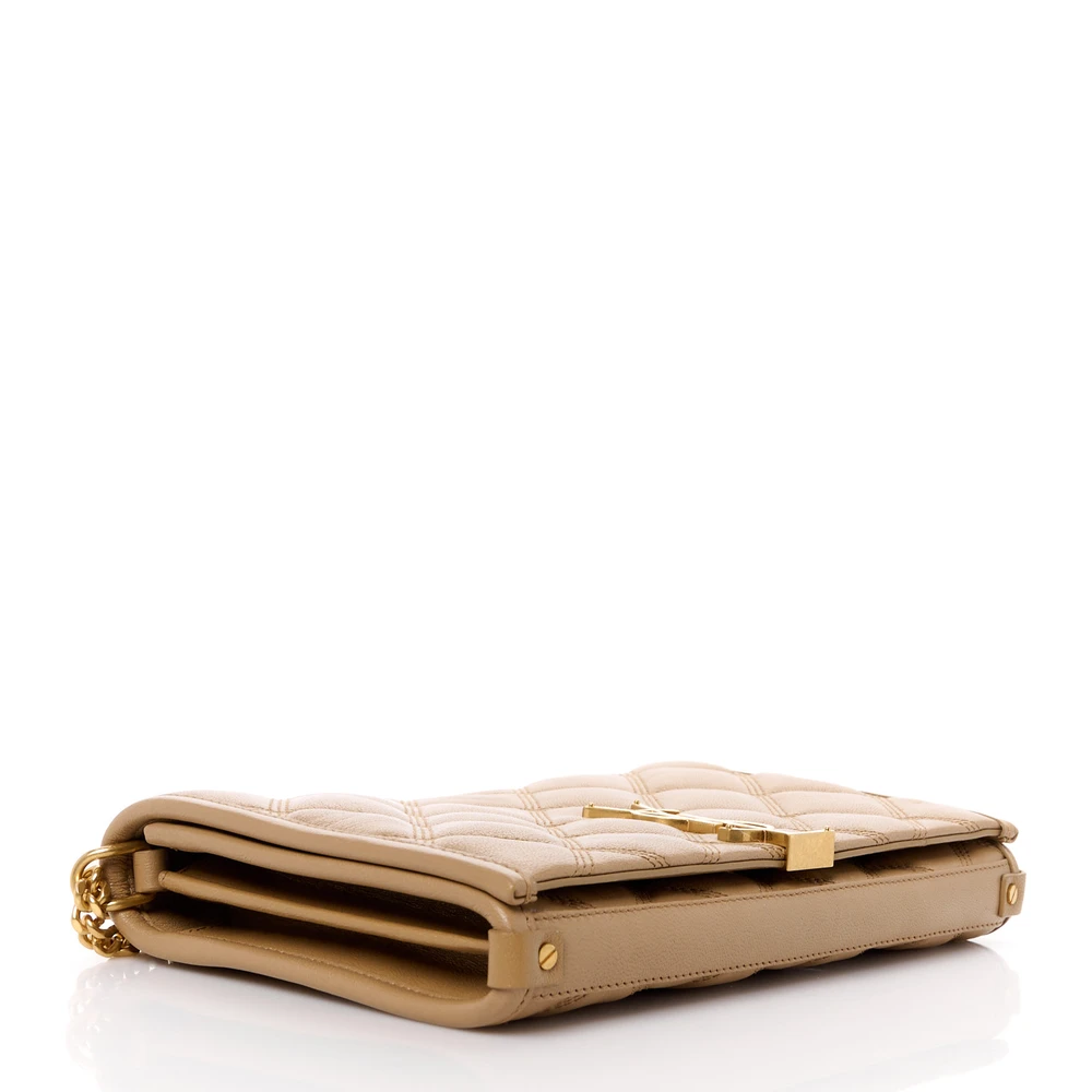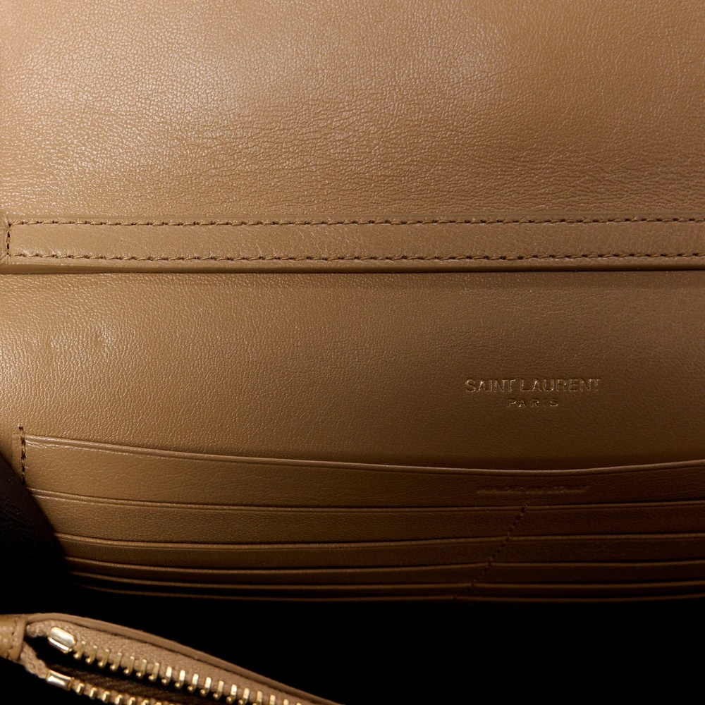 Saint Laurent Medium Becky Chain Wallet Natural Tan Diamond Quilted Lambskin Leather Gold Hardware